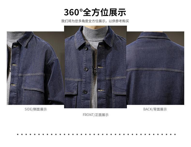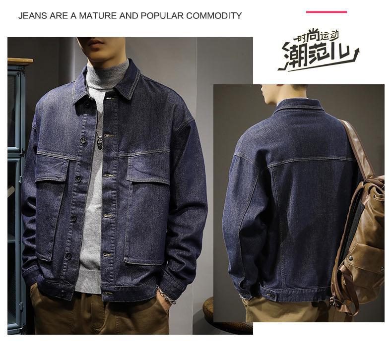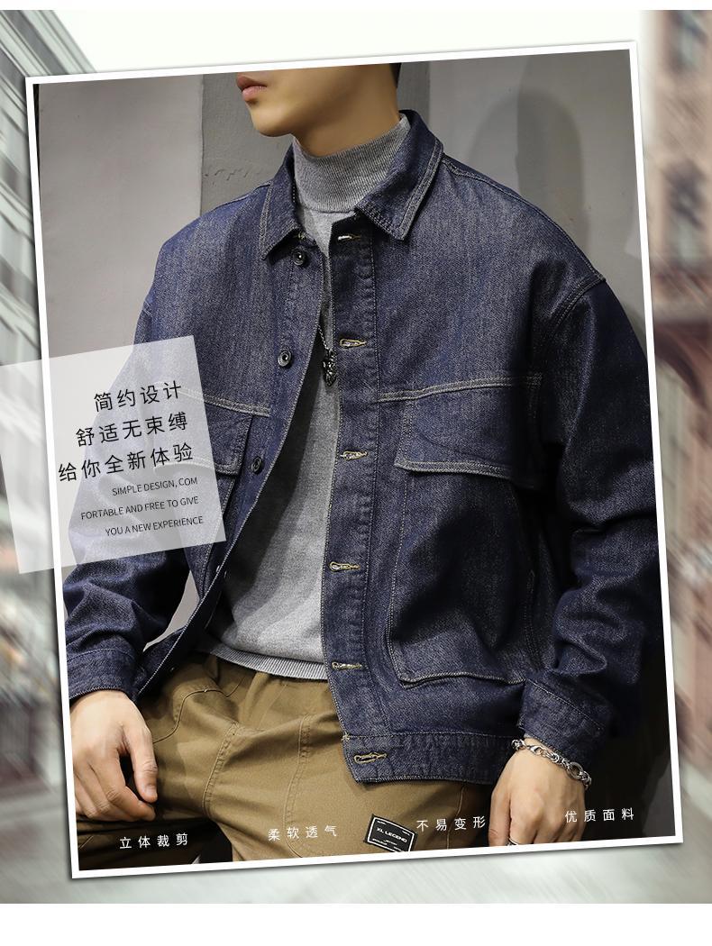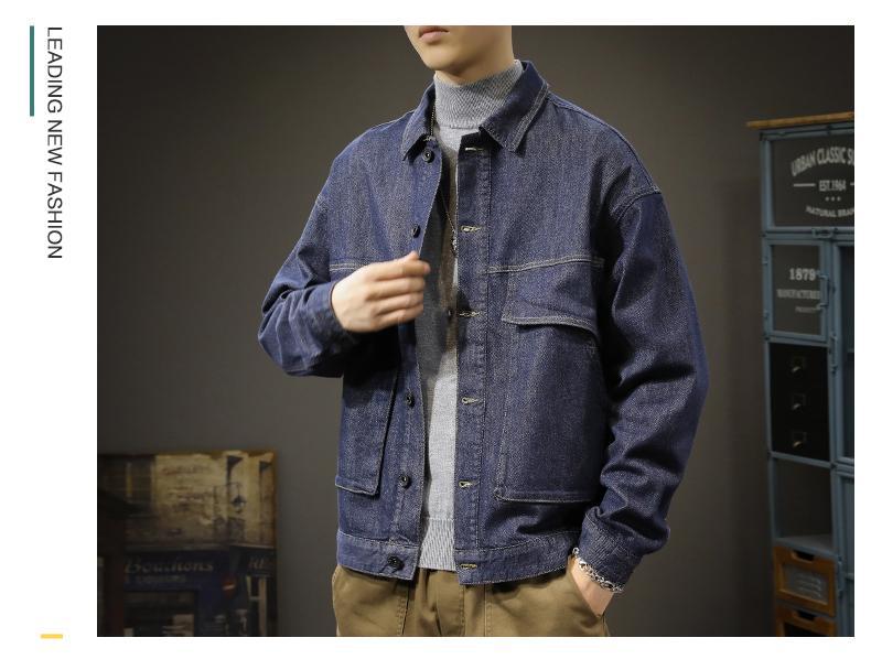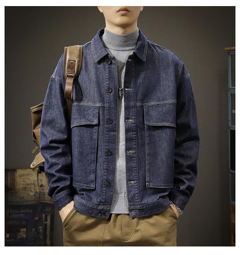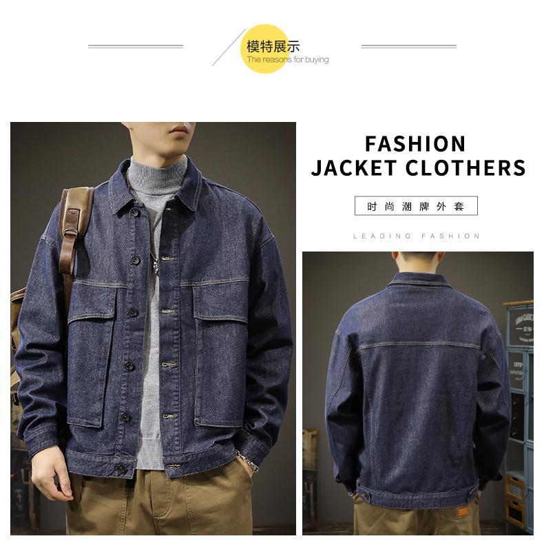 Chaqueta de mezclilla de color primario simple para otoño, combina con todo, para hombre, casual americana holgada, moderna, azul puro, talla grande, chaqueta de primavera y otoño
