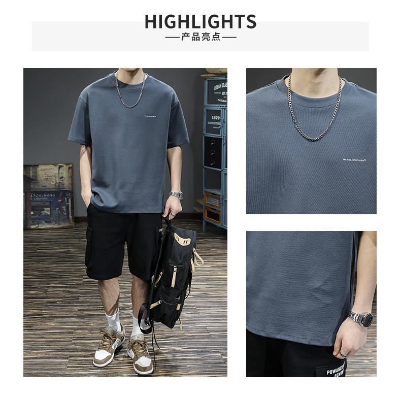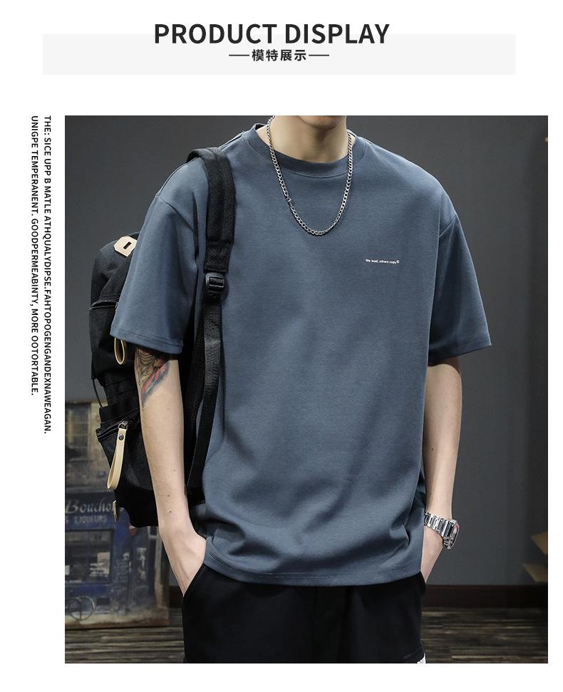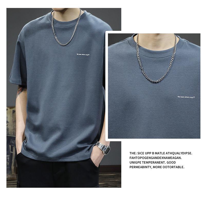 Camiseta de manga corta de marca de moda de verano para hombre, holgada, de talla grande, sencilla, estilo americano, de media manga y cuello redondo.
