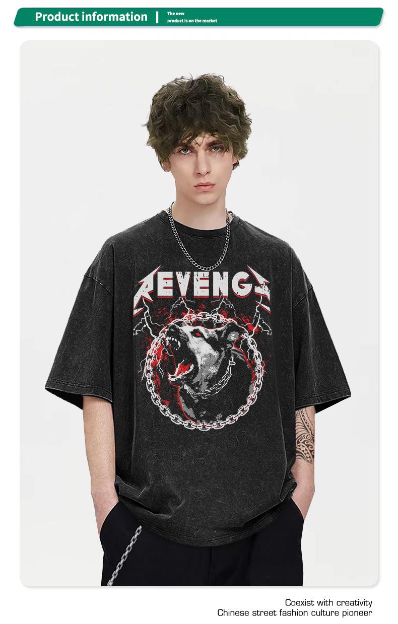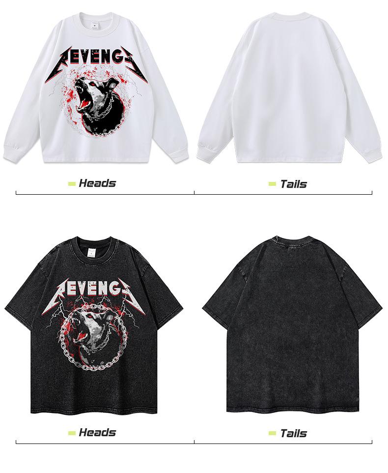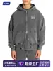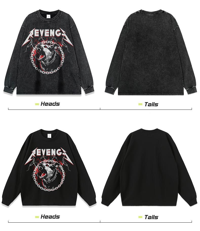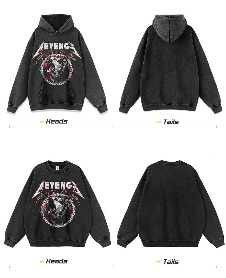 Sudadera con capucha estilo americano vintage retro holgada de marca de moda con estampado directo de lobo de fuego lavado antiguo para hombre y mujer