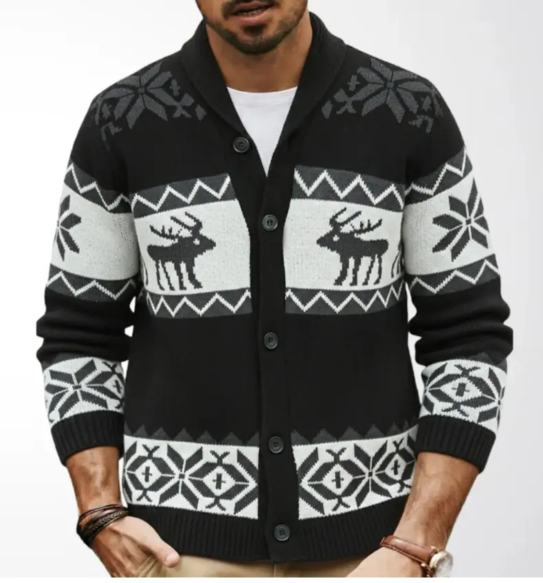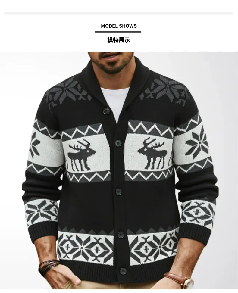 Amazon otoño e invierno hombre europeo y americano Navidad jacquard suéter cárdigan de botones abrigo de suéter SY0032