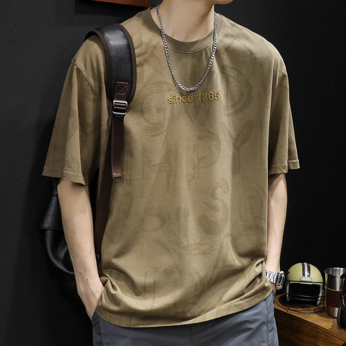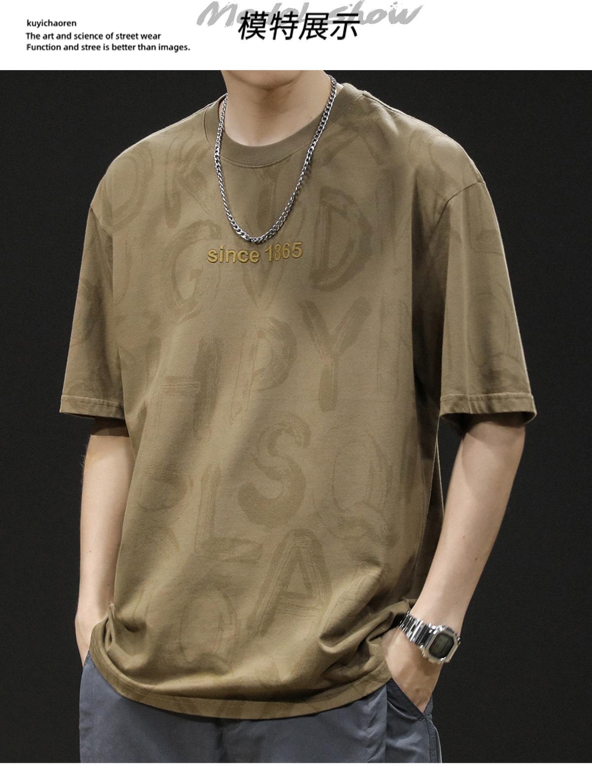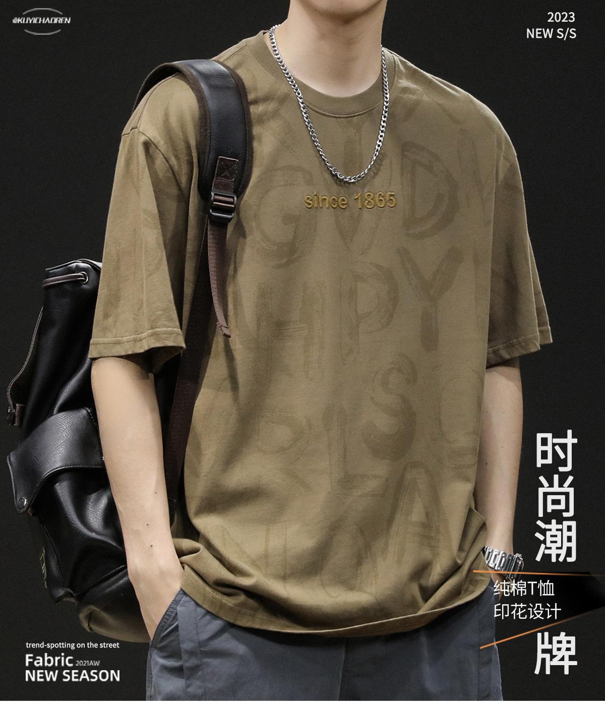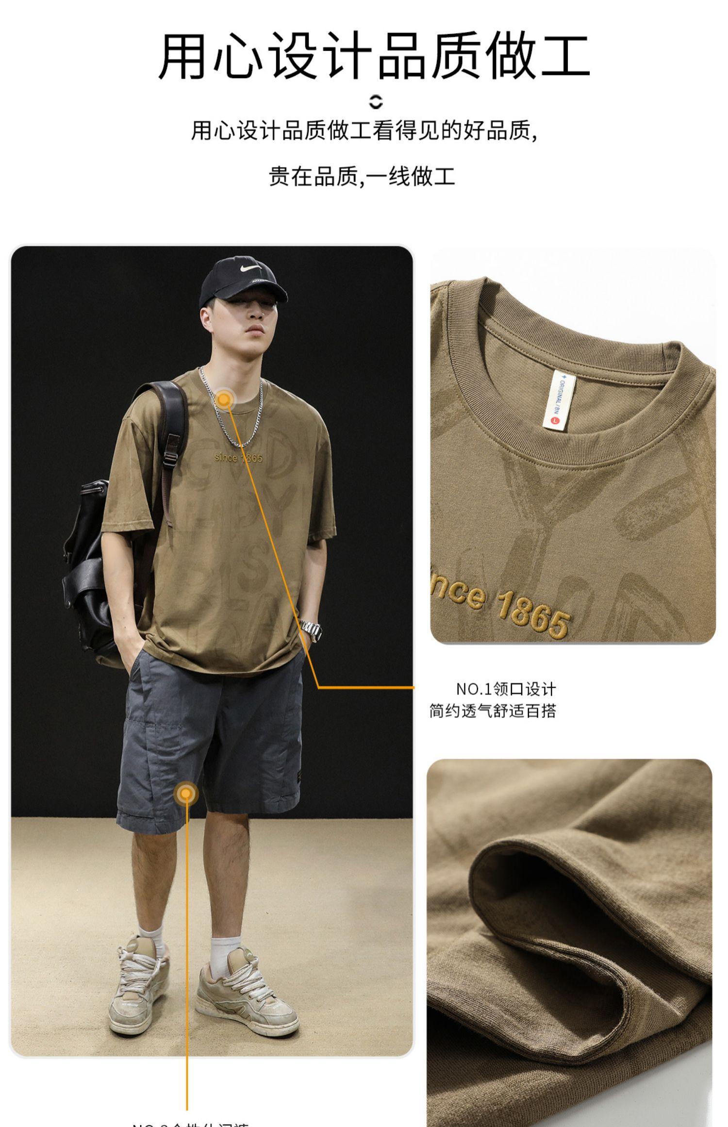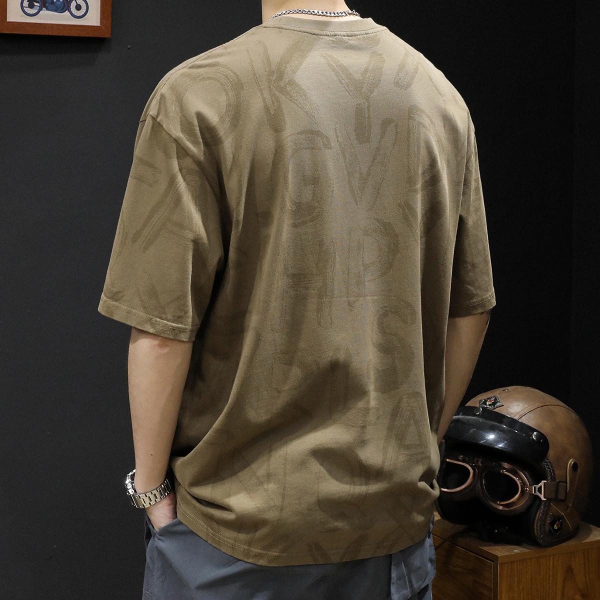 Camiseta de manga corta gruesa para hombre, de marca de moda holgada, talla grande, para hombre, 23 nuevas camisetas retro americanas con estampado.