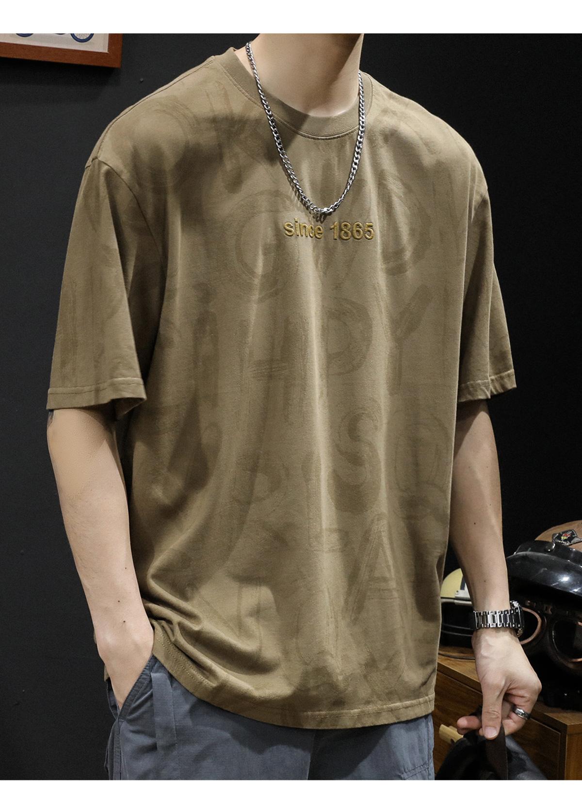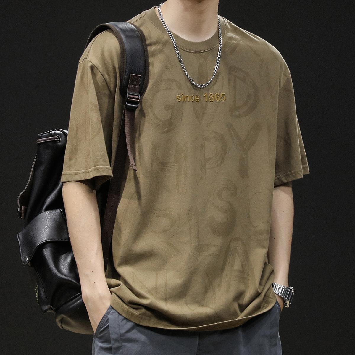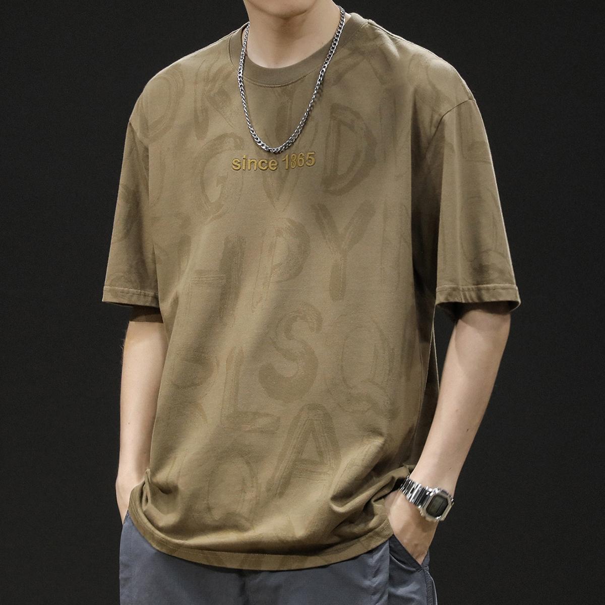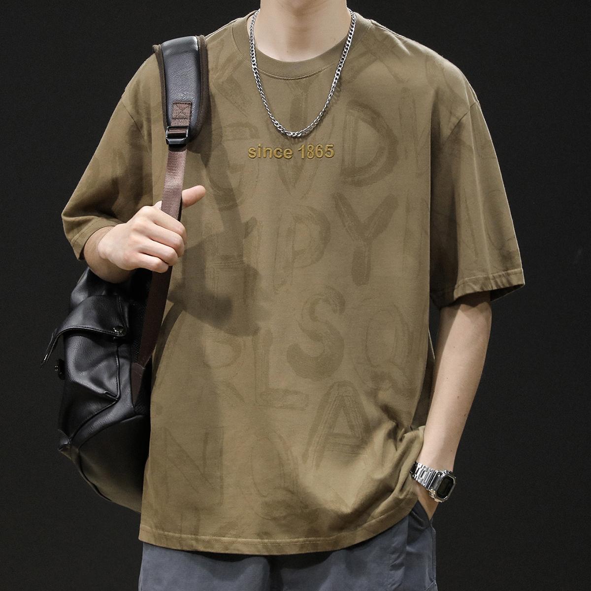Camiseta de manga corta gruesa para hombre, de marca de moda holgada, talla grande, para hombre, 23 nuevas camisetas retro americanas con estampado.