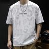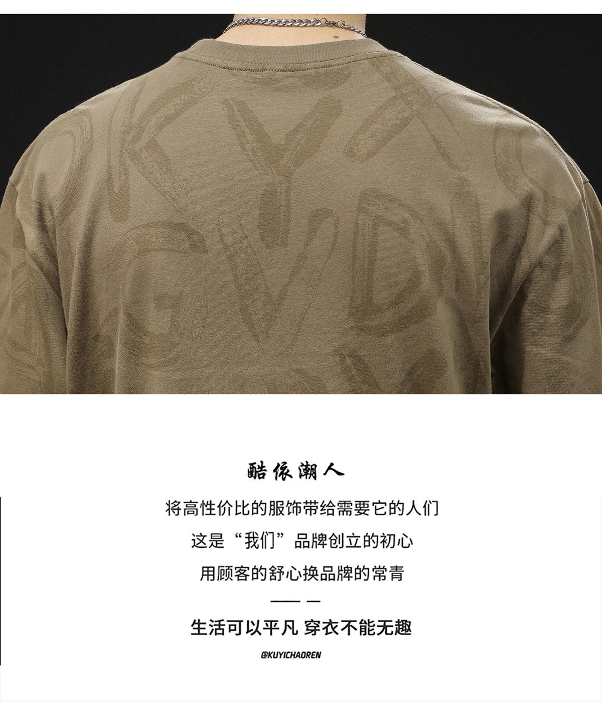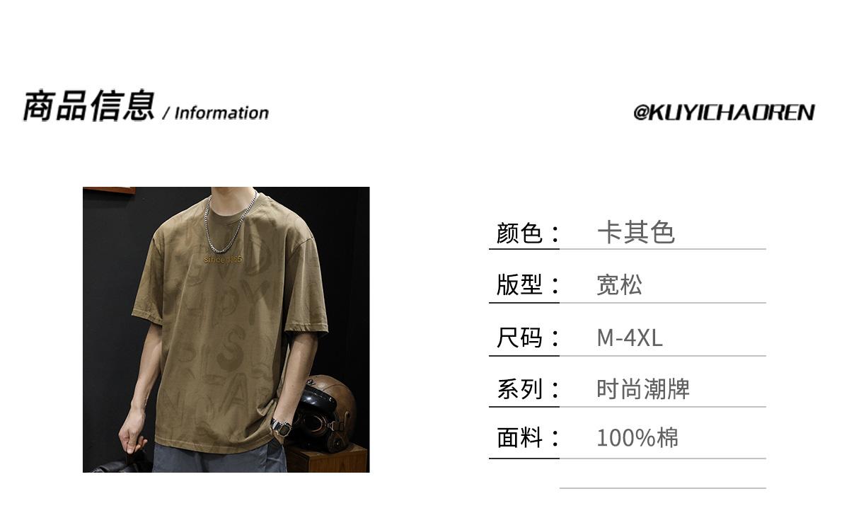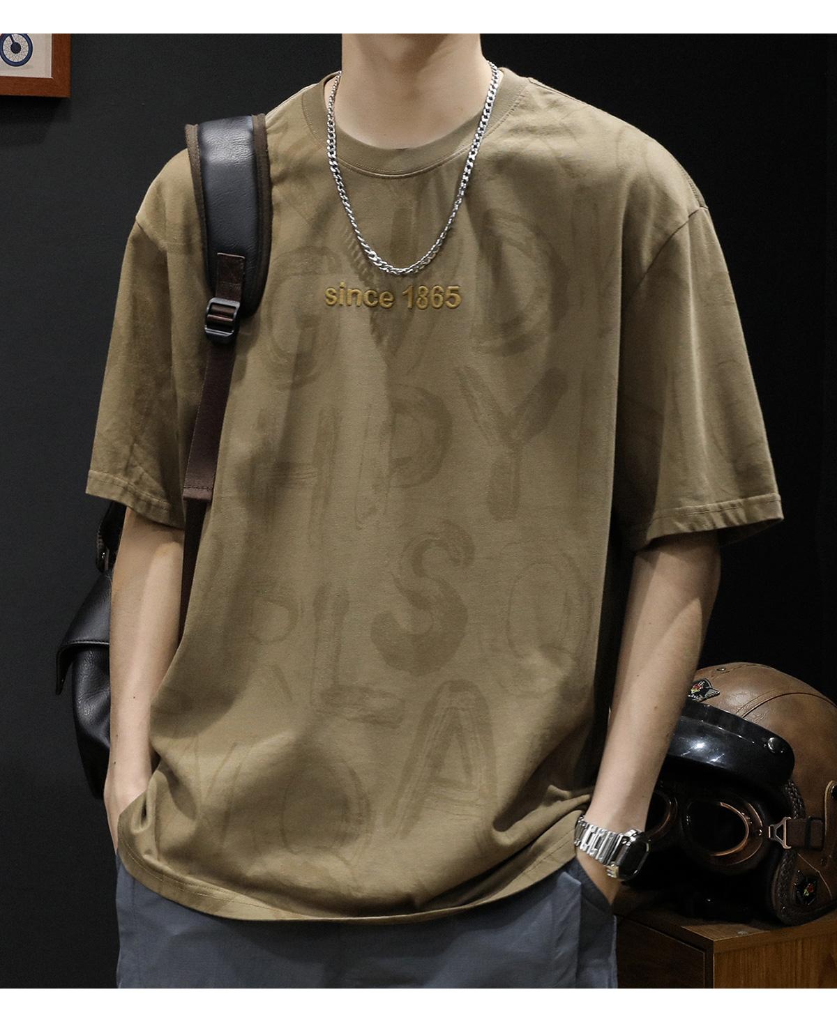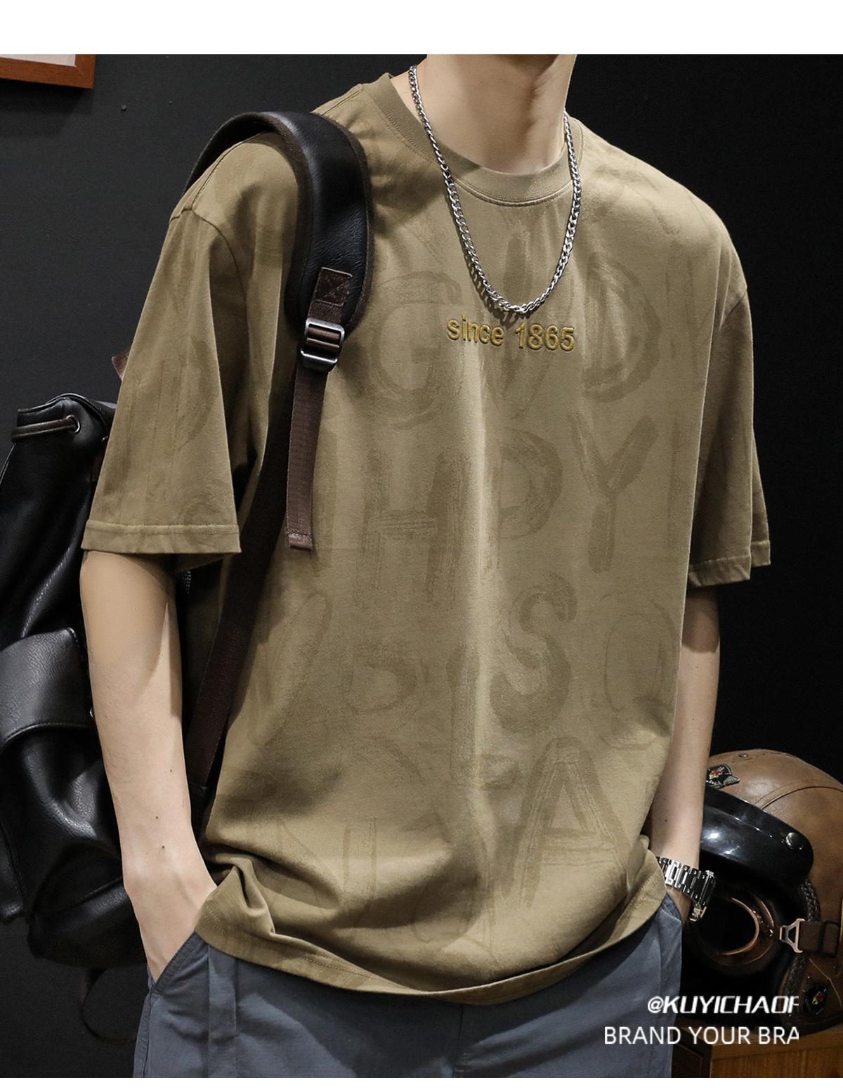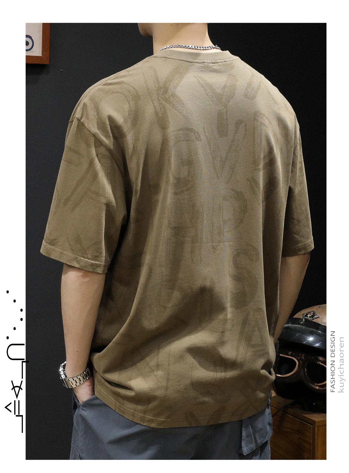 Camiseta de manga corta gruesa para hombre, de marca de moda holgada, talla grande, para hombre, 23 nuevas camisetas retro americanas con estampado.
