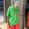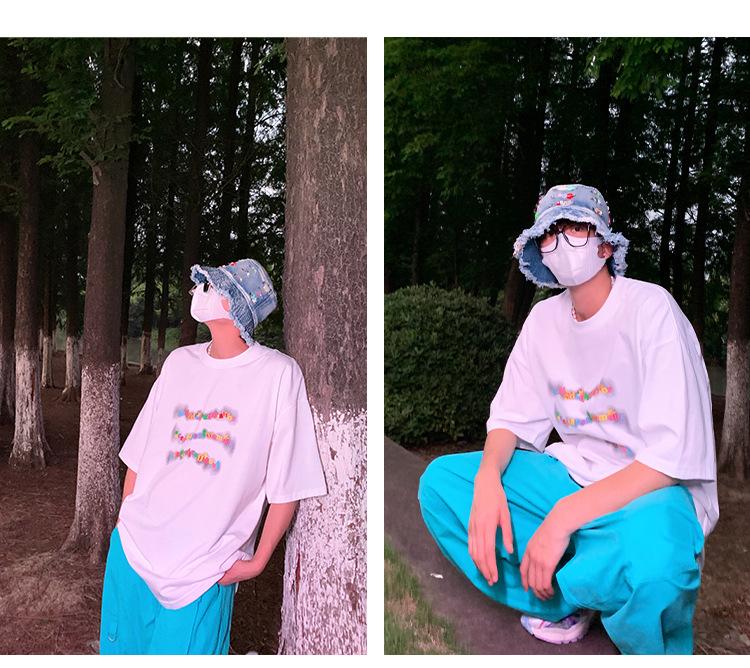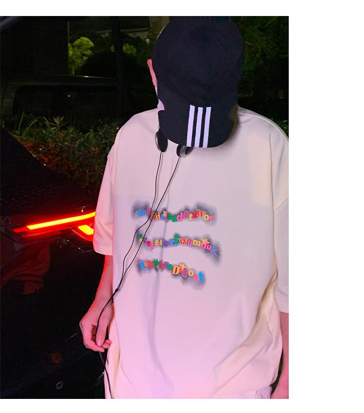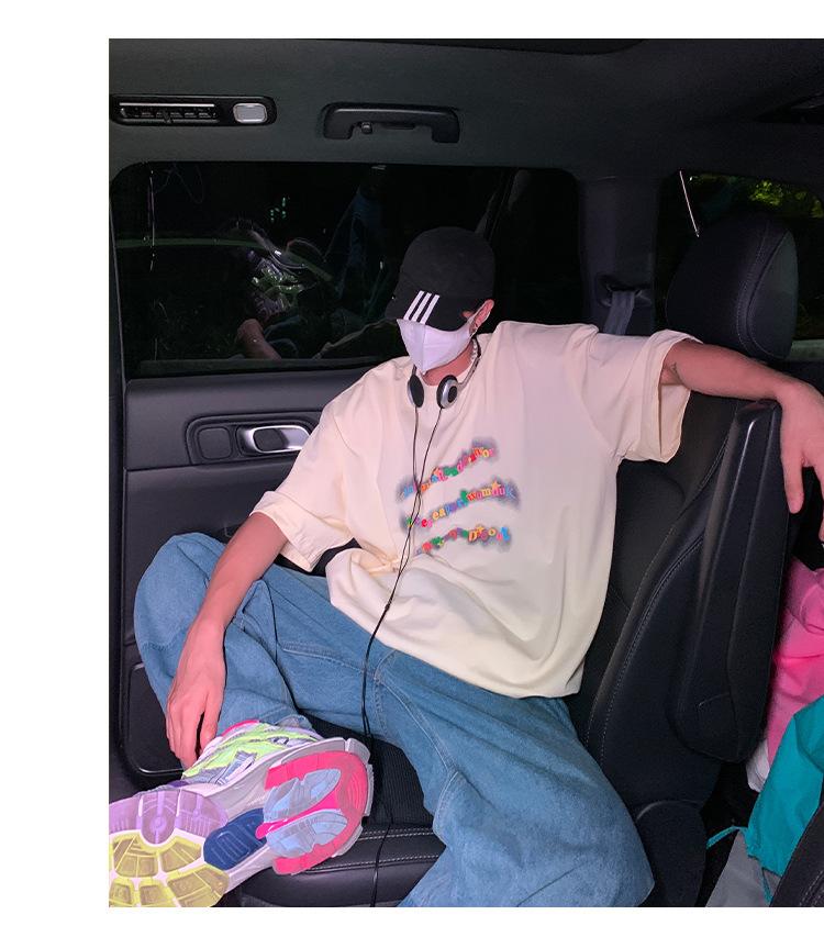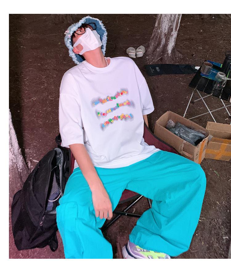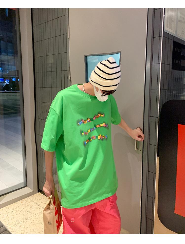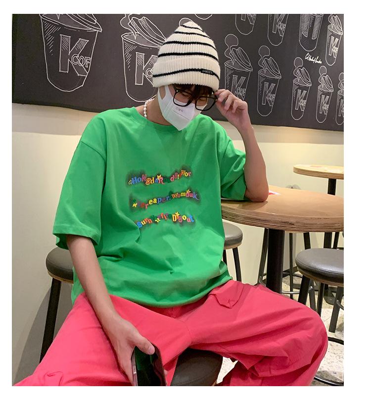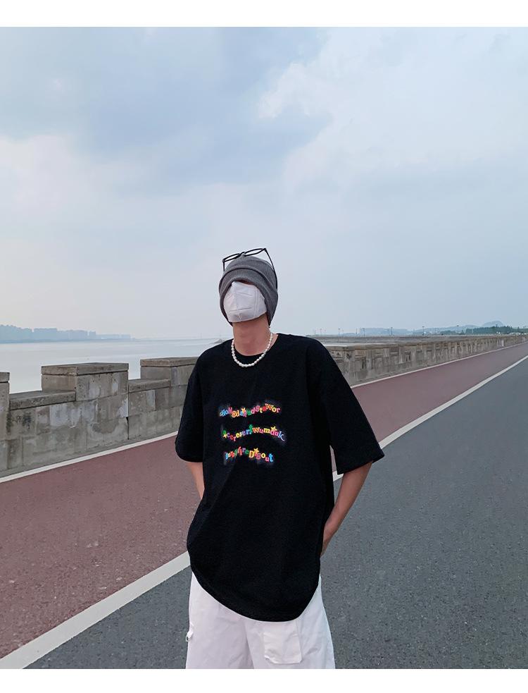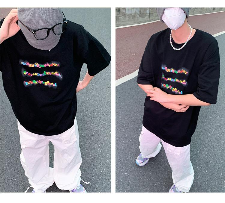 Camiseta de manga corta de cinco puntos para hombre, estilo japonés de verano, retro, combinable, holgada, moderna, de media manga, con cuello redondo para estudiantes.