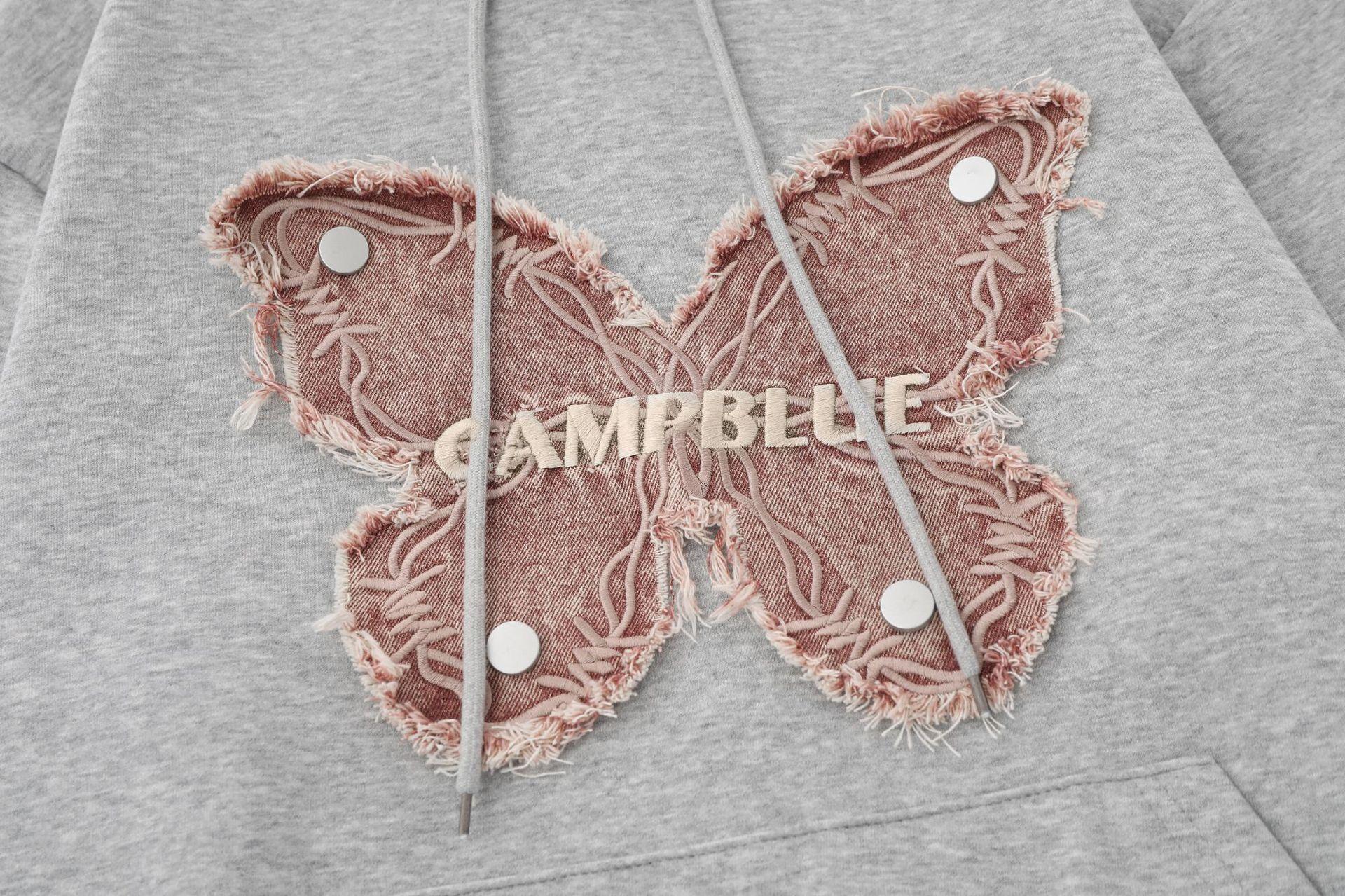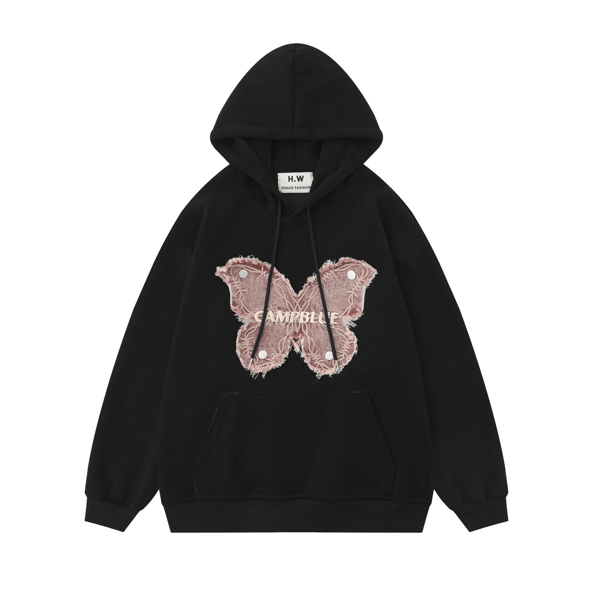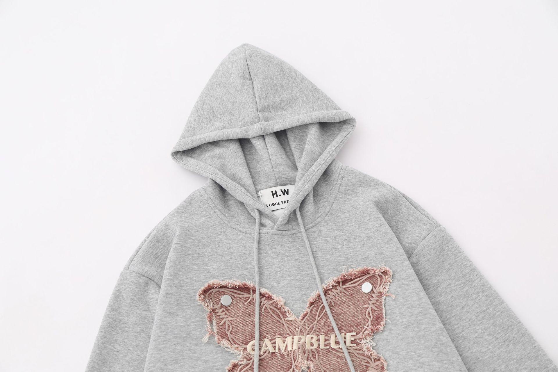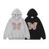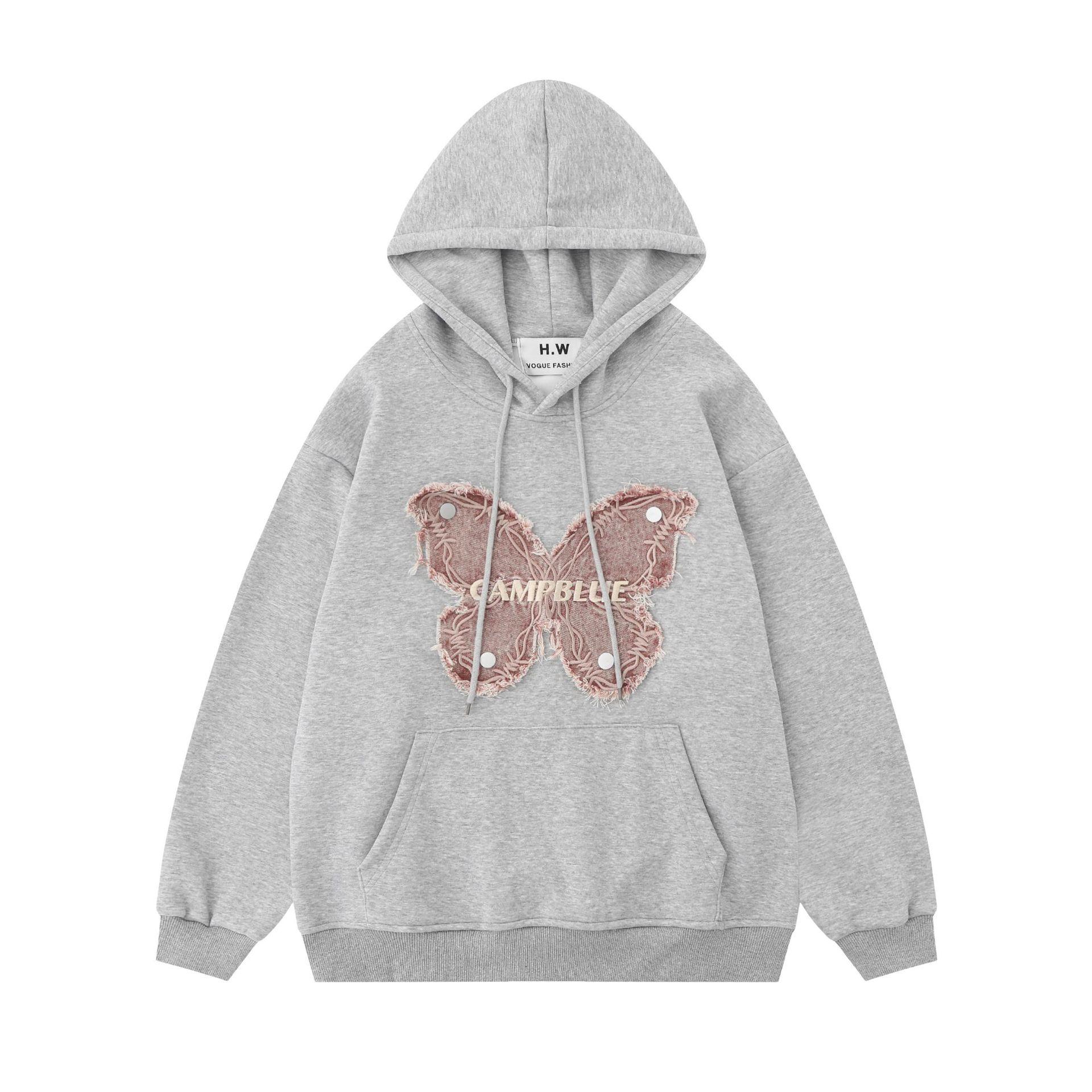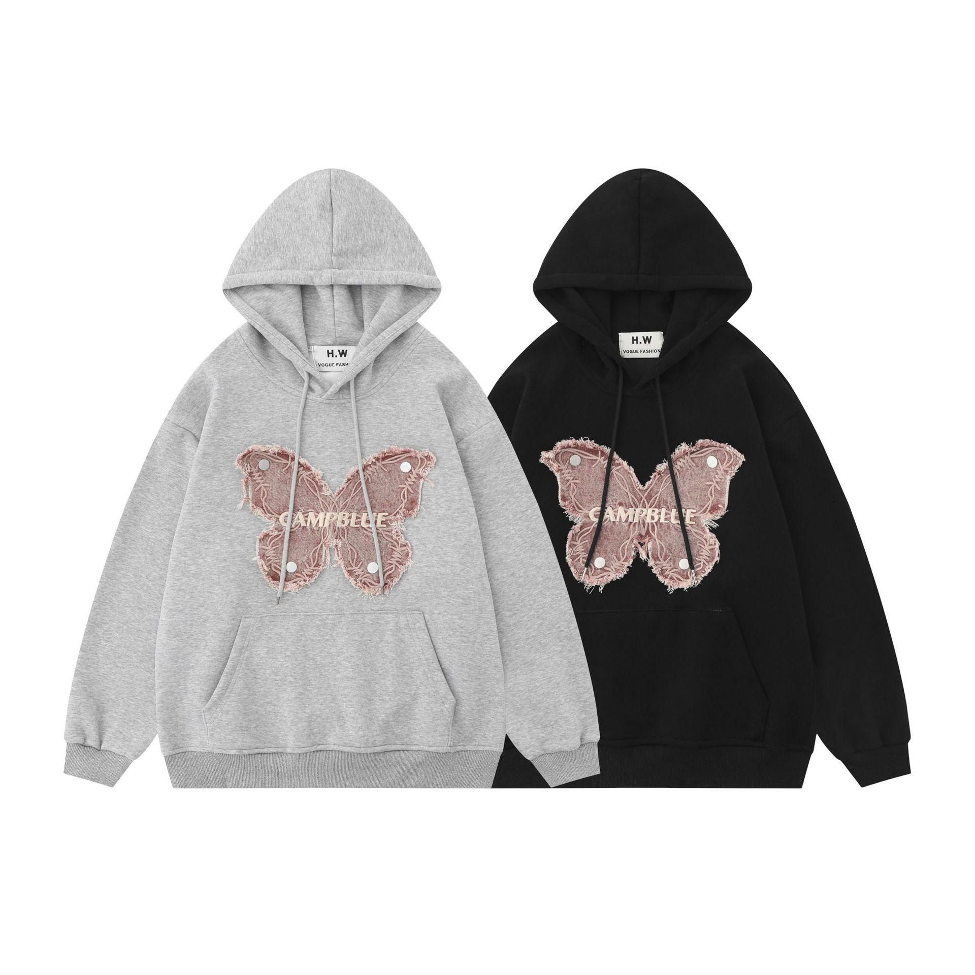 Suéter de punto bordado con parche de mariposa retro americano para mujer, marca de moda ins, holgado, casual, para pareja, con capucha, moda