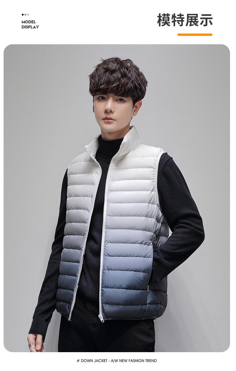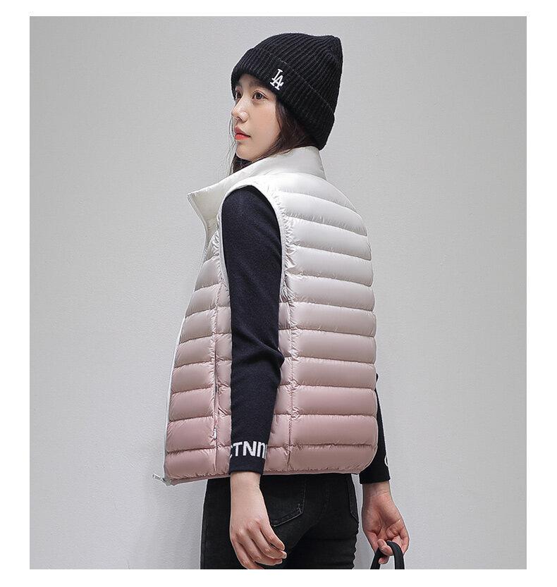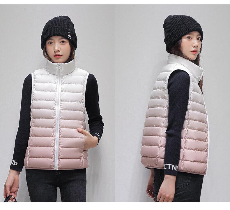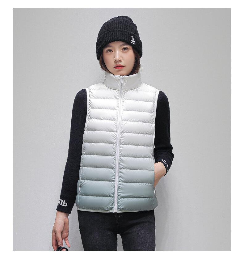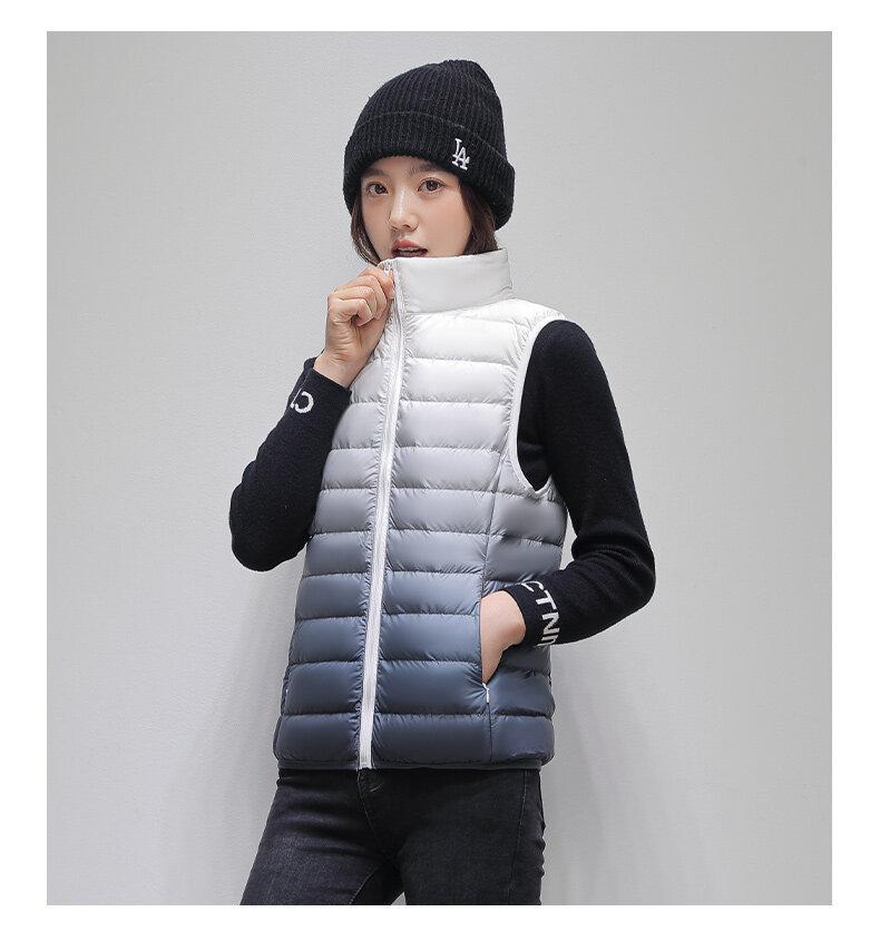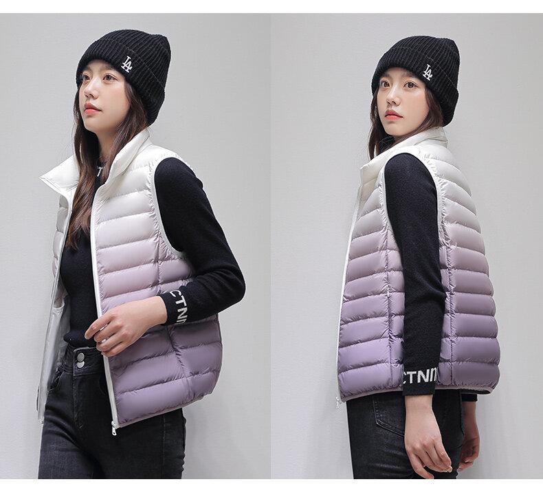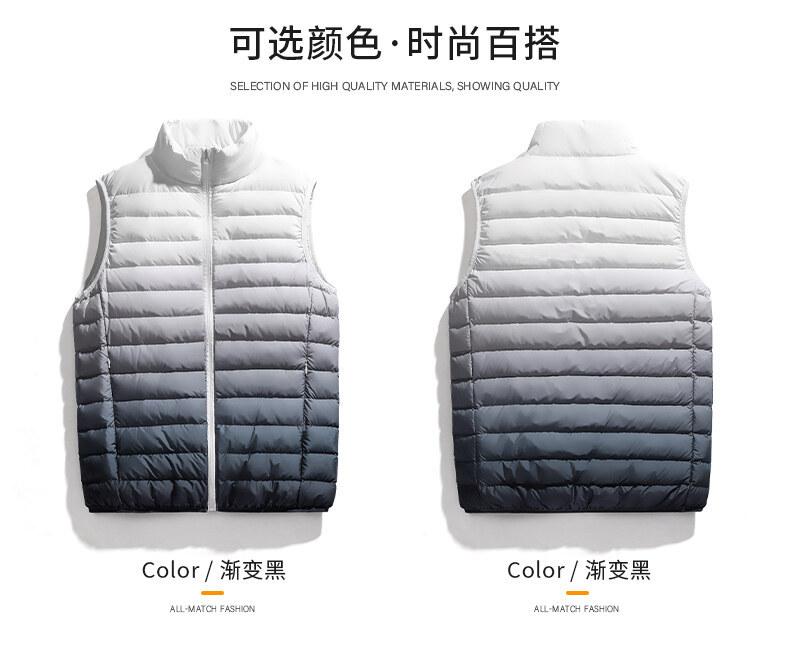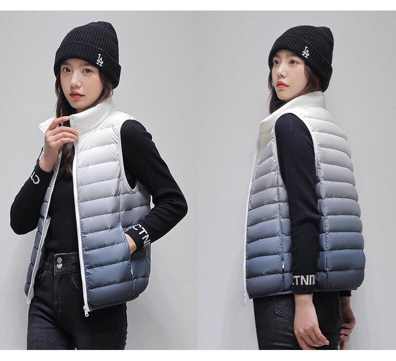 Chaqueta de plumón de color degradado para otoño e invierno, chaleco de pareja, abrigo para hombre y mujer, cuello alto, ligero, de plumón de pato blanco de invierno