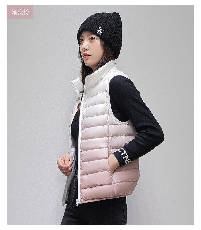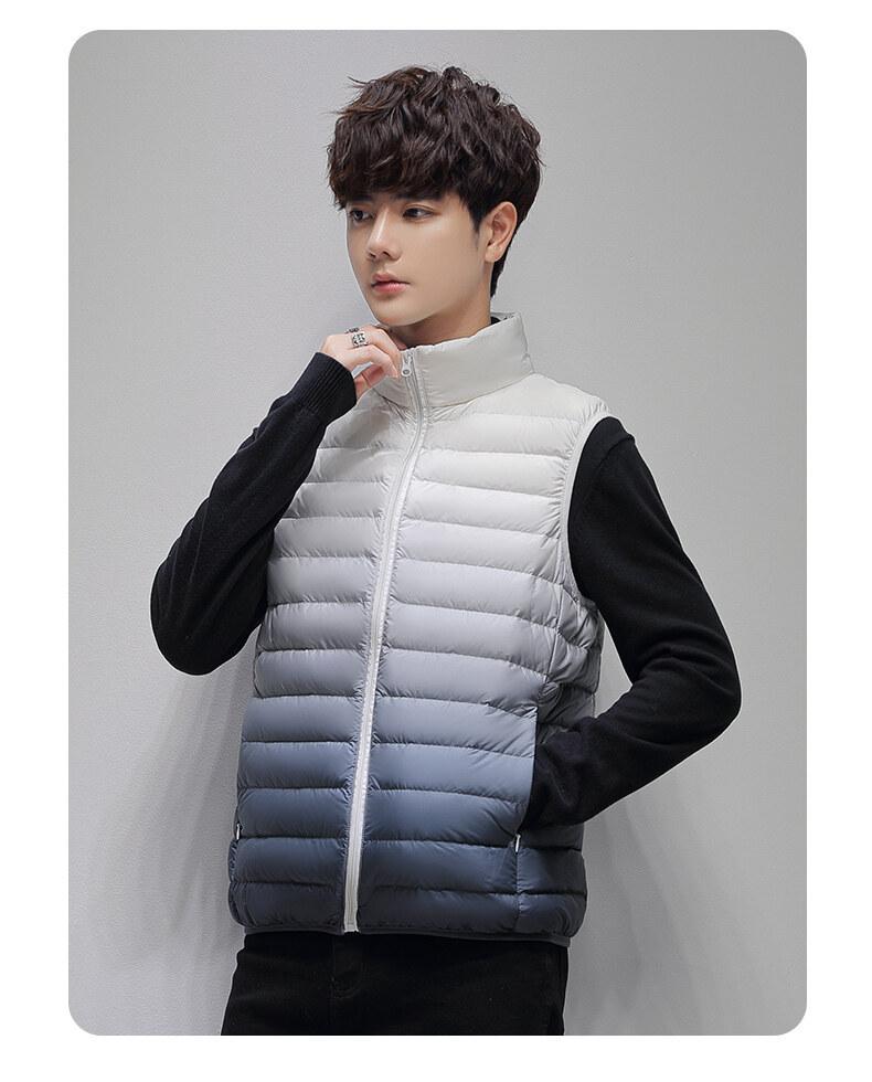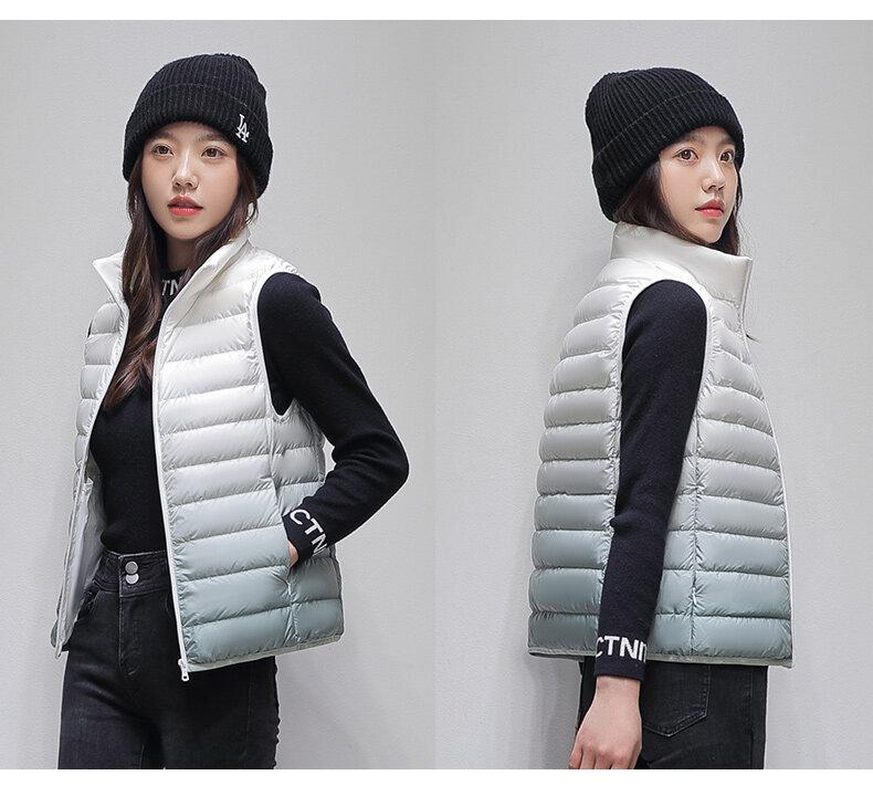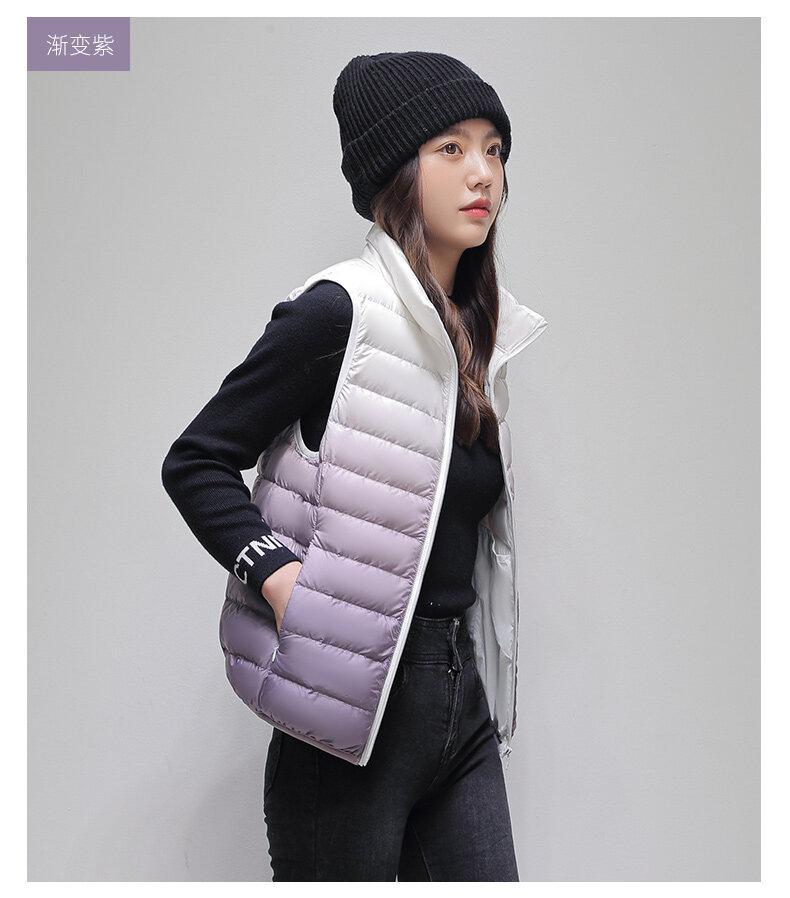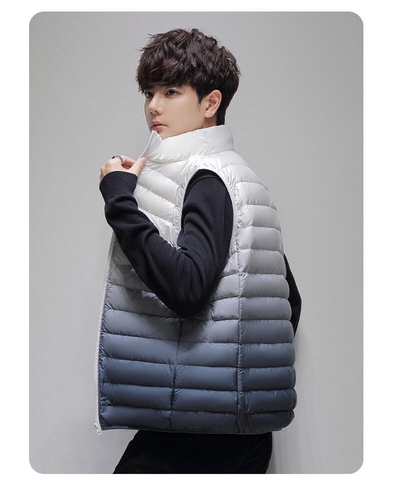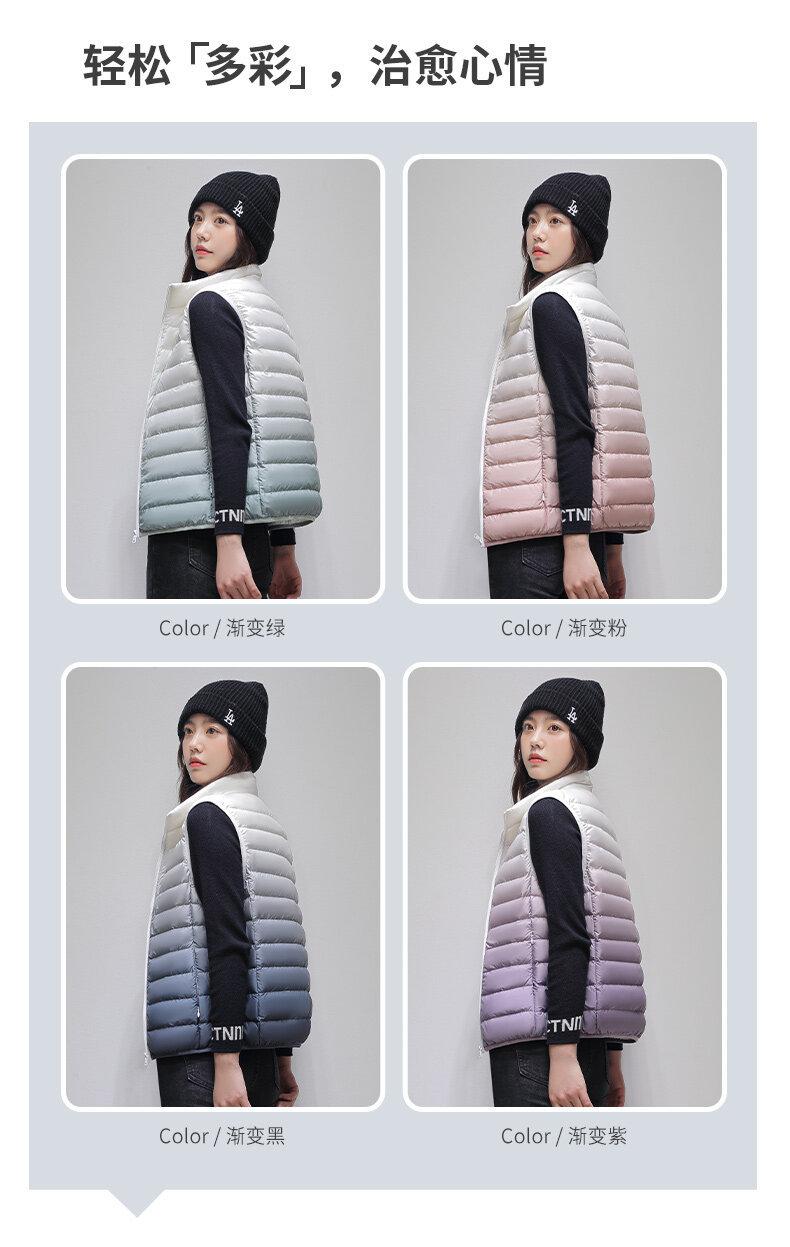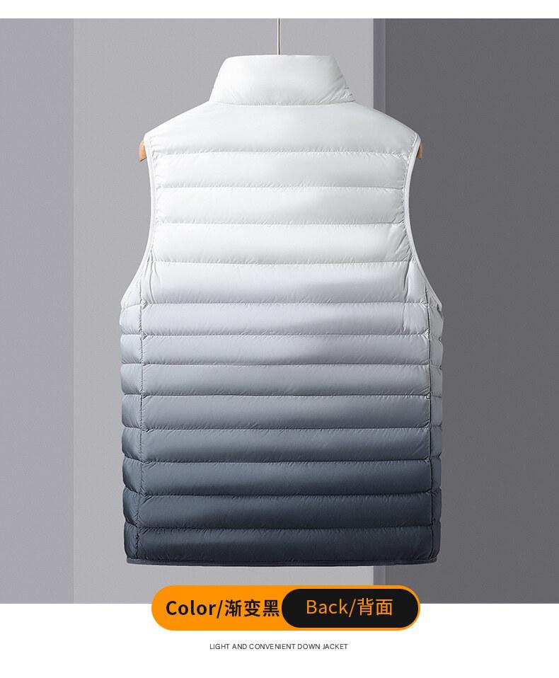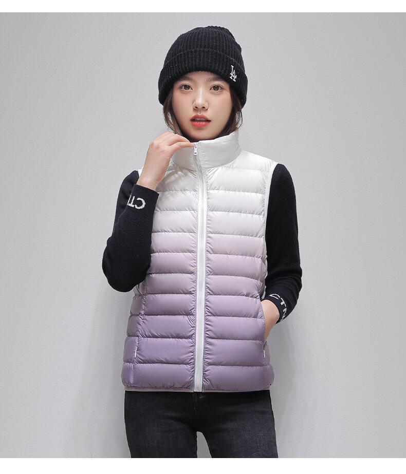 Chaqueta de plumón de color degradado para otoño e invierno, chaleco de pareja, abrigo para hombre y mujer, cuello alto, ligero, de plumón de pato blanco de invierno