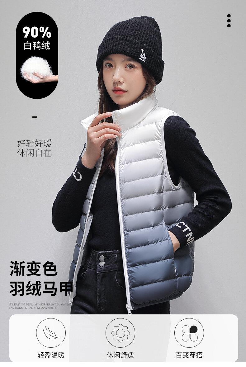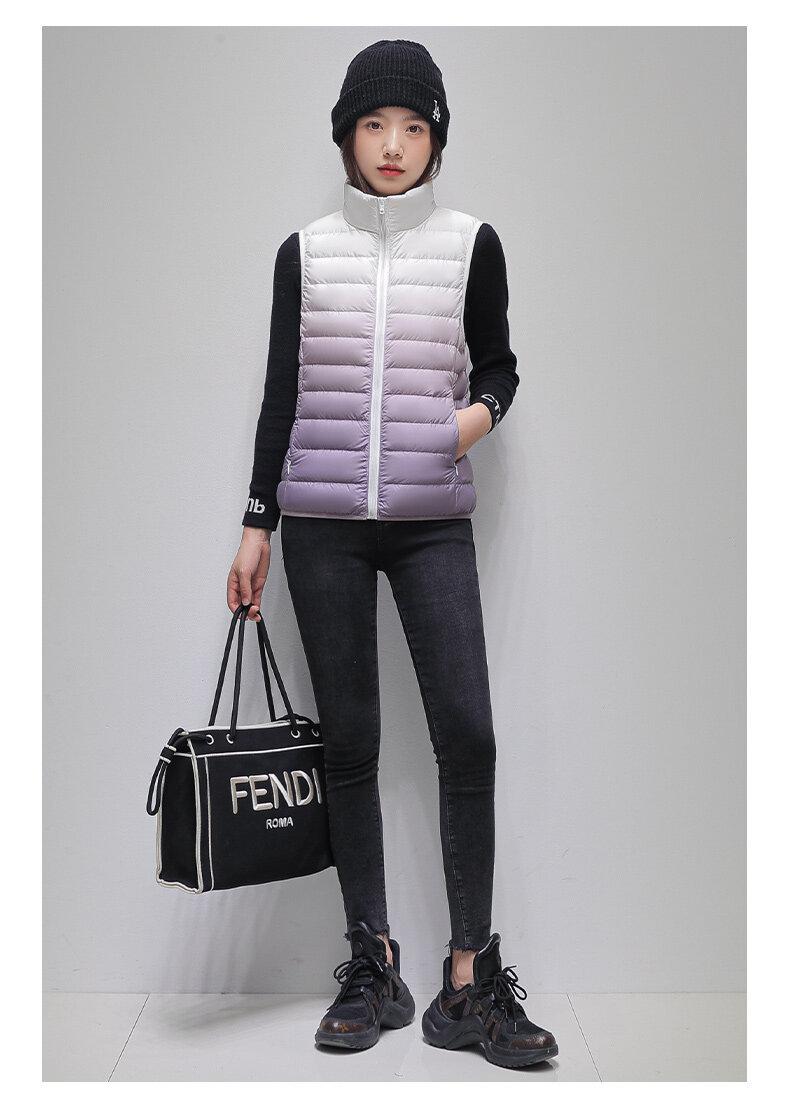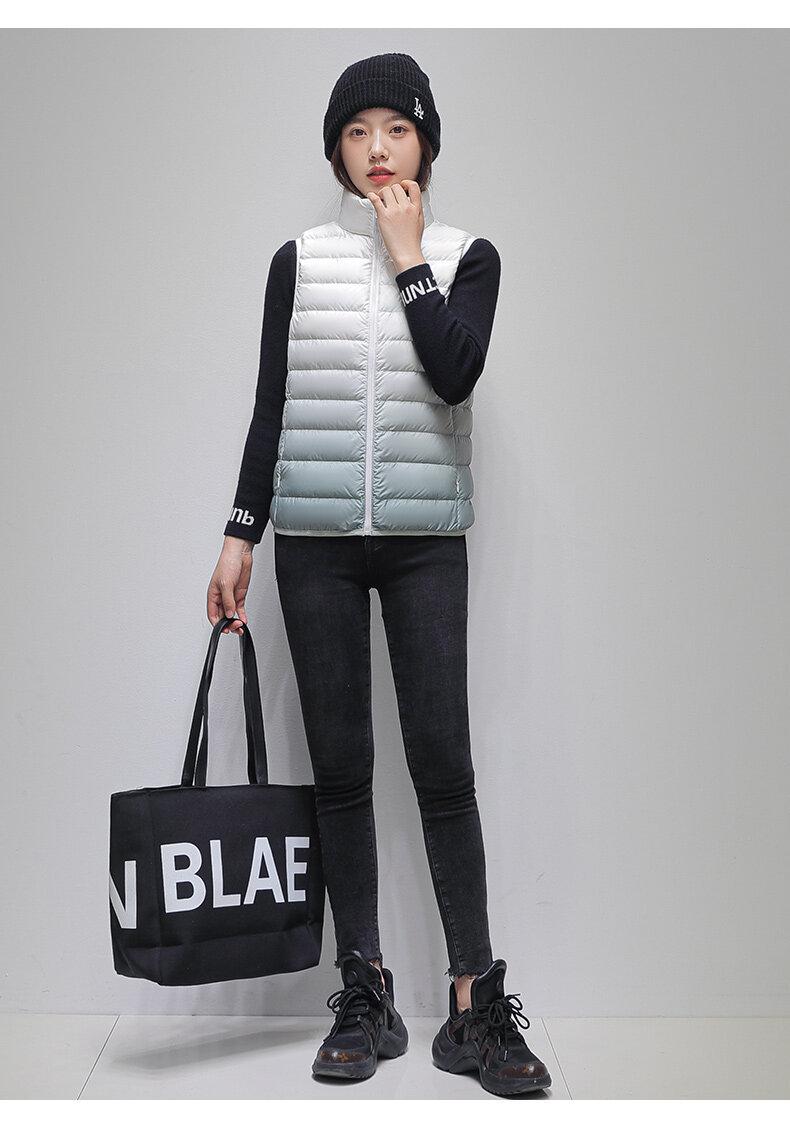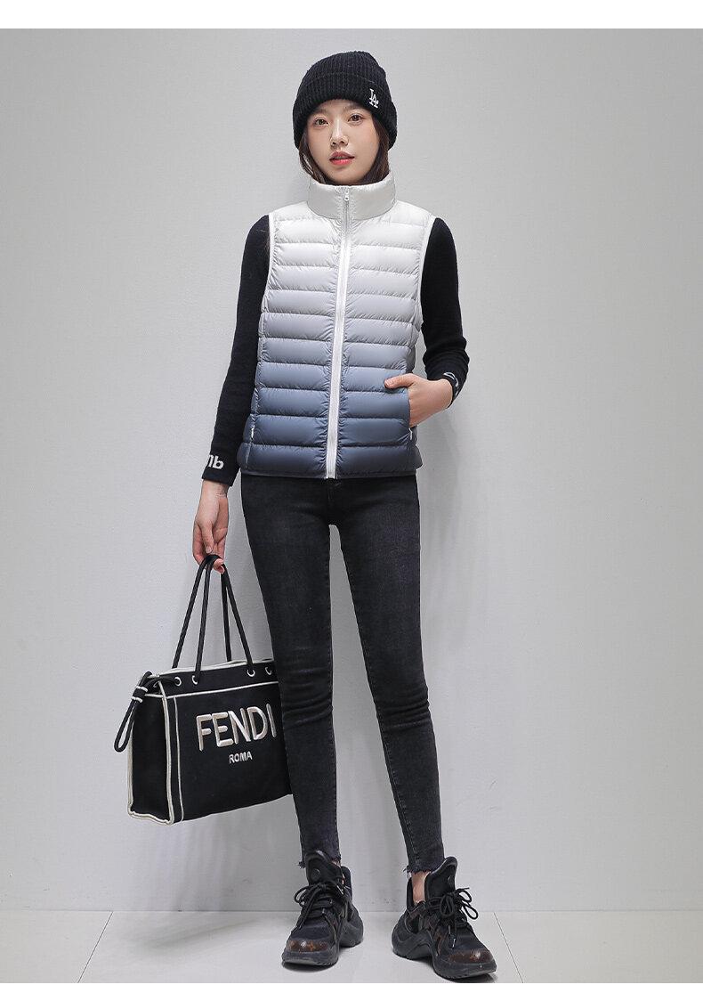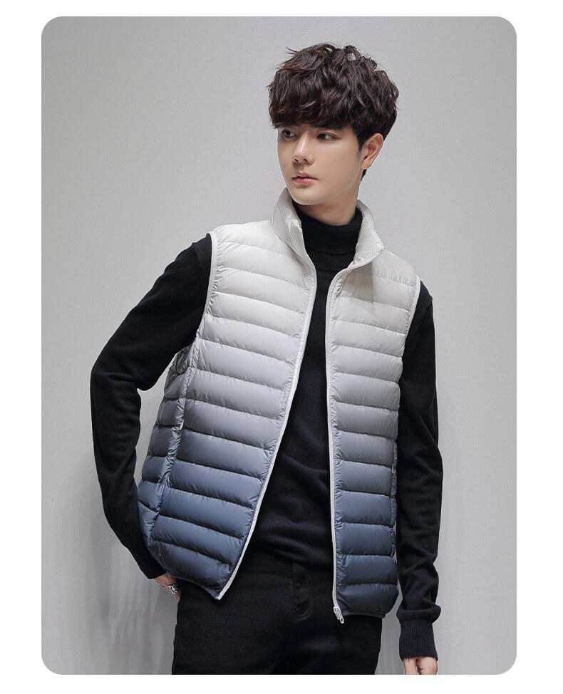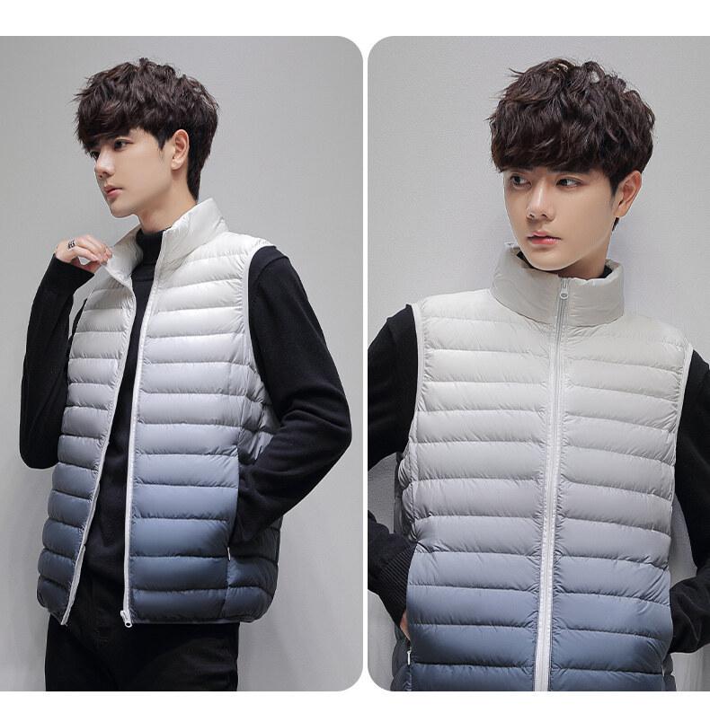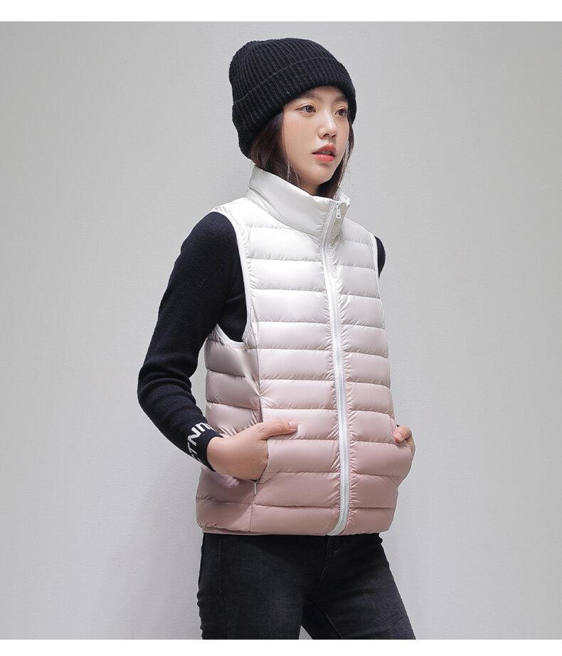 Chaqueta de plumón de color degradado para otoño e invierno, chaleco de pareja, abrigo para hombre y mujer, cuello alto, ligero, de plumón de pato blanco de invierno