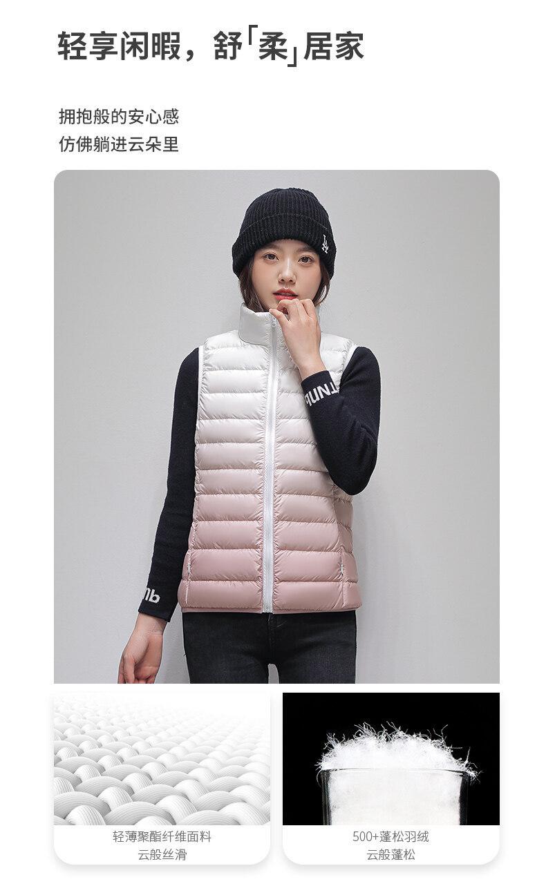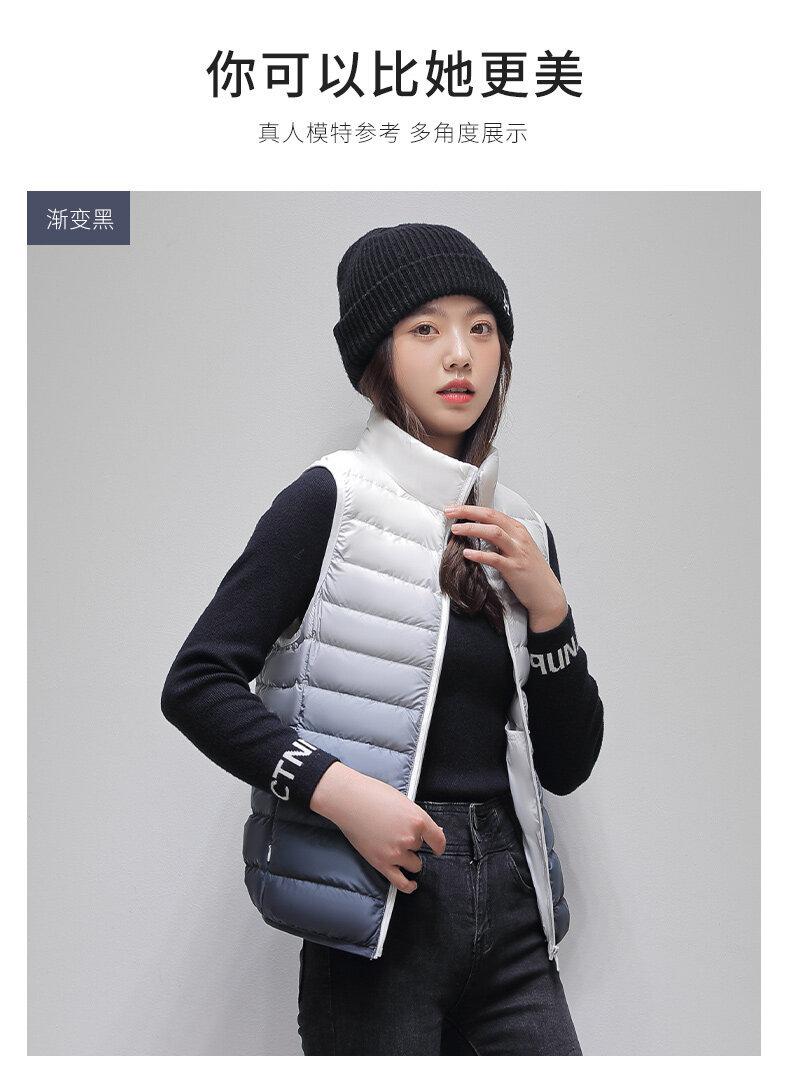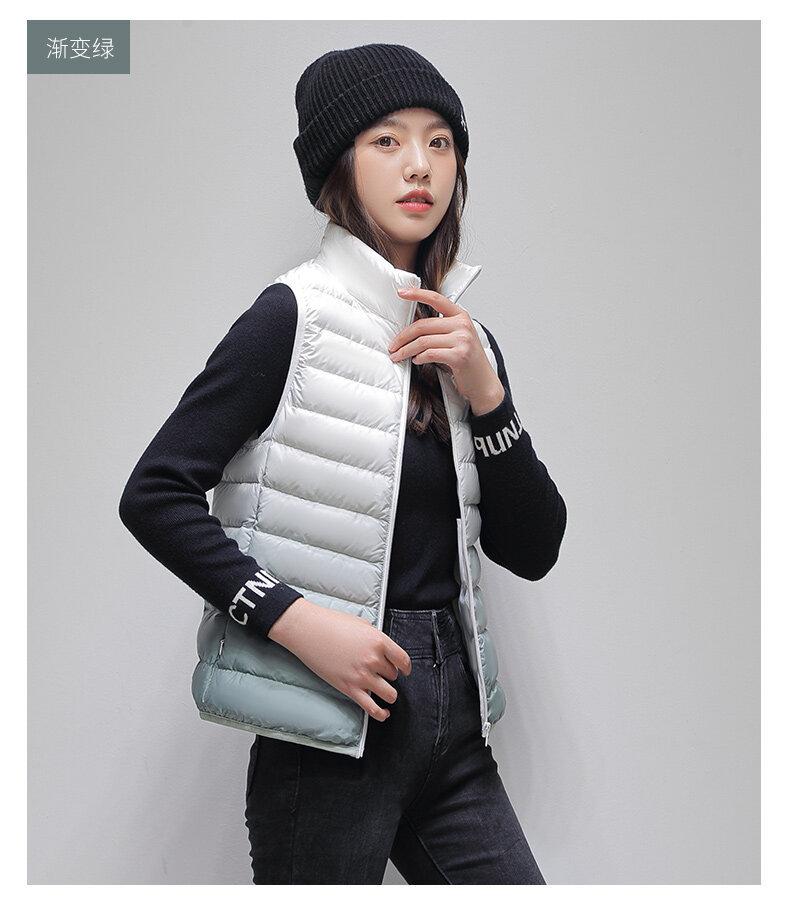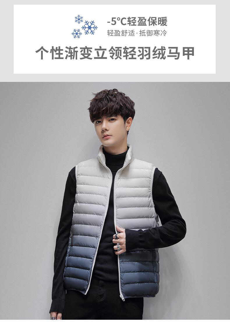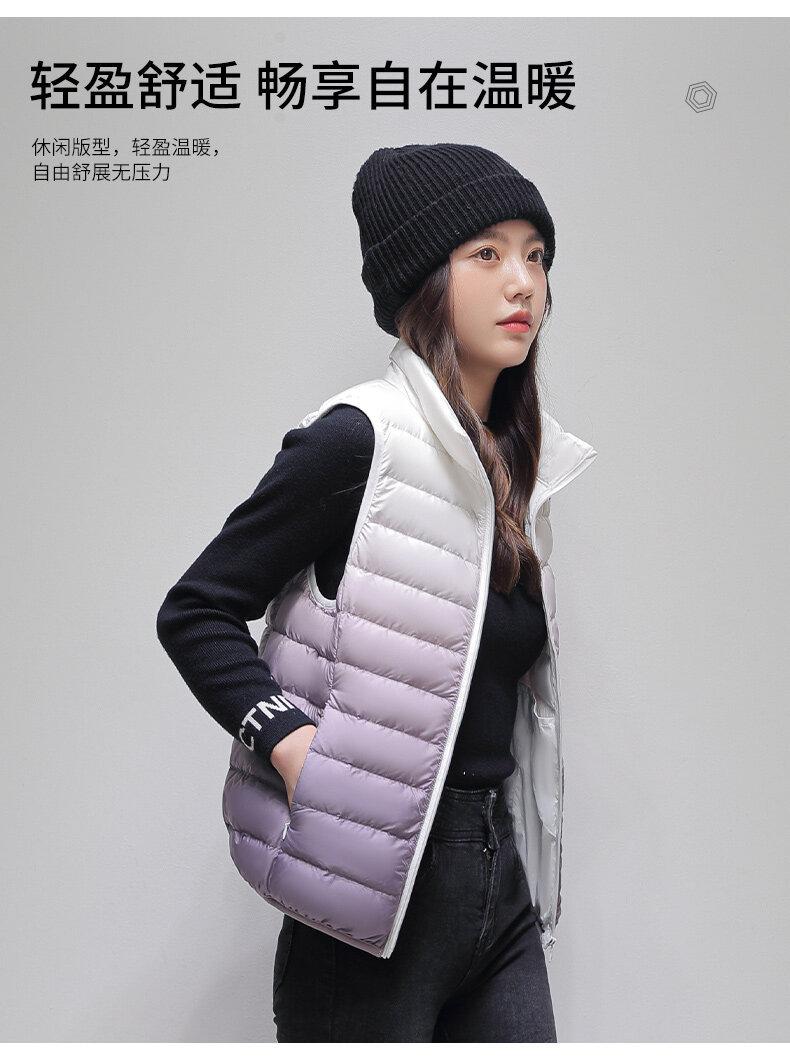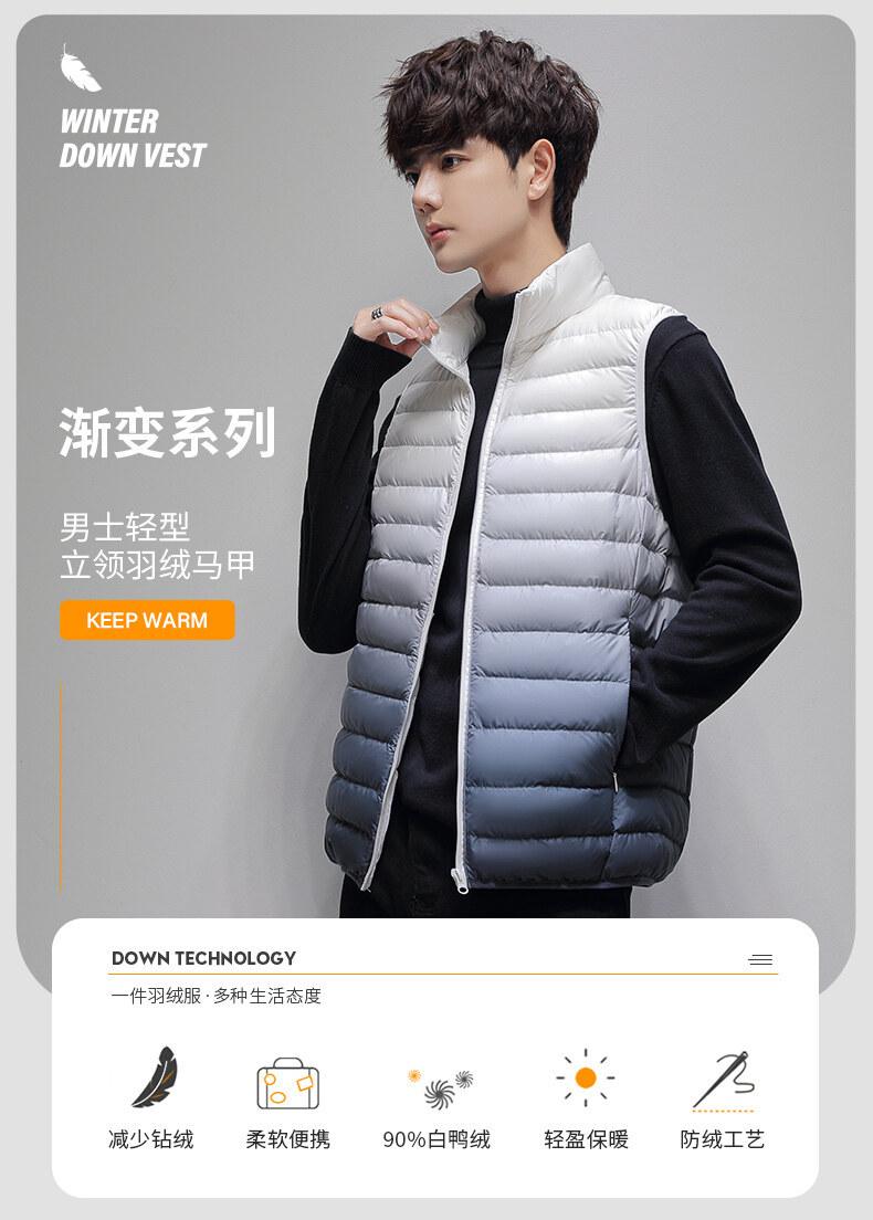 Chaqueta de plumón de color degradado para otoño e invierno, chaleco de pareja, abrigo para hombre y mujer, cuello alto, ligero, de plumón de pato blanco de invierno
