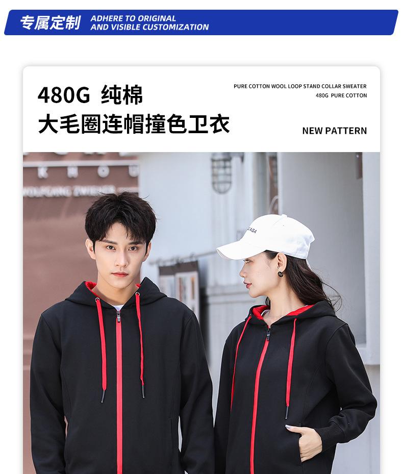 Sudadera con capucha y cremallera de algodón a contraste de color, ropa de trabajo corporativa con capucha personalizada, abrigo, publicidad cultural, logotipo estampado personalizado