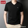 Camiseta de manga corta de algodón de otoño para hombre, cuello en V, fina, informal, holgada, con cuello en forma de corazón, estilo jersey.