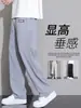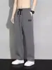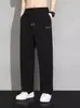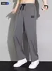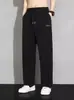 Pantalones de seda de hielo de verano para hombre, pantalones holgados de pierna ancha, pantalones deportivos rectos para hombre, pantalones casuales de moda americana