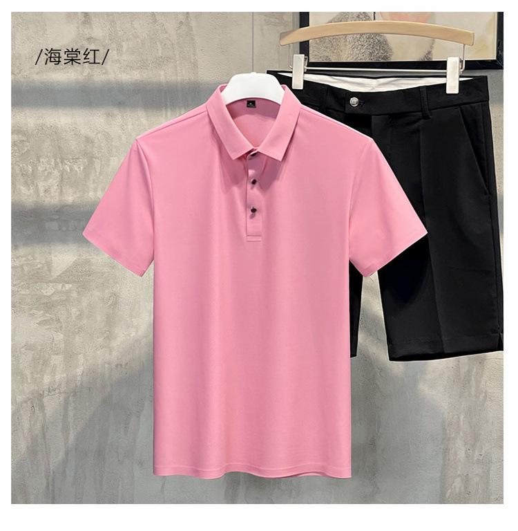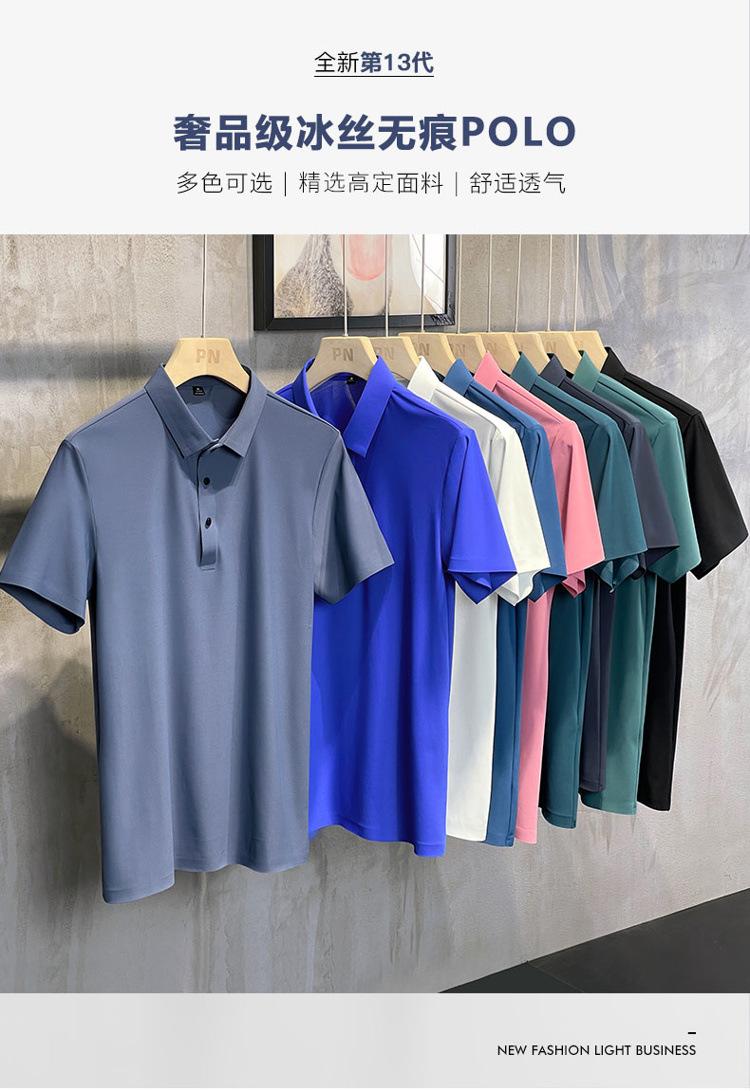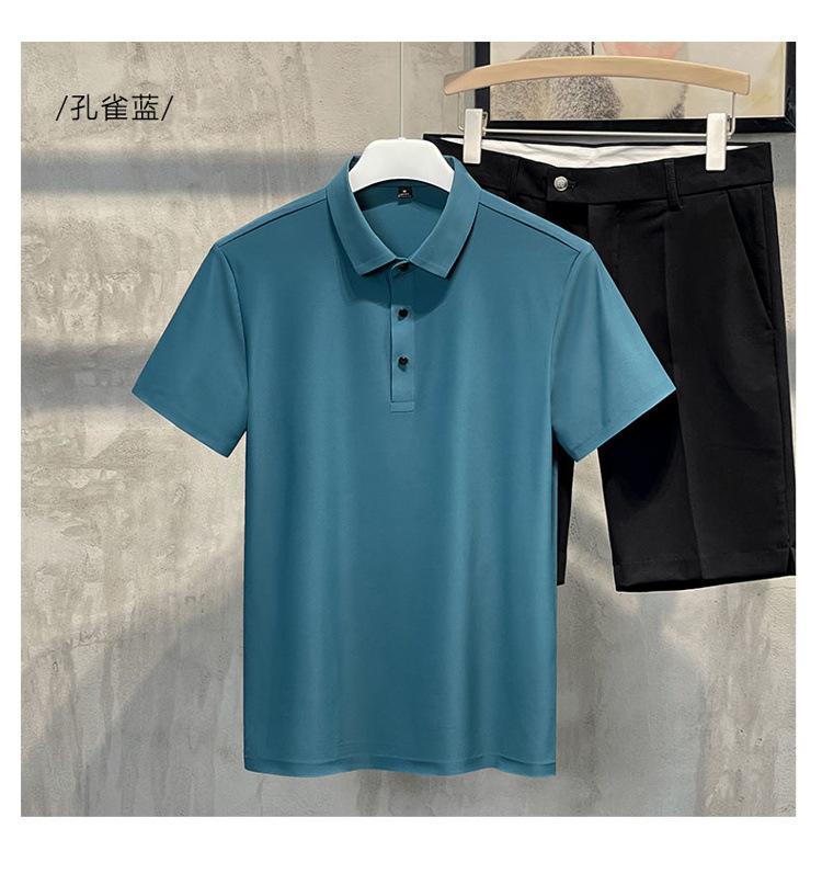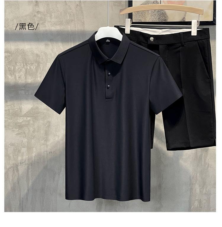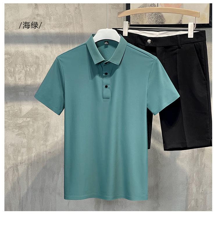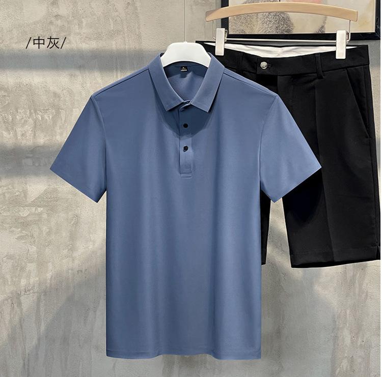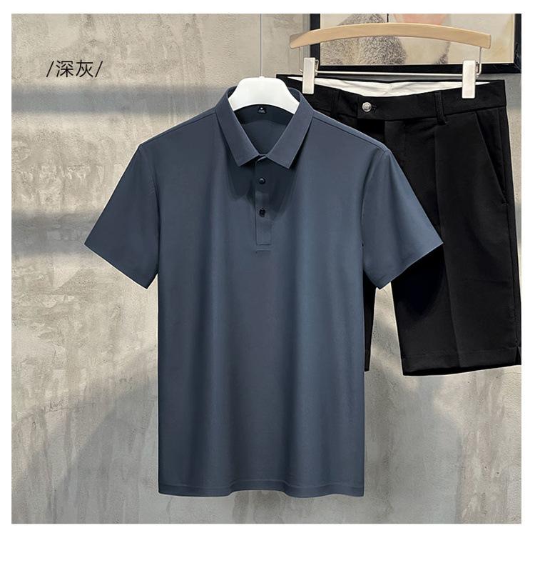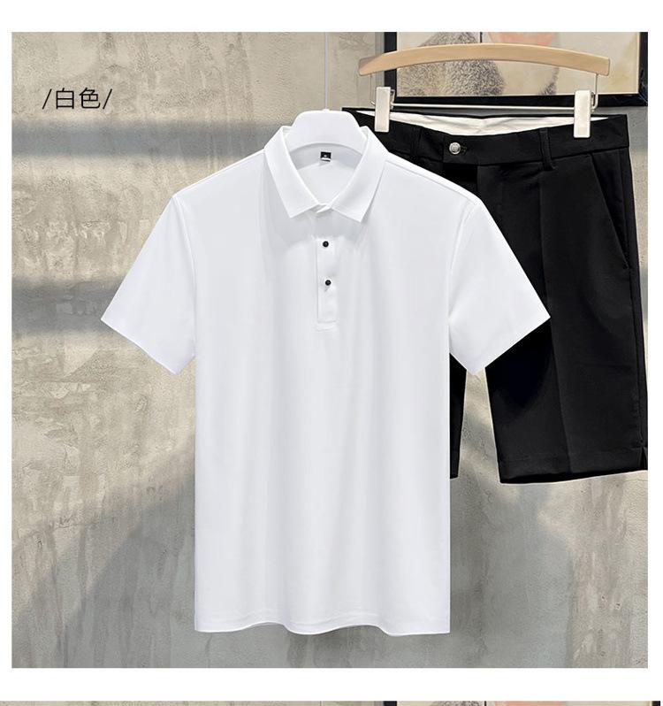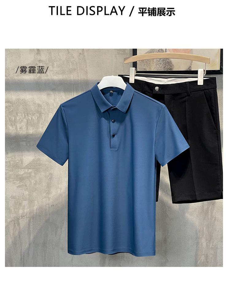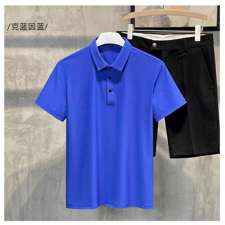Polo de manga corta de verano para hombre, camiseta de seda helada sin marcas, informal, elástica, con láser, ropa informal de talla grande para hombre