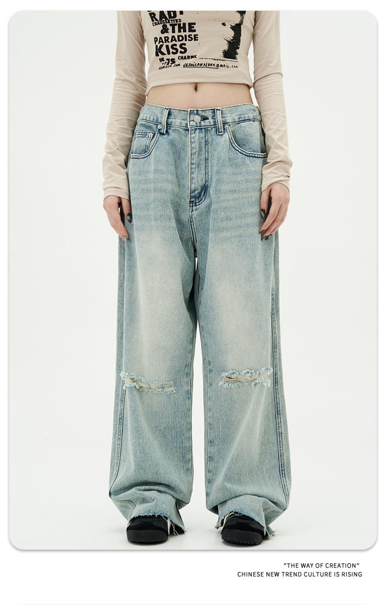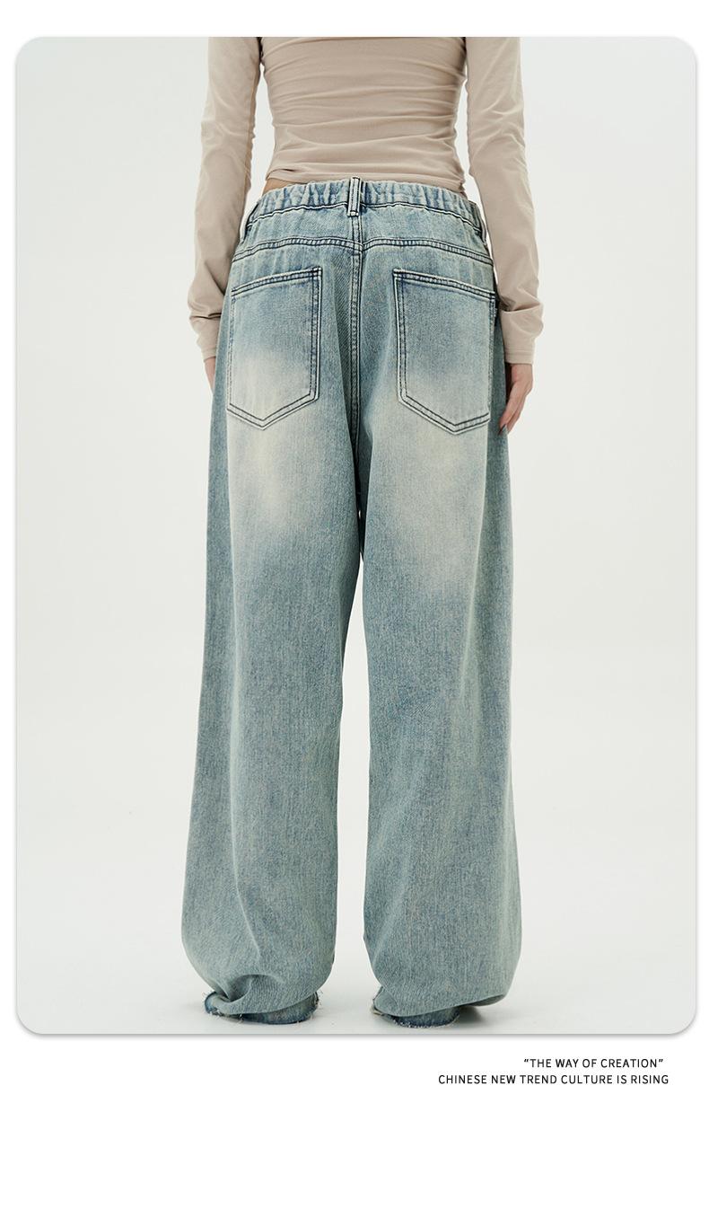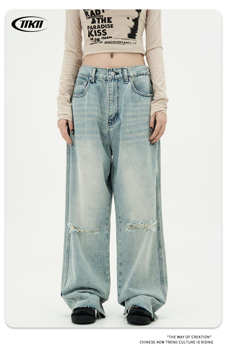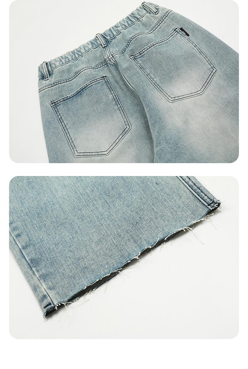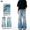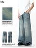 11KN 미국식 고가 vibe 낡은 마모 블랙 청바지 남성 와이드 스트레이트 빈티지 워싱 바지 ins