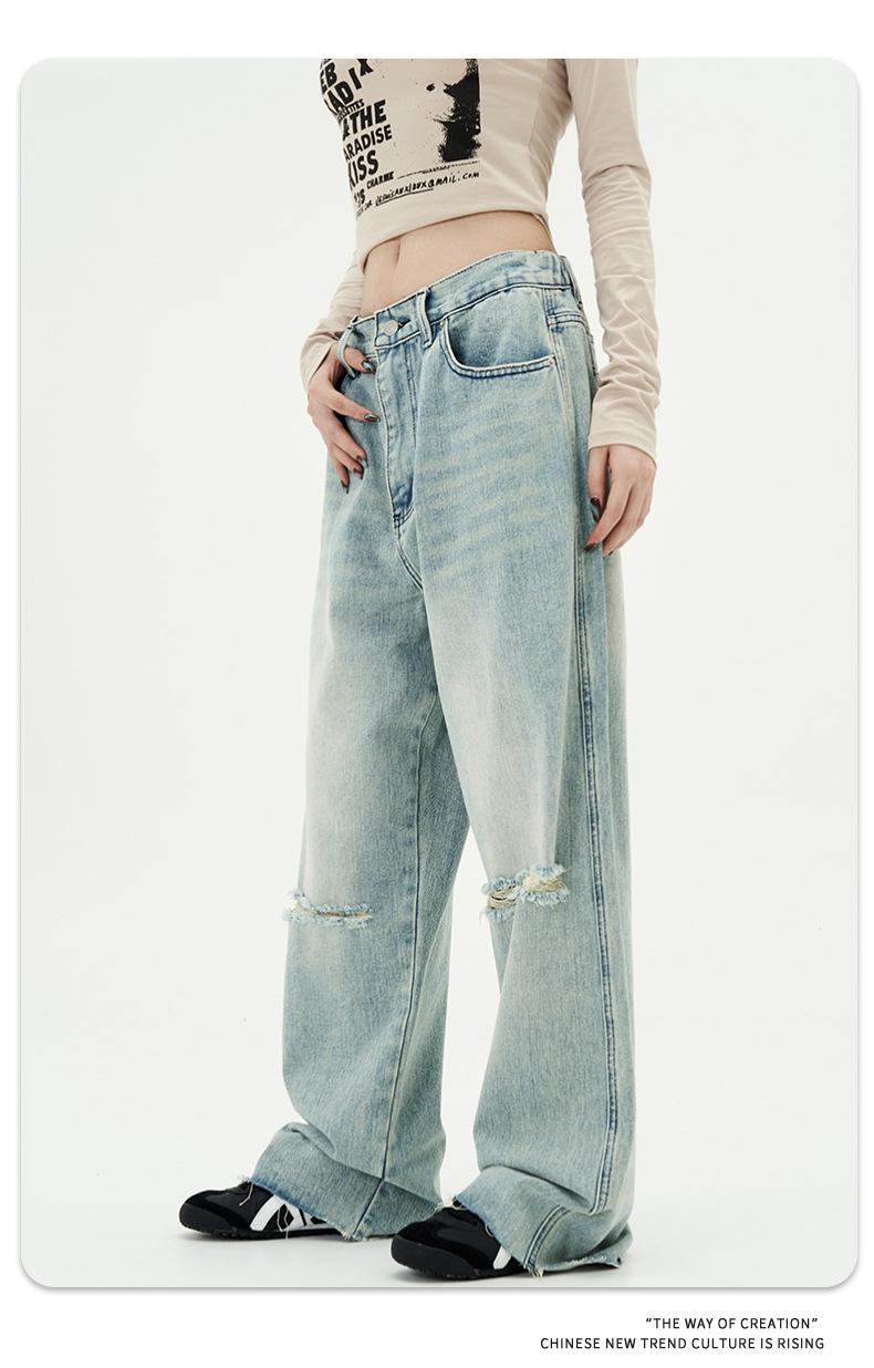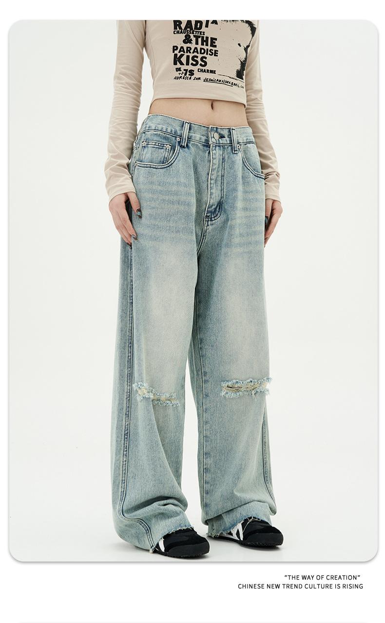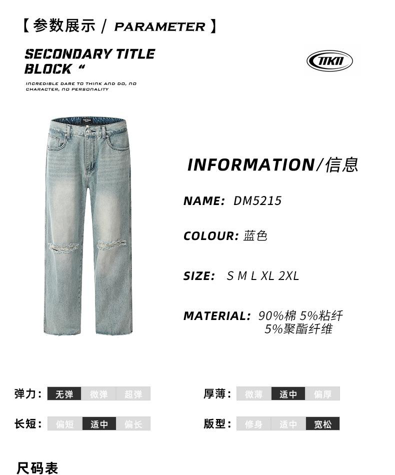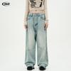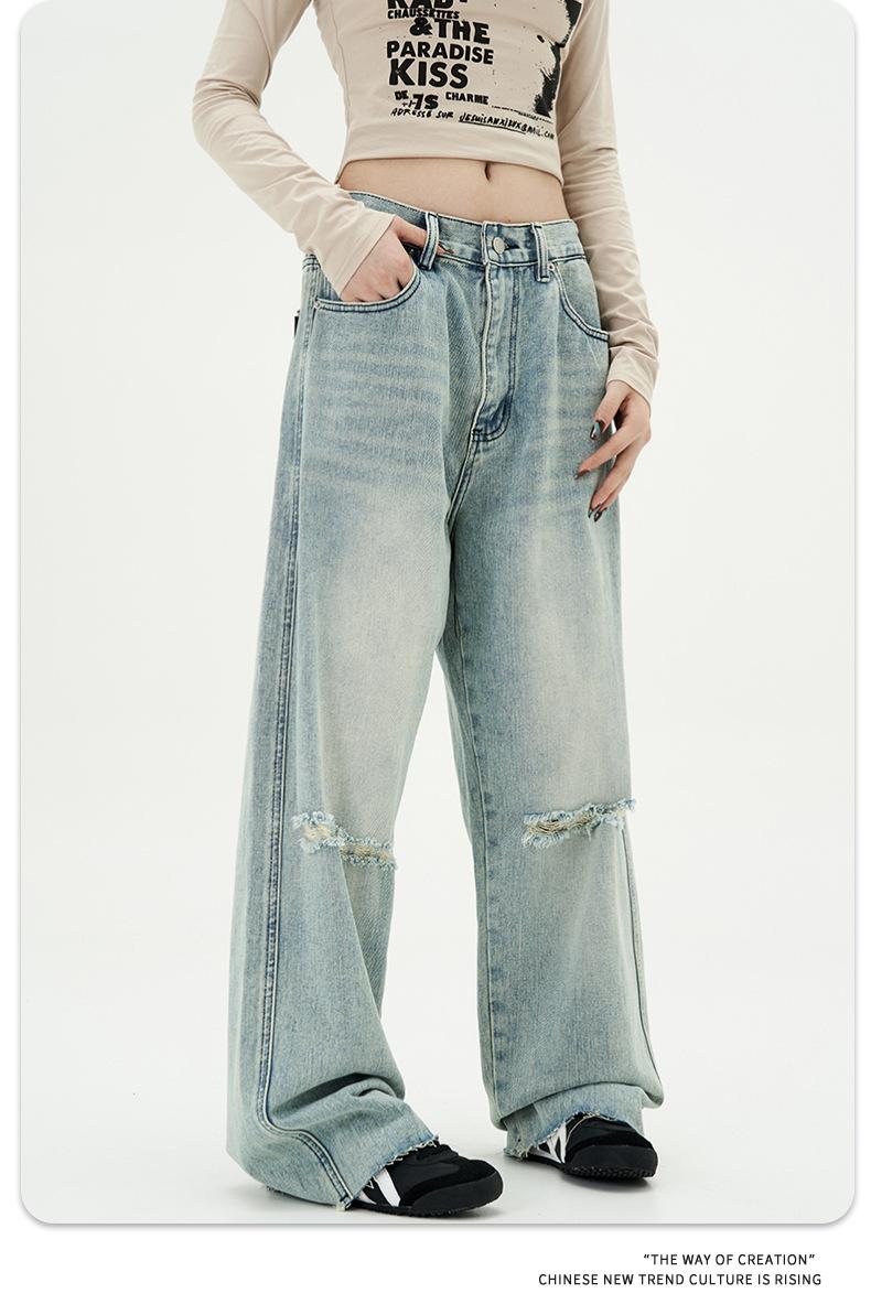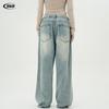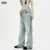 11KN 미국식 고가 vibe 낡은 마모 블랙 청바지 남성 와이드 스트레이트 빈티지 워싱 바지 ins