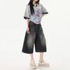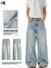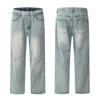 11KN American High Street Vibe Сделать старые изношенные черные джинсы Muжские свободные прямые винтажные штаны ins
