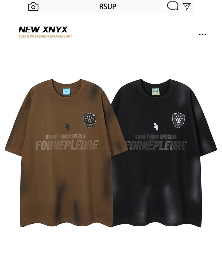 Camiseta con estampado retro de estilo americano para hombre, nueva marca de moda de verano, estilo hip hop, estilo callejero, holgada, de manga corta para pareja
