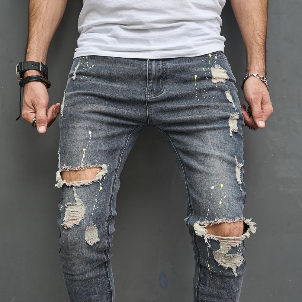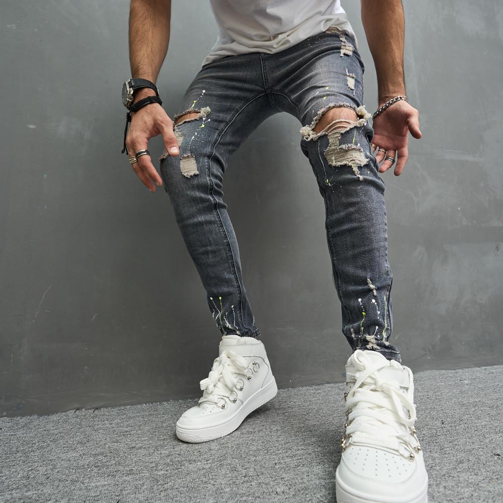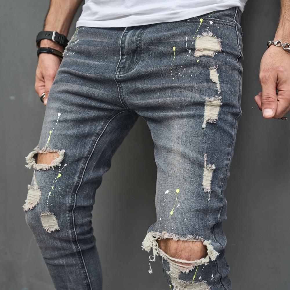 Compra Pantalones vaqueros nuevos de comercio exterior europeo y americano para hombre, desgastados hasta la rodilla, elásticos, casuales, ajustados, de moda para hombre 2023 al por mayor en Joom.pro