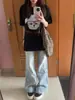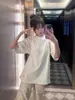 Camiseta de manga corta de algodón grueso de verano para hombre y mujer, holgada, de algodón, con cuello redondo, estampada, informal, para parejas, color blanco