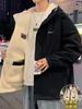 Chaqueta de Lana de Cordero para Hombre, Invierno Forrada de Polar y Engrosada, Abrigo de Algodón Casual Holgado con Capucha, Ropa de Invierno Reversible para Hombre