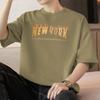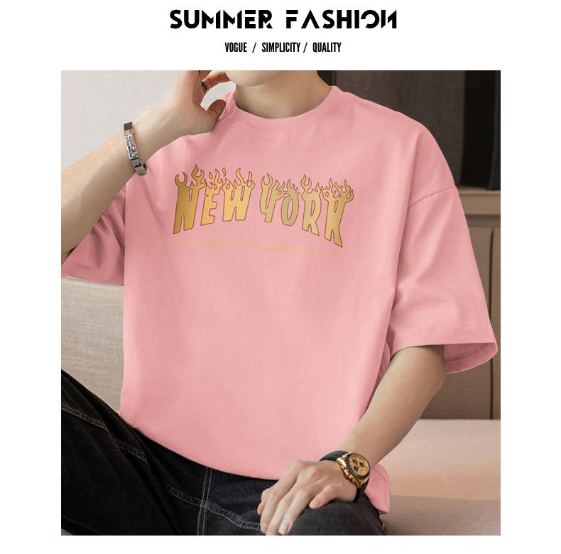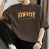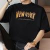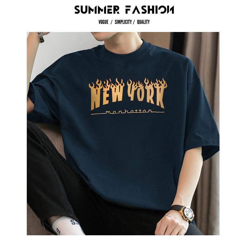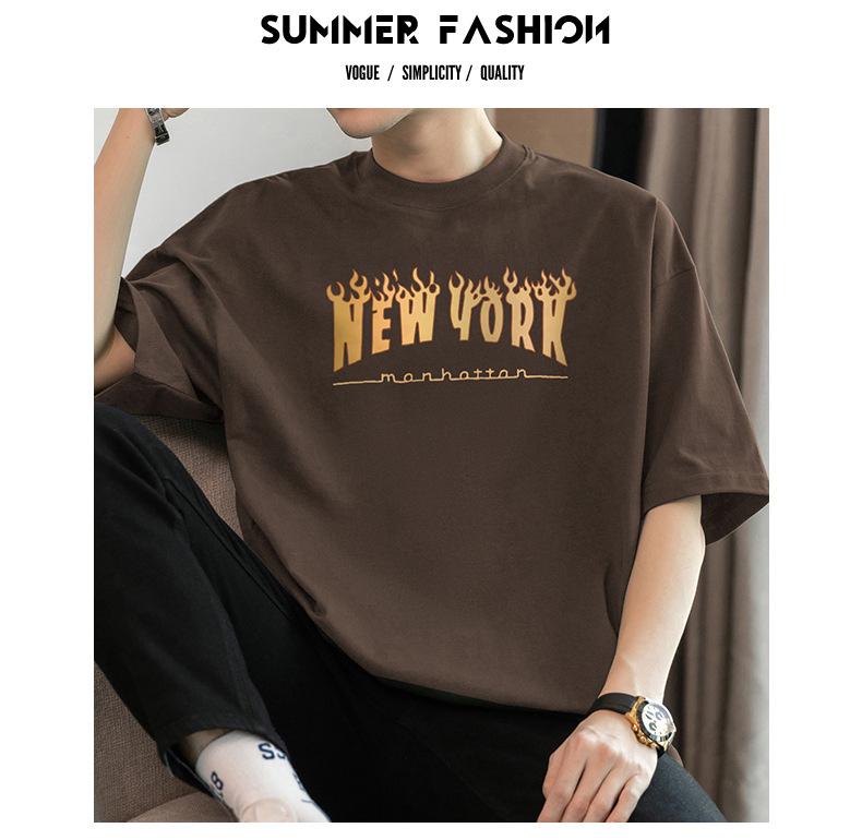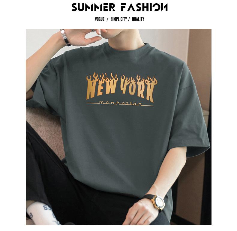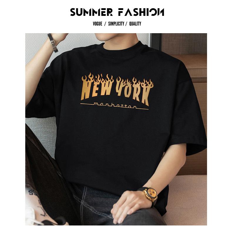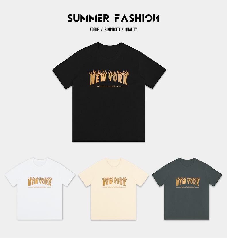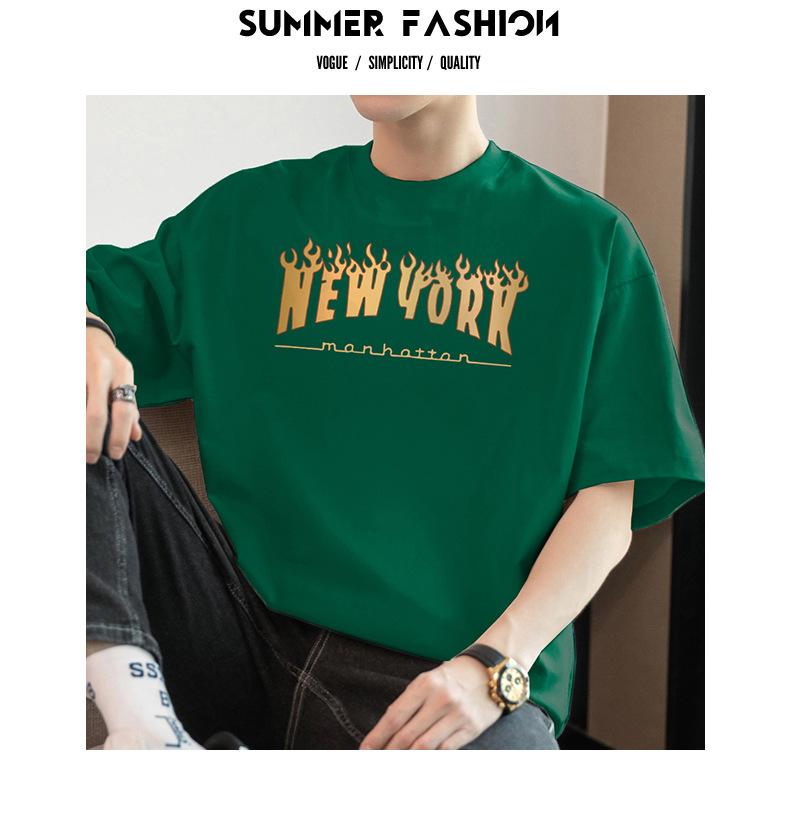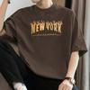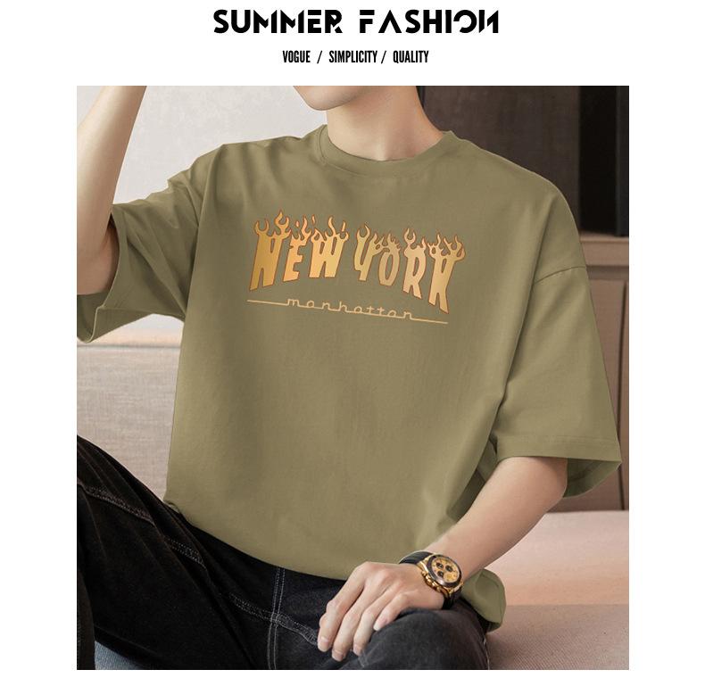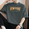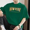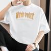 Camiseta de manga corta de algodón pesado de 260 g para hombre, cuello redondo, manga corta, estampado moderno, ropa holgada de verano