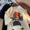 Camisa de terciopelo de manga corta con diseño fresco estilo japonés para hombre y mujer, moda de verano, holgada, casual, para pareja, de media manga