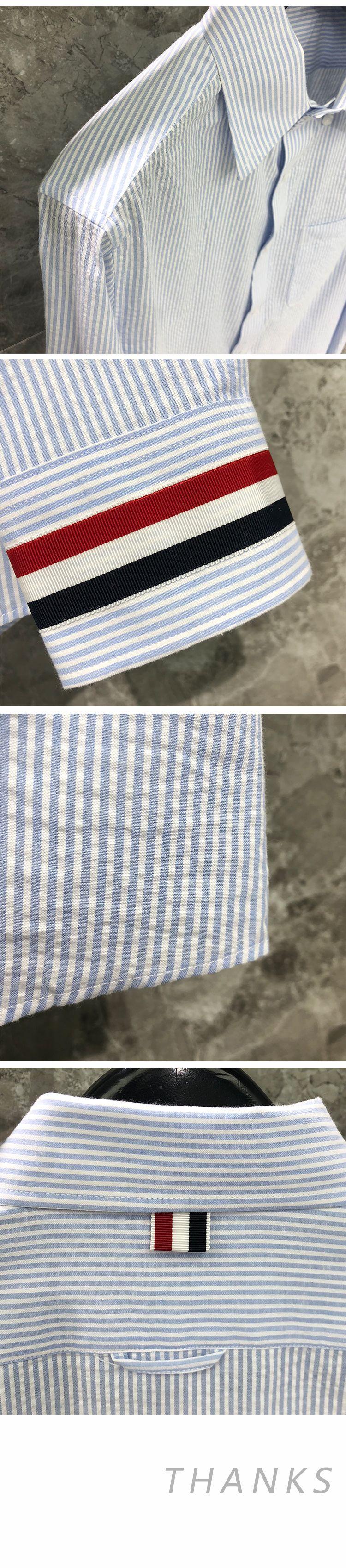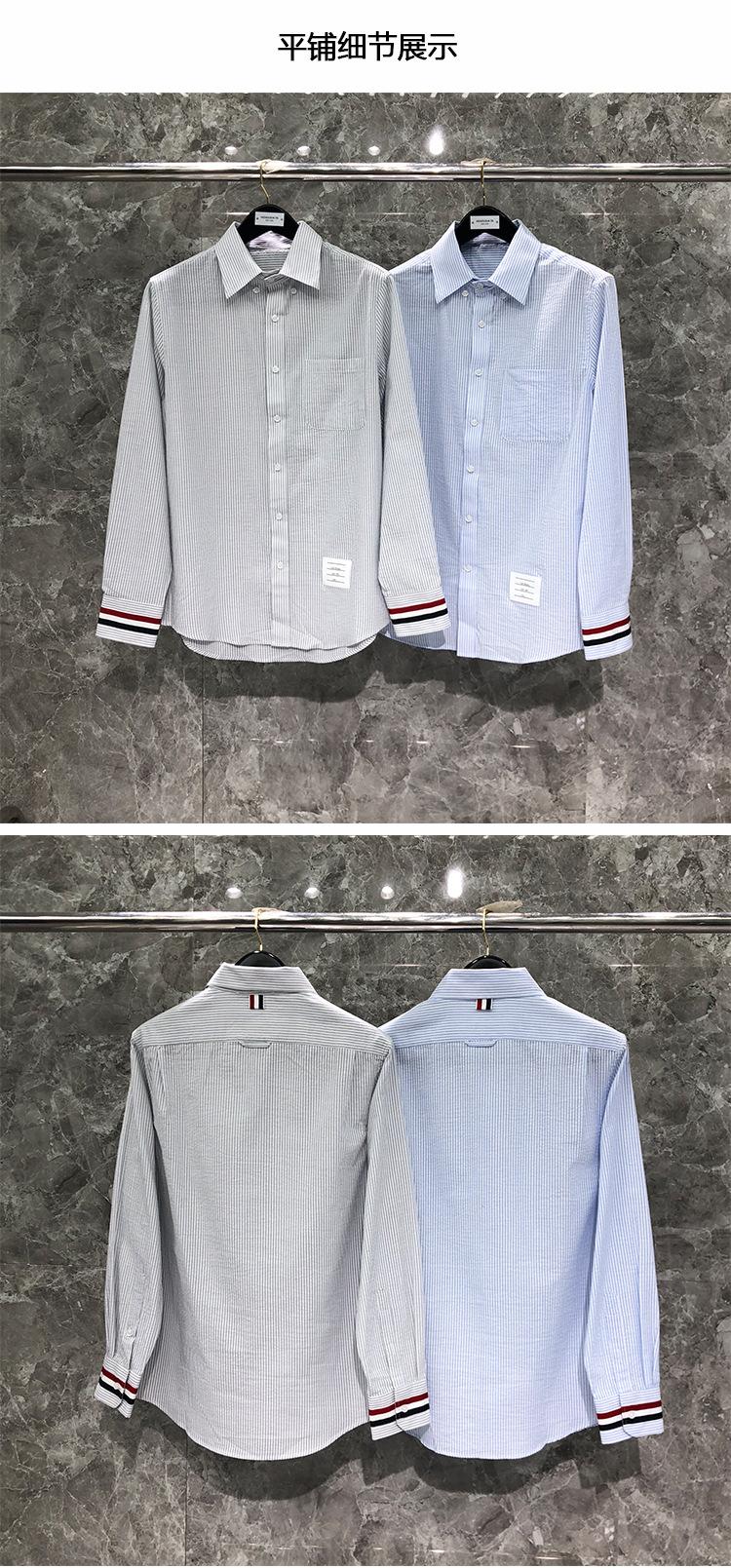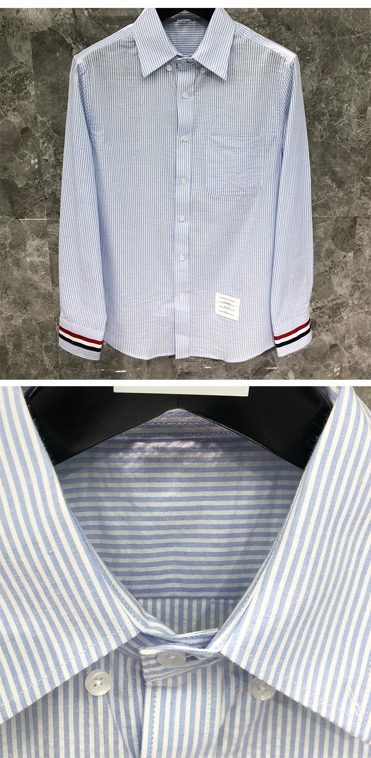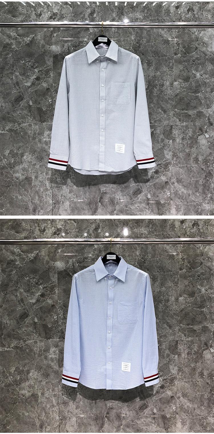 TIME BREATHE camisa tb Versión alta estilo universitario holgada burbuja a rayas cuatro barras pareja camisa manga larga