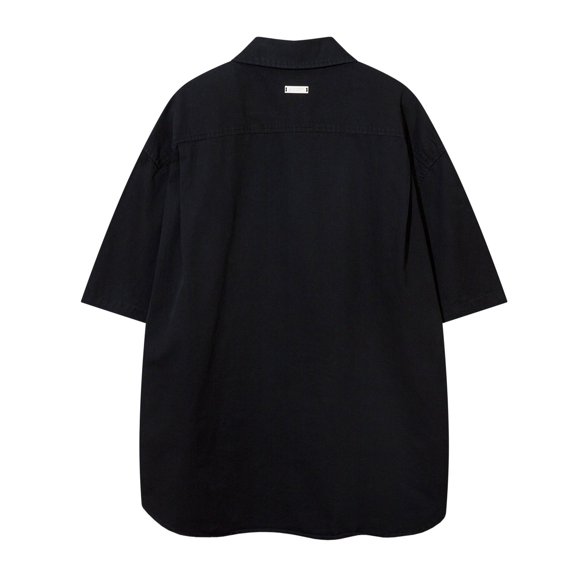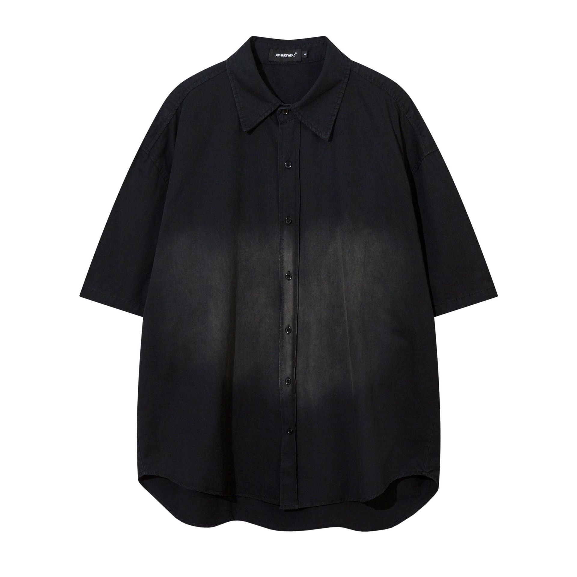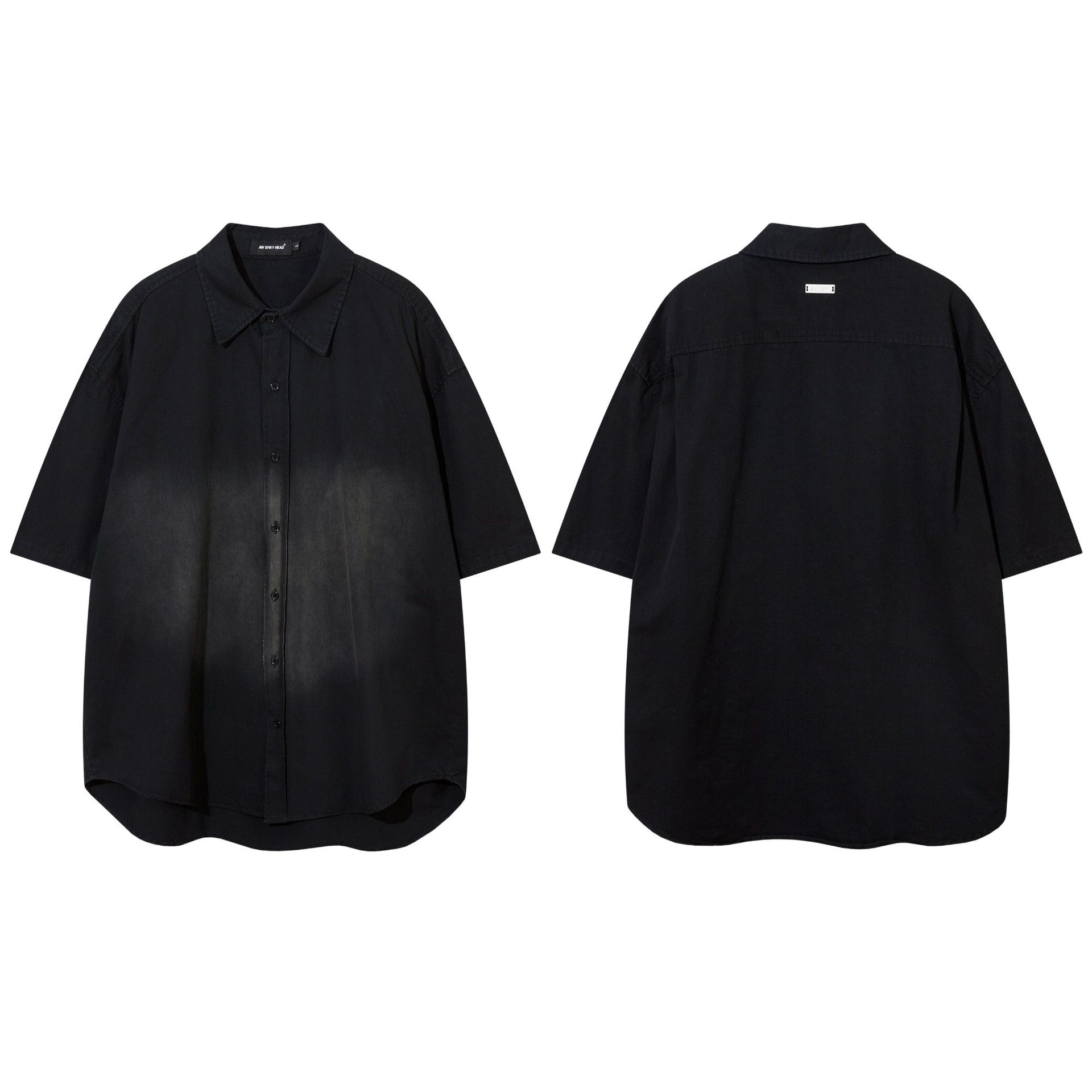 Camisa de manga corta retro americana, con pintura en aerosol decorativa de metal callejero, marca de moda para hombres y mujeres, camisa holgada para parejas, abrigo fino