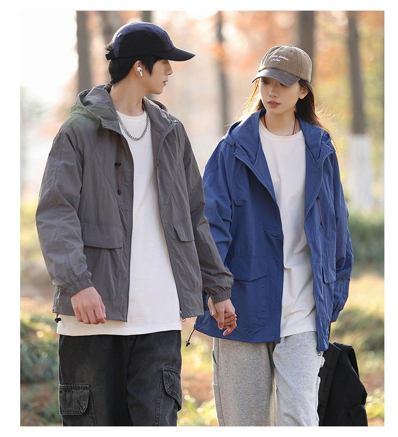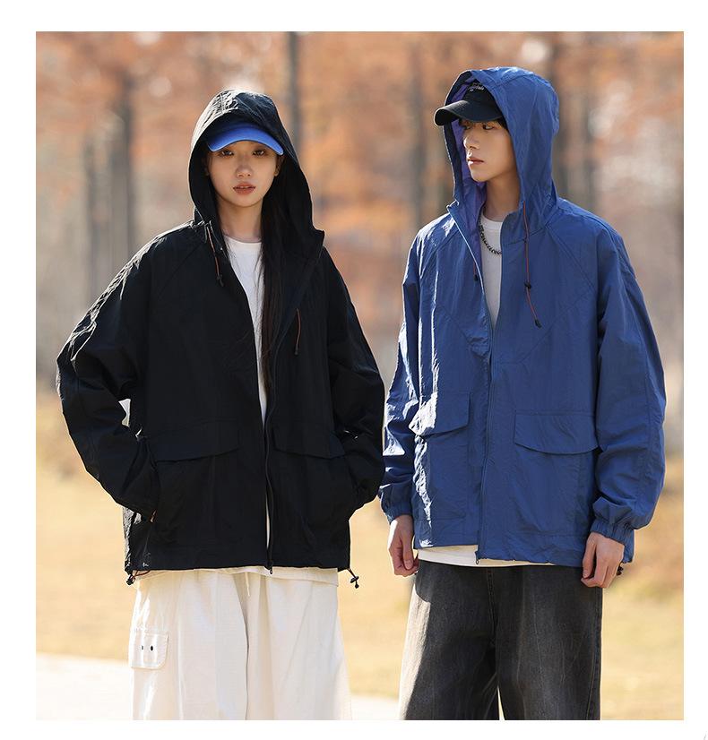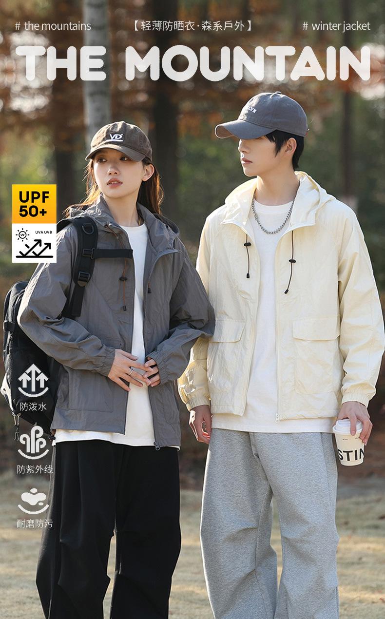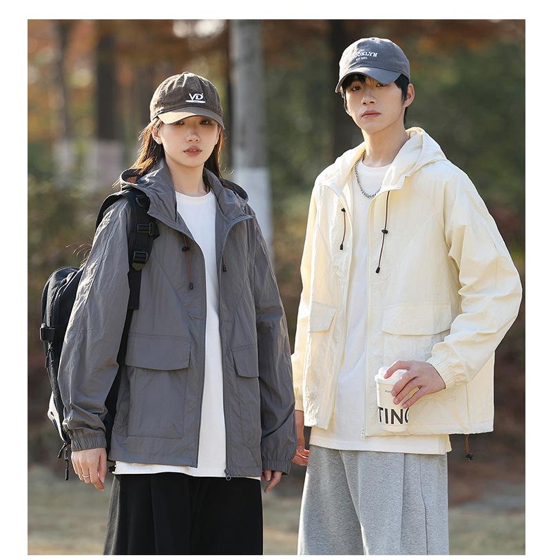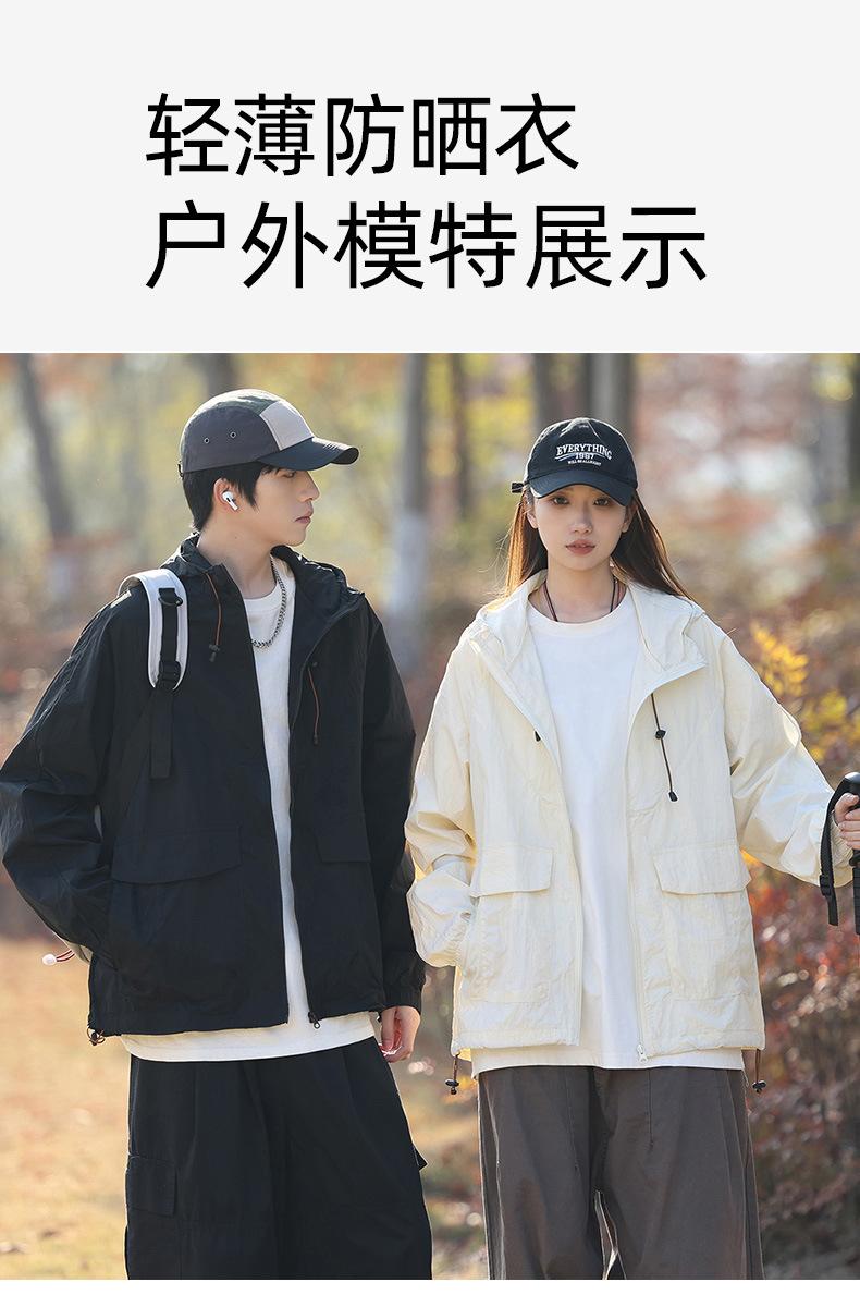 Ropa de protección solar de seda de hielo para parejas, chaqueta ligera y transpirable con capucha y protección UV para exteriores, de marca de moda de verano