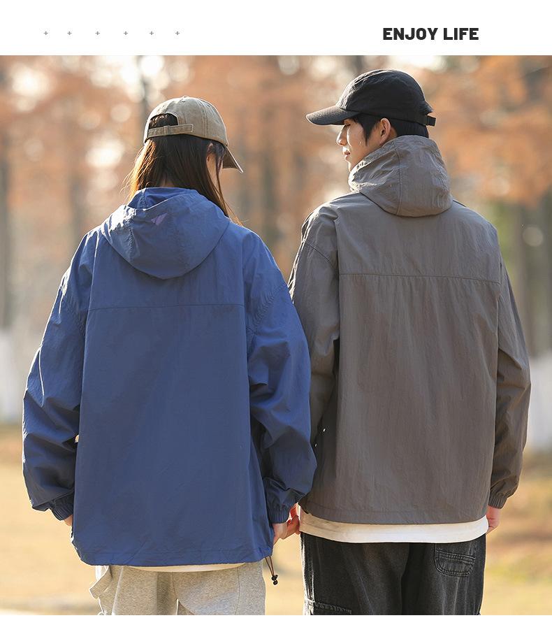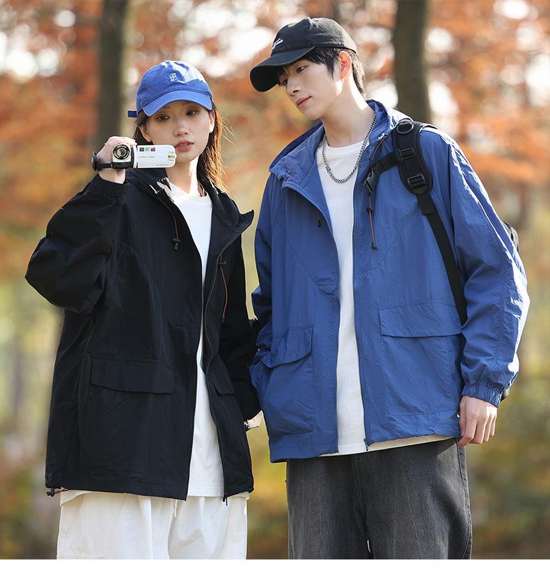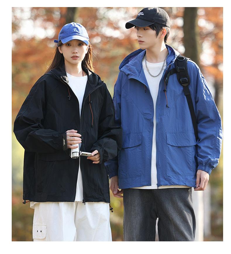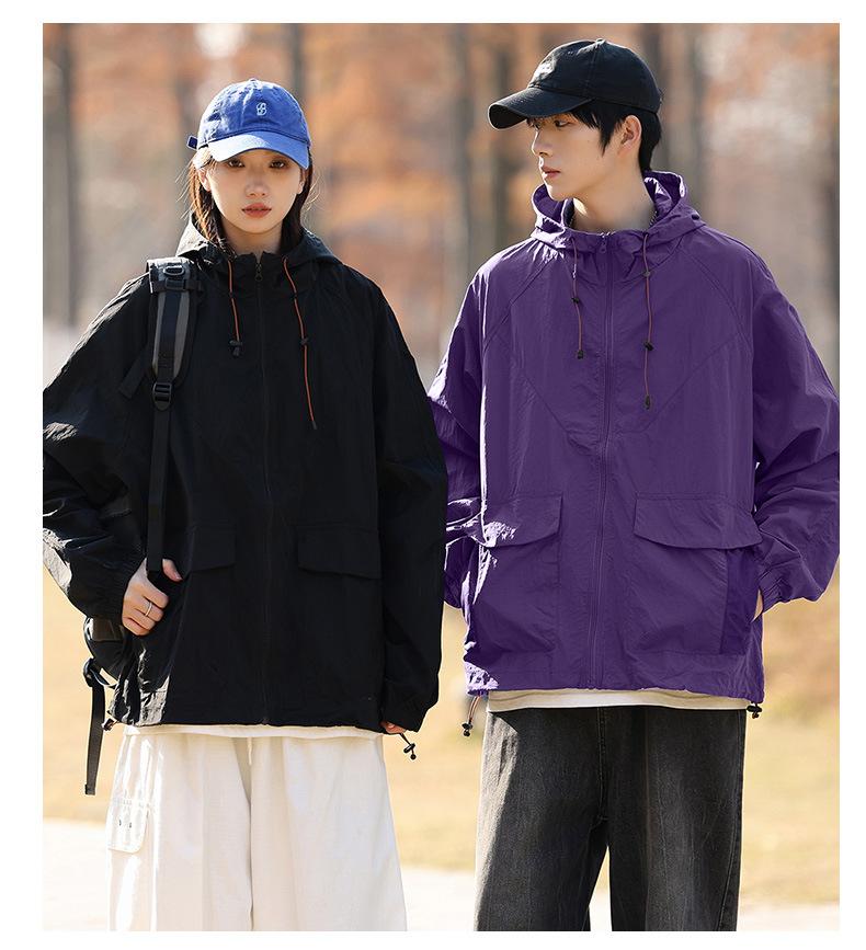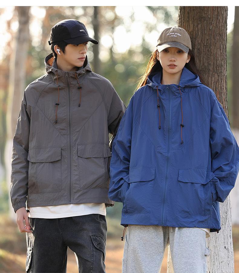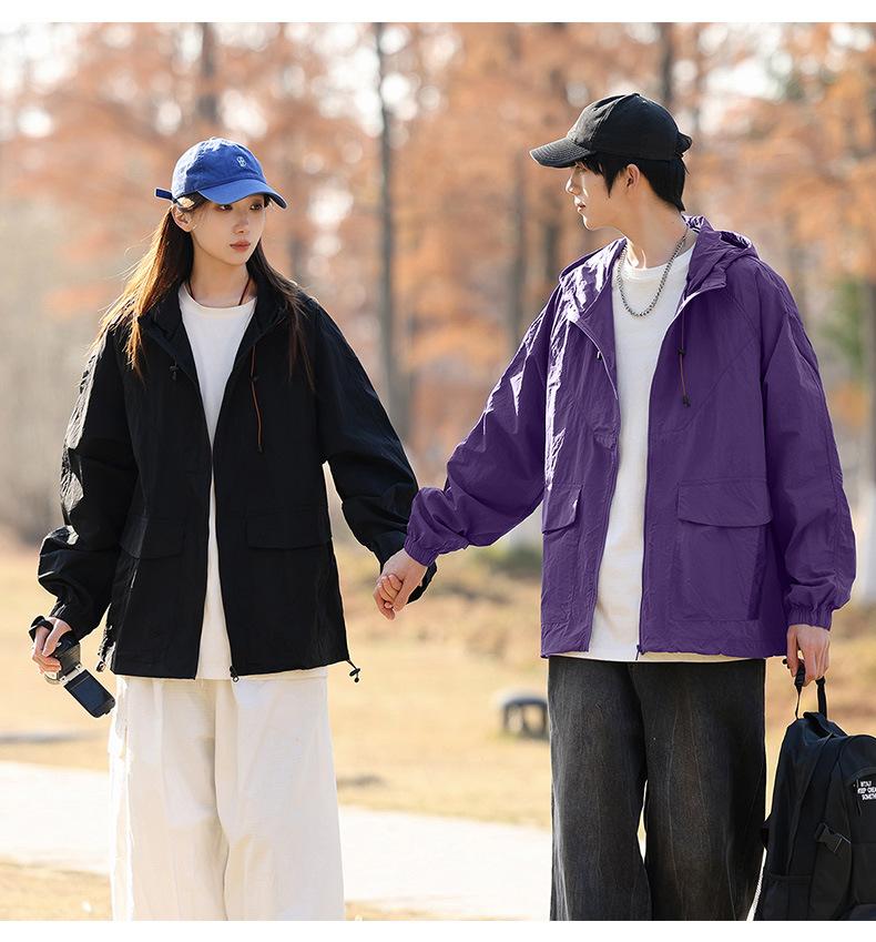 Ropa de protección solar de seda de hielo para parejas, chaqueta ligera y transpirable con capucha y protección UV para exteriores, de marca de moda de verano