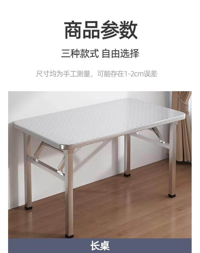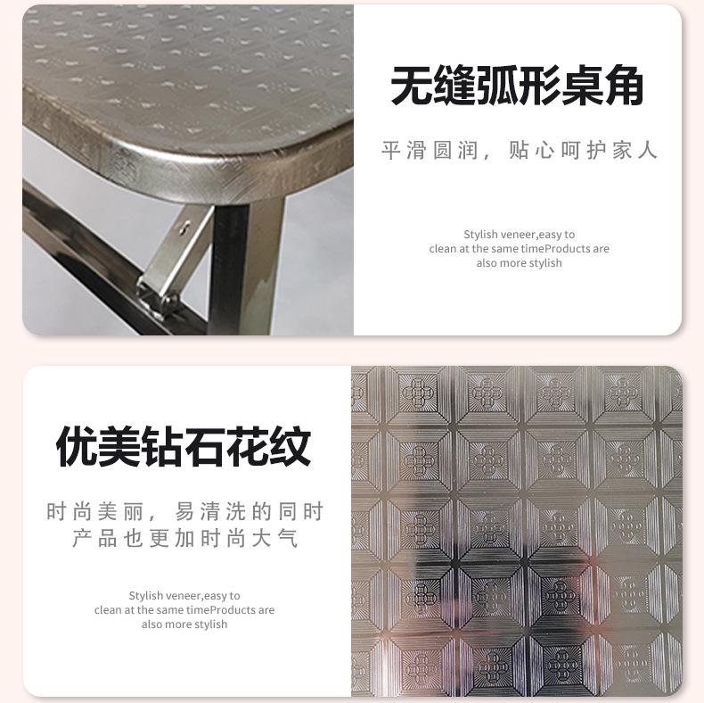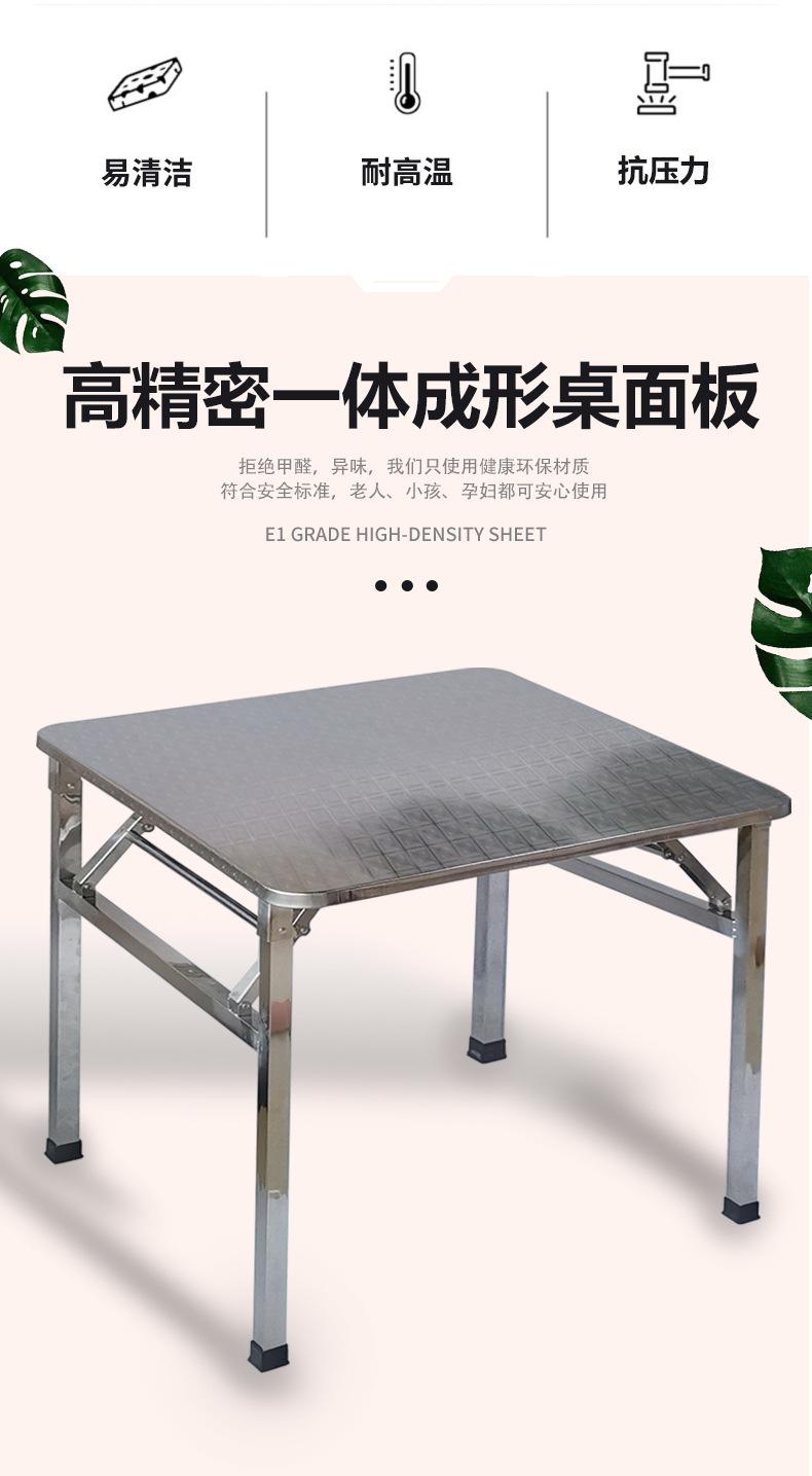 Mesa plegable sencilla de acero inoxidable, mesa de comedor para el hogar, mesa cuadrada para acampar al aire libre, mesa cuadrada larga para puestos de barbacoa y mercado nocturno.