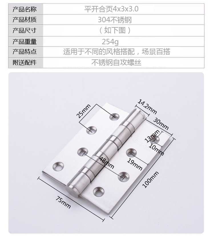 Bisagra Plana al por Mayor Acero Inoxidable 304 Bisagra de Rodamiento Silencioso Plegable de Hojas Sueltas Dormitorio Puerta de Madera Ranurado 4 pulgadas