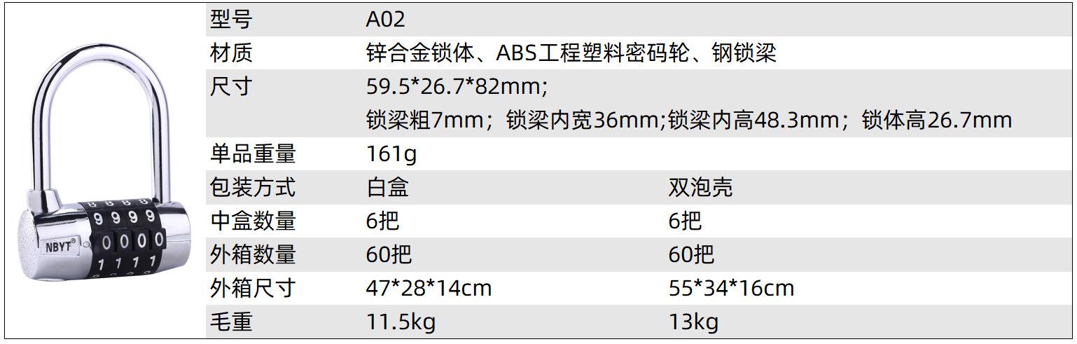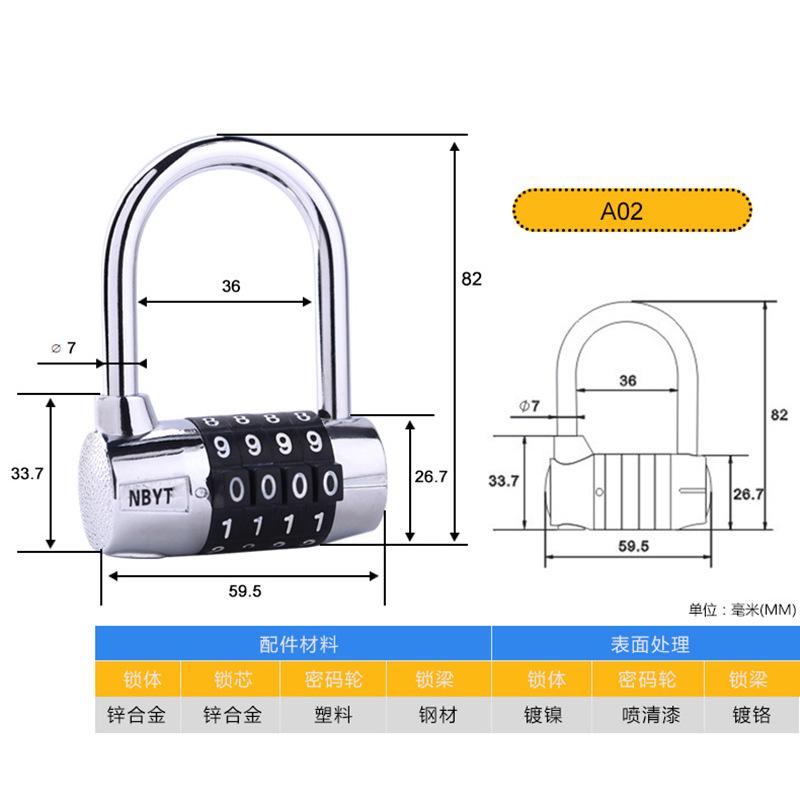 [Fábrica de origen] Candado con contraseña de aleación de zinc NBYT para dormitorio, gimnasio, armario, A02