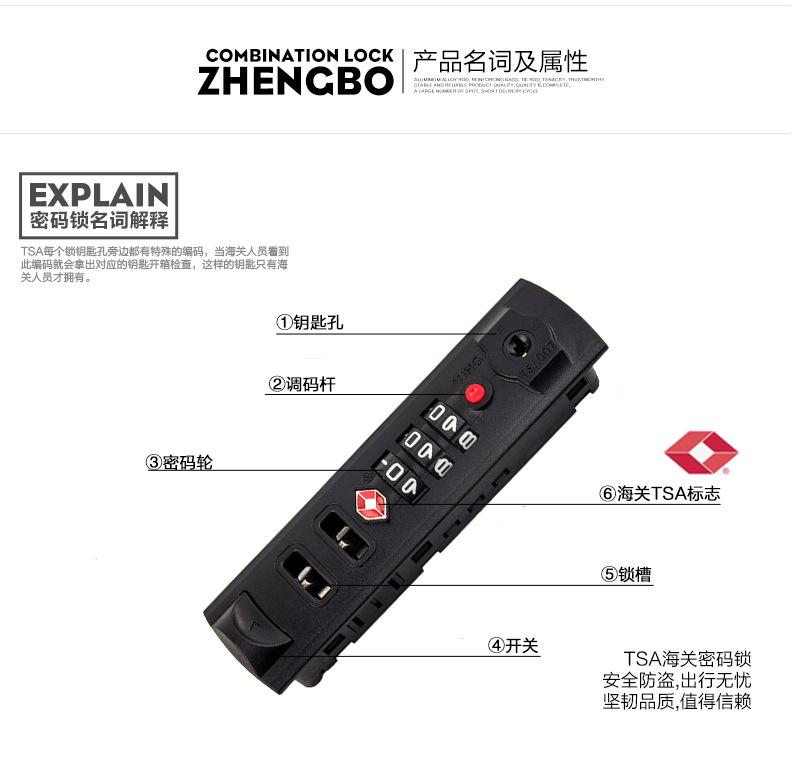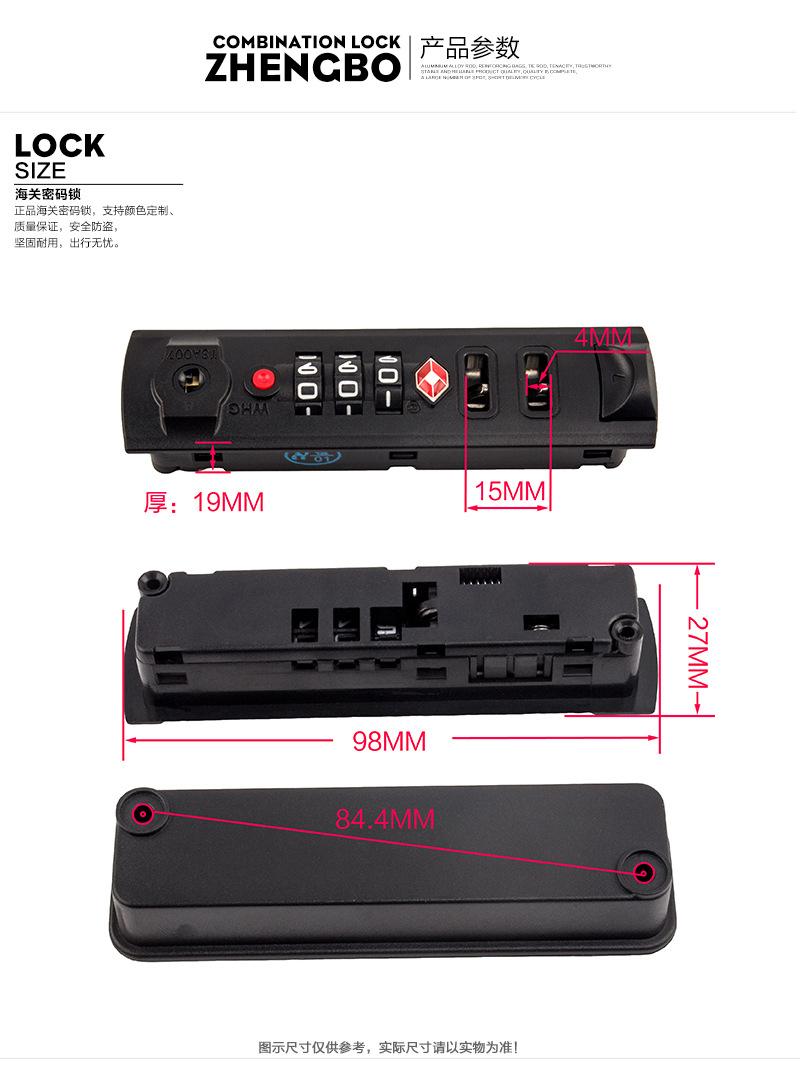 Fábrica de cerraduras Zhengbo, venta al por mayor, cerradura de aduanas TSA, cerradura fija para equipaje, cerradura de combinación aduanera, cerradura con cremallera, cerradura para accesorios de equipaje