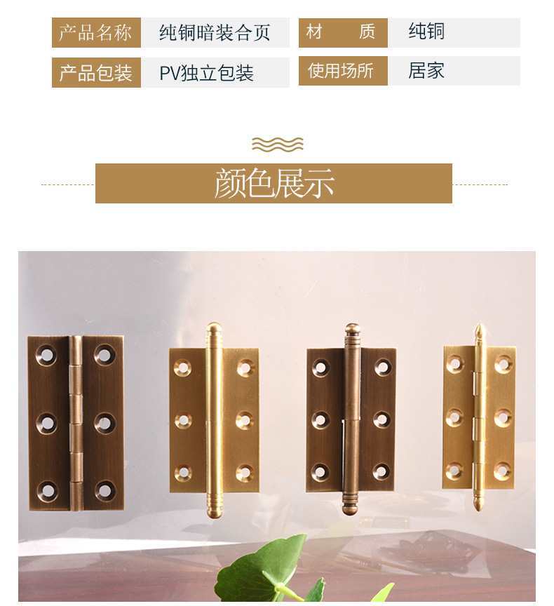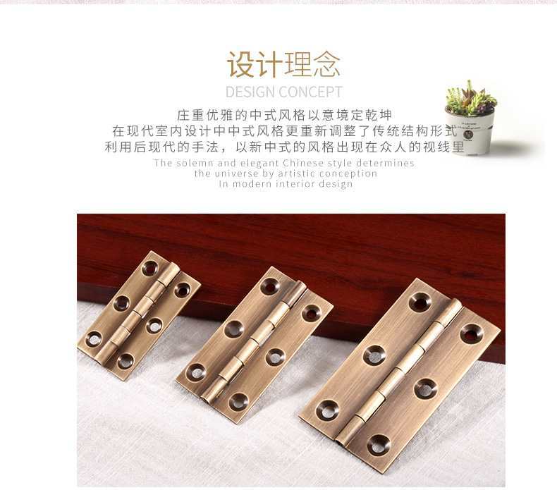 Bisagra de cobre al por mayor, bisagra pequeña oculta de latón para muebles antiguos chinos, mampara, armario, puerta, joyero, bisagra de cobre