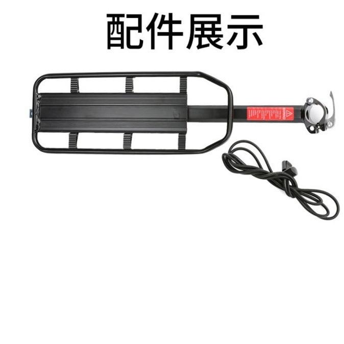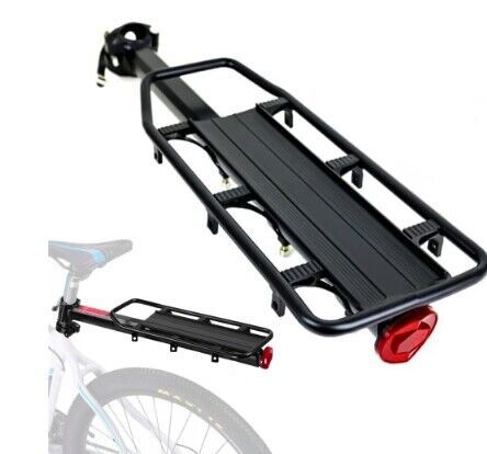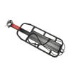 Ventajas: De liberación rápida, ligero, con luz trasera reflectante, con alas laterales (barandillas), con cordón elástico, posición delantera y trasera ajustable del estante, altura del pie de apoyo ajustable
