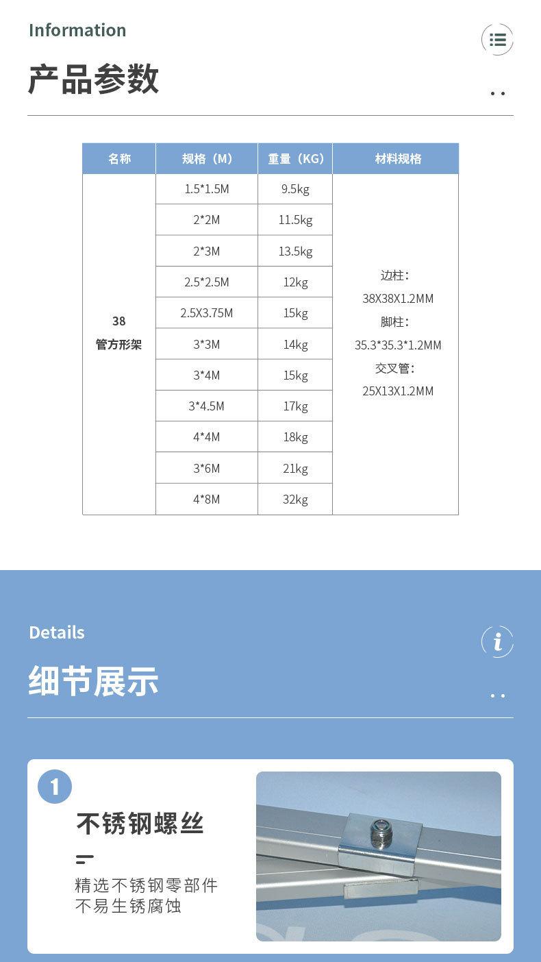 2m *2m bracket, 2m * 3m bracket, 3m *3m bracket, 3m * 4.5m bracket, 3m * 6m bracket