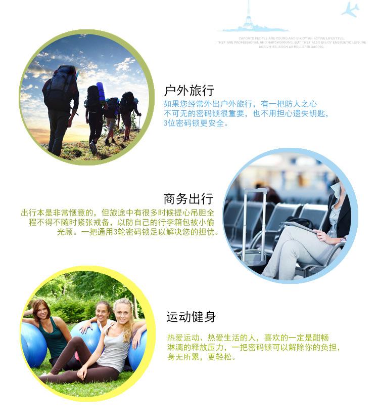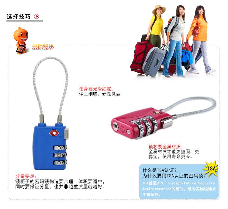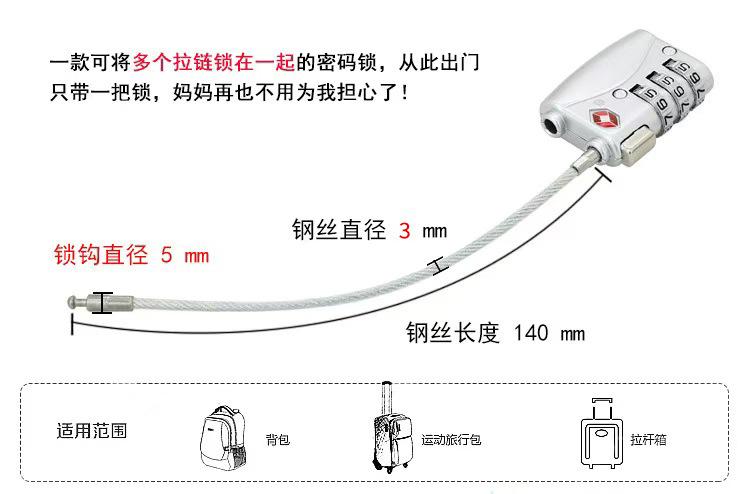 Usos: Generalmente para cerrar la cremallera del equipaje. Al viajar, puede llevar un candado para cerrar varias cremalleras juntas, facilitando el viaje.