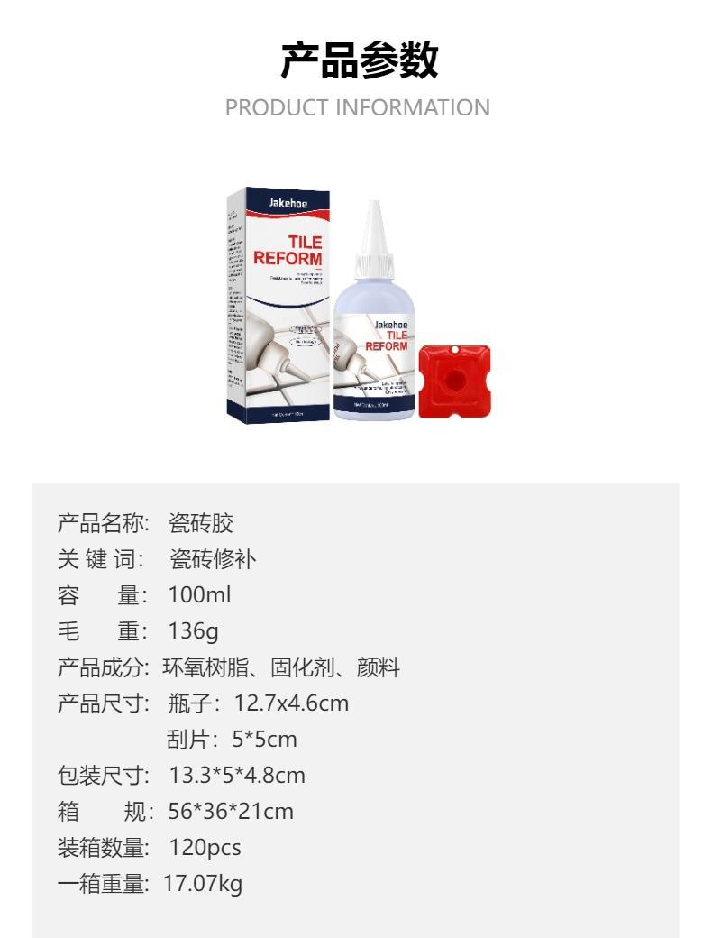 Adhesivo para Azulejos Jakehoe Azulejo de Baño Azulejo de Piso Reparación Relleno Impermeable para Huecos de Fregadero de Cocina y Ventana