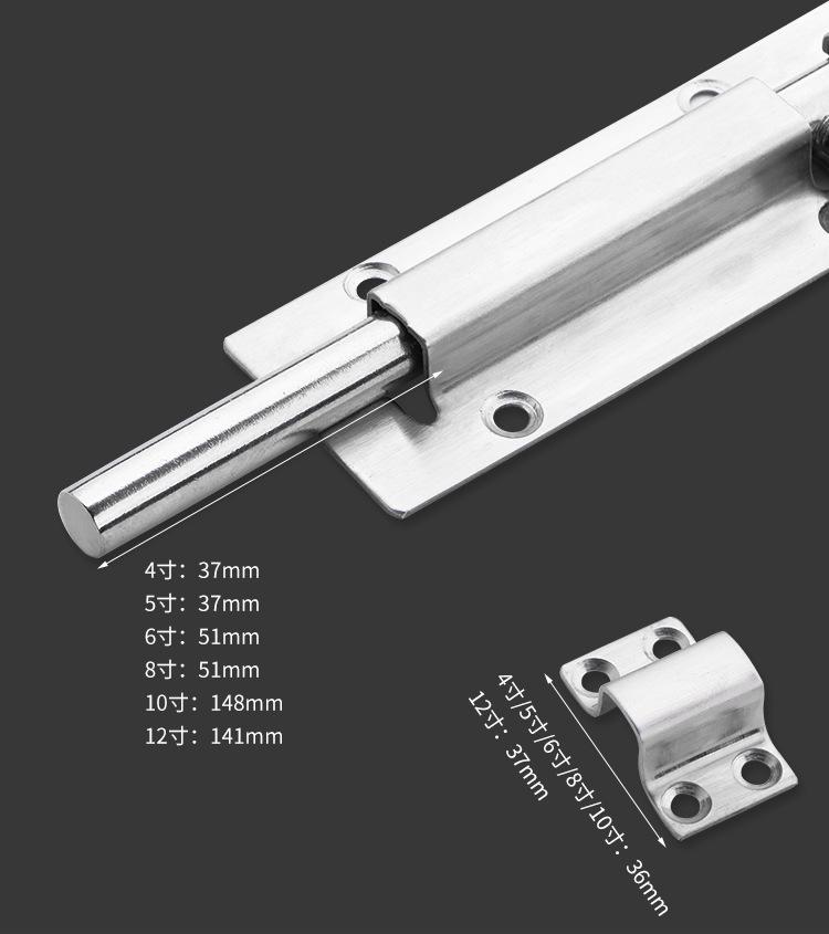 Perno de acero inoxidable de 4 a 12 pulgadas, generoso, para puertas y ventanas, puerta de madera, antirrobo, hebilla de puerta, cerradura de pestillo de puerta abierta, venta al por mayor