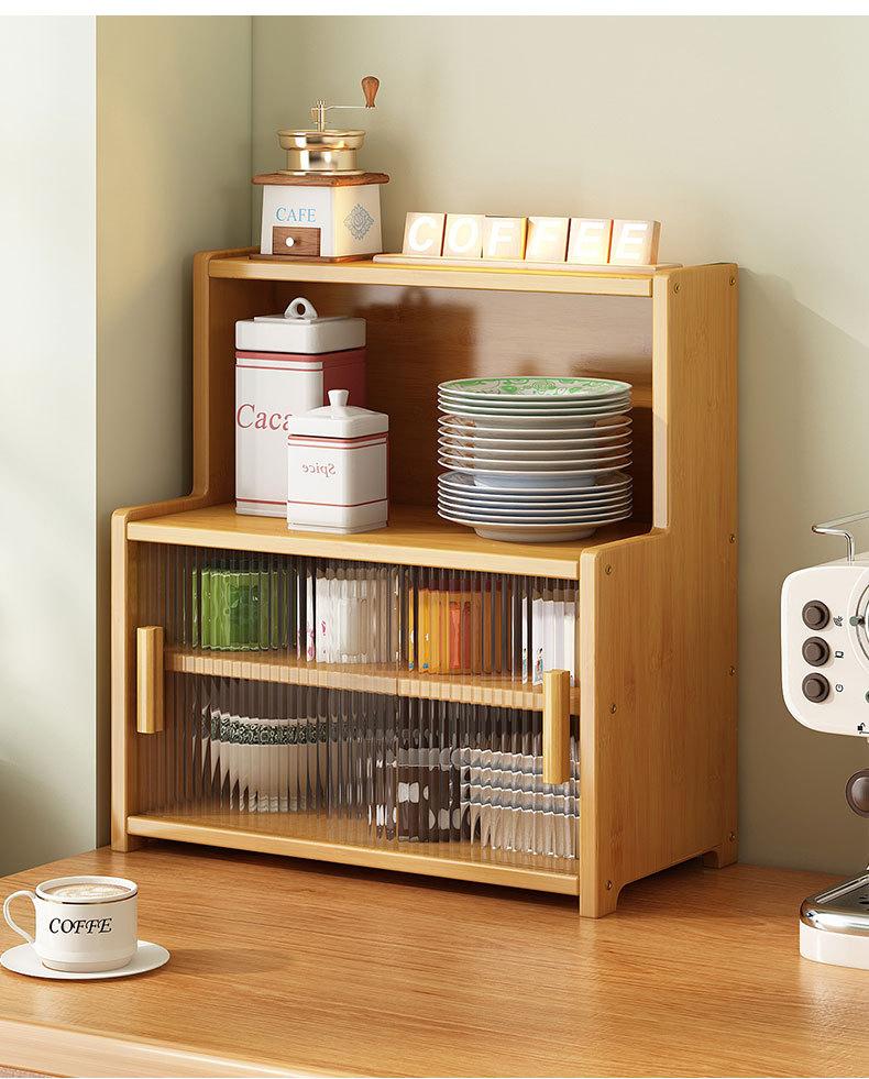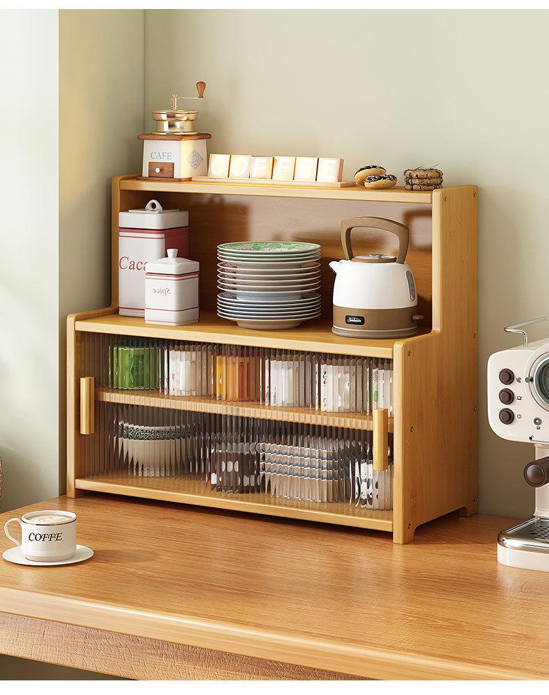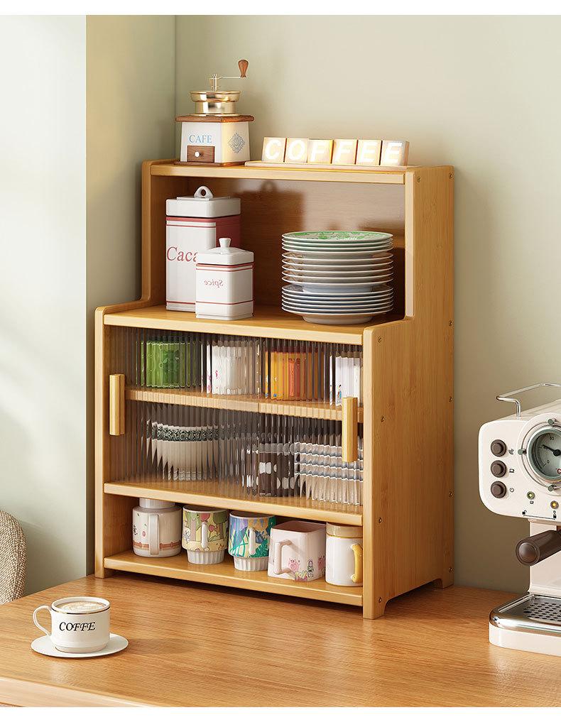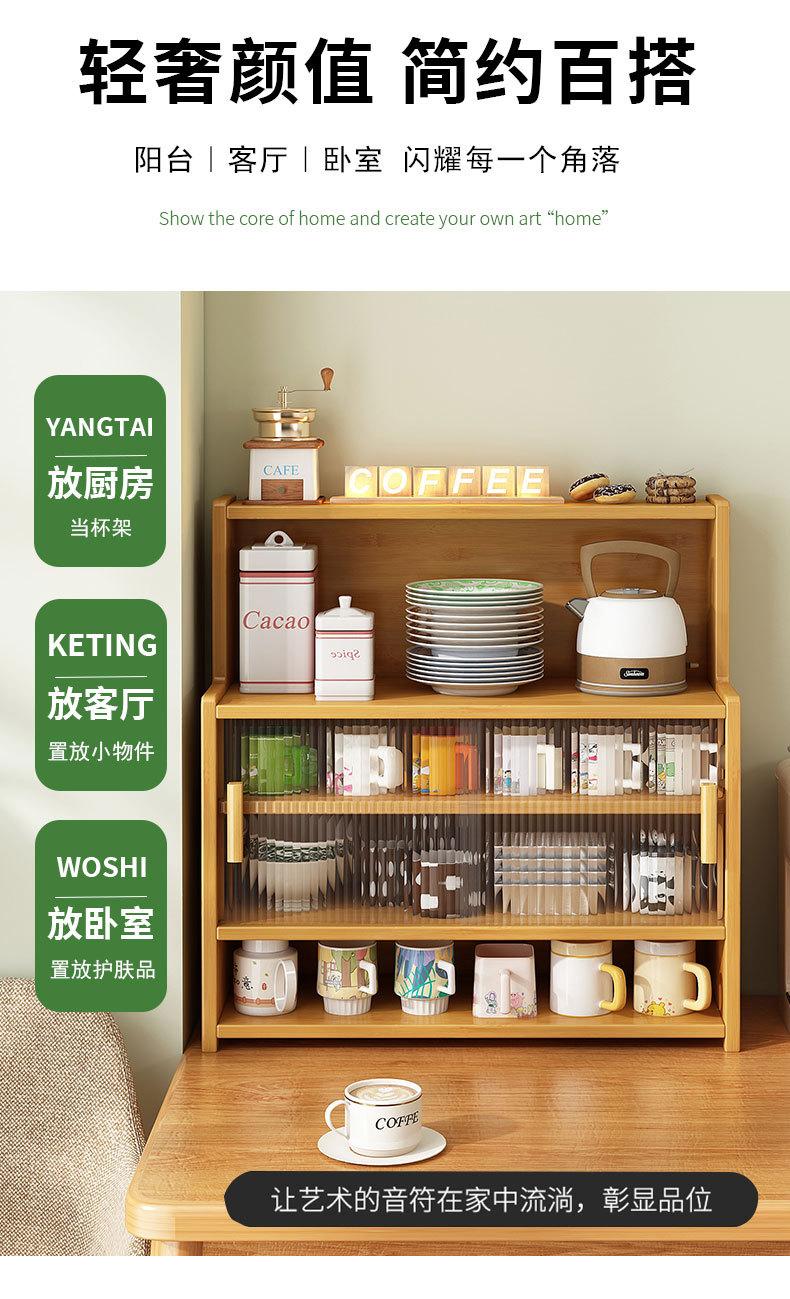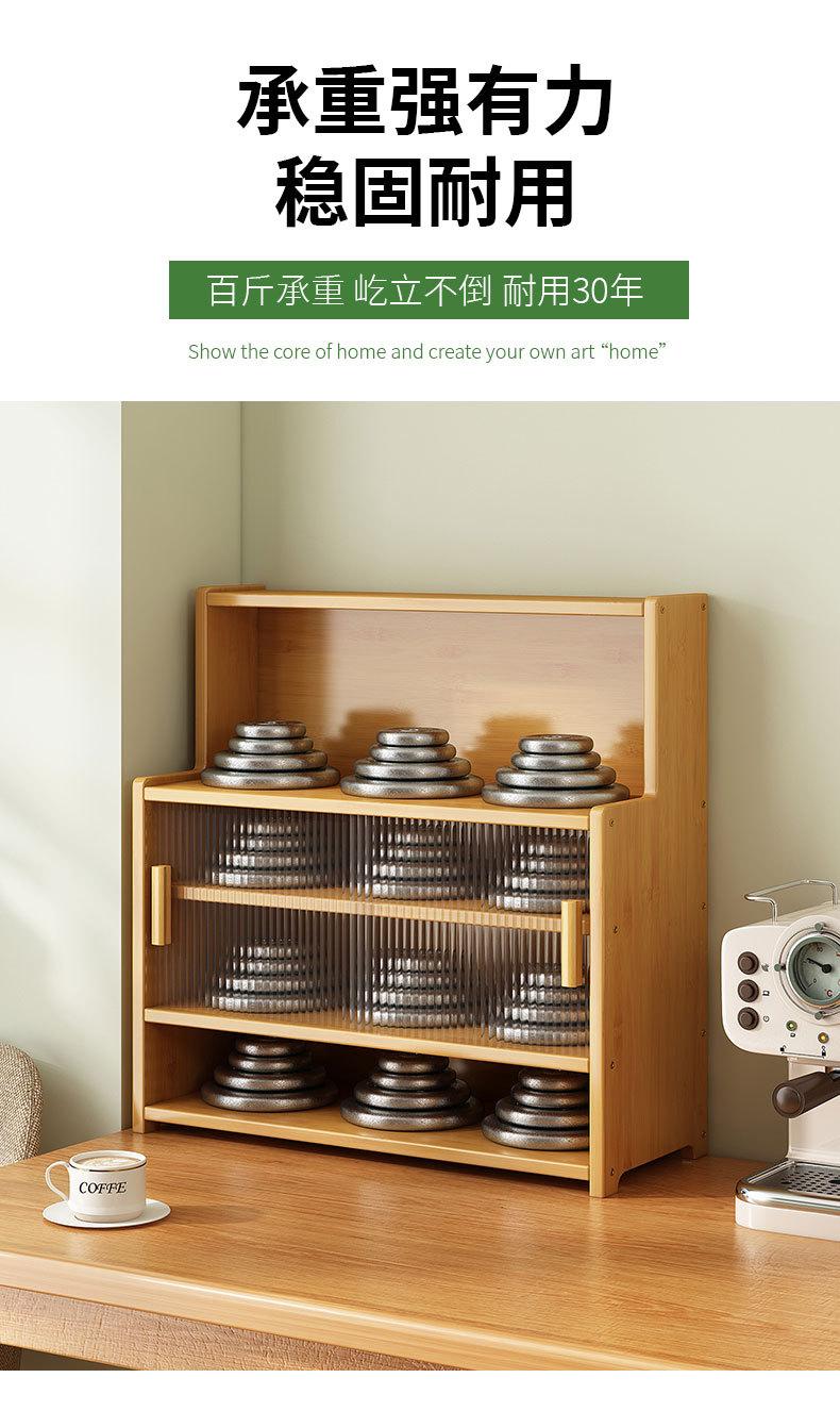 Estante de almacenamiento para tazas de escritorio, multifuncional, de madera no maciza, a prueba de polvo