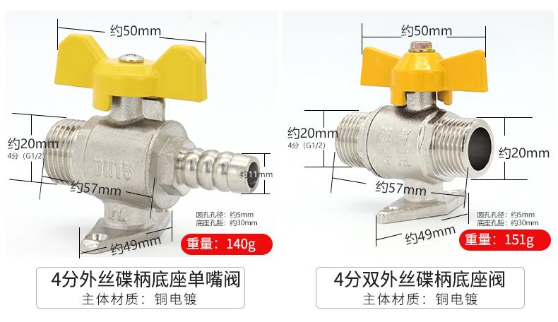 4 points inner wire disc handle single nozzle valve (copper natural color), 4 points outer silk disc handle si...