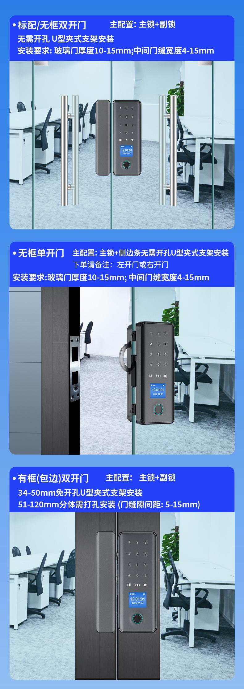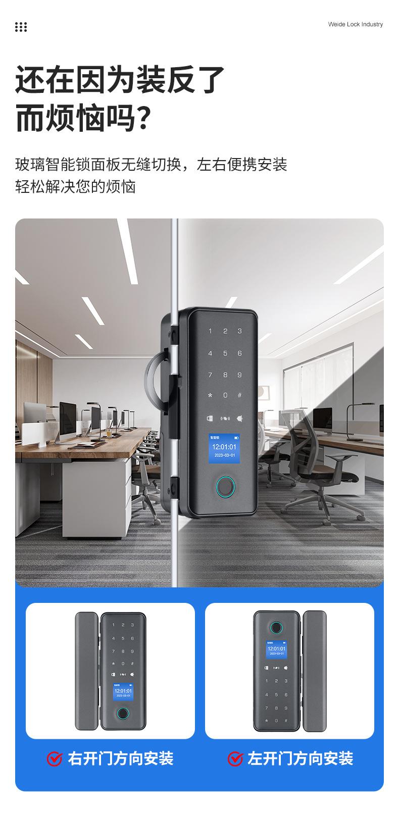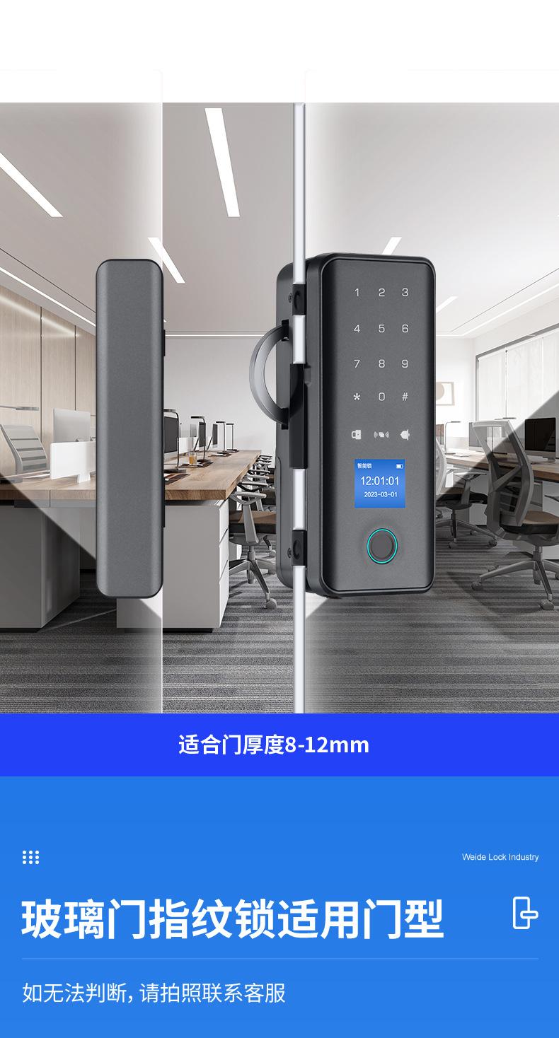 Cerradura inteligente con huella dactilar para puerta de vidrio, sin perforaciones, para oficina, puerta simple o doble, para sala de reuniones, tarjeta, cerradura electrónica inteligente con grafiti