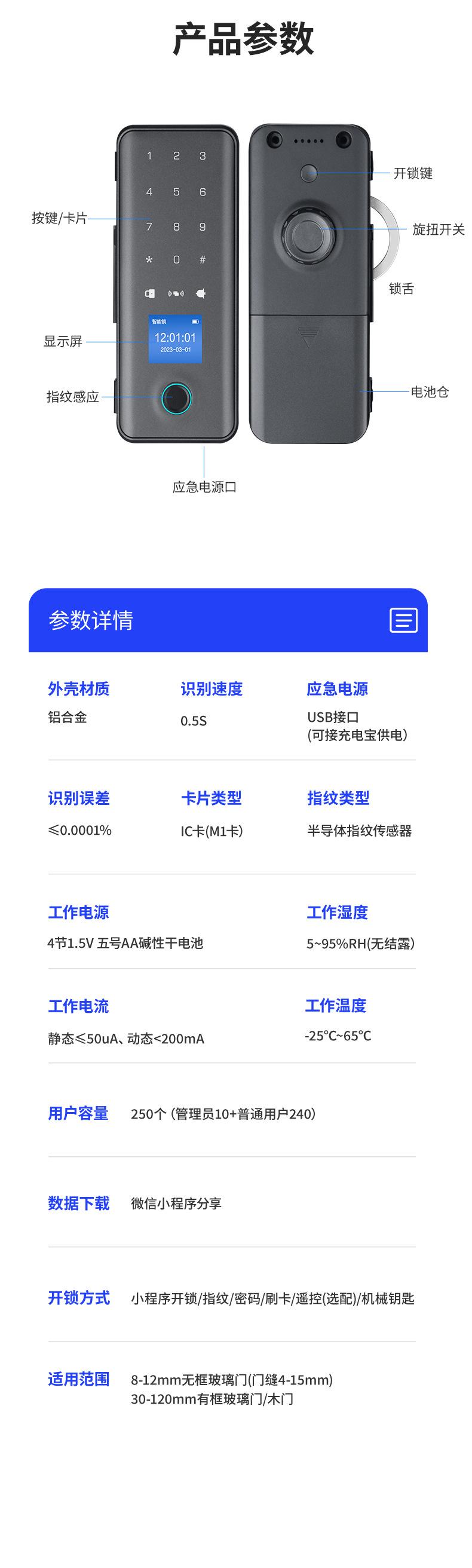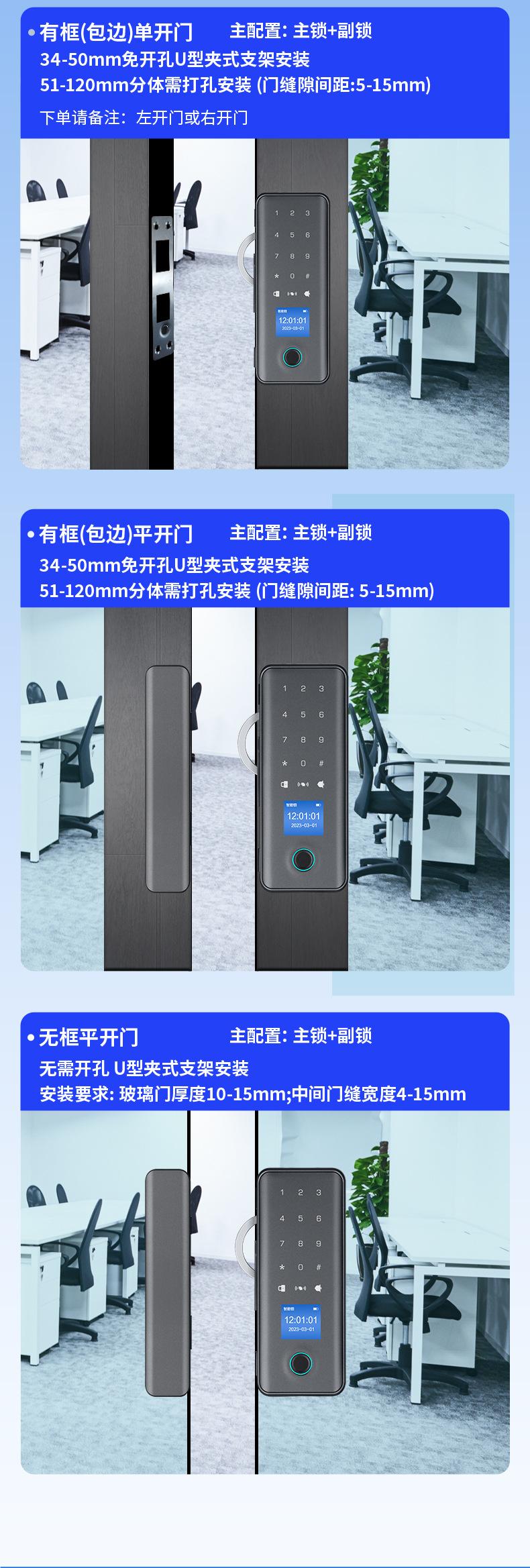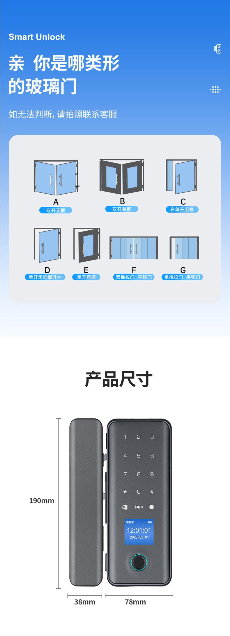 Cerradura inteligente con huella dactilar para puerta de vidrio, sin perforaciones, para oficina, puerta simple o doble, para sala de reuniones, tarjeta, cerradura electrónica inteligente con grafiti