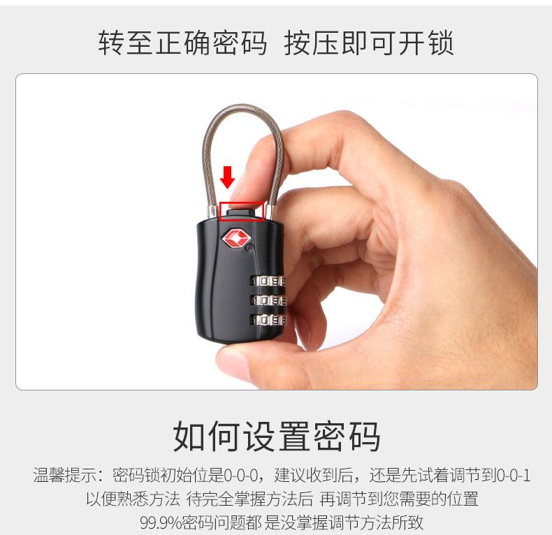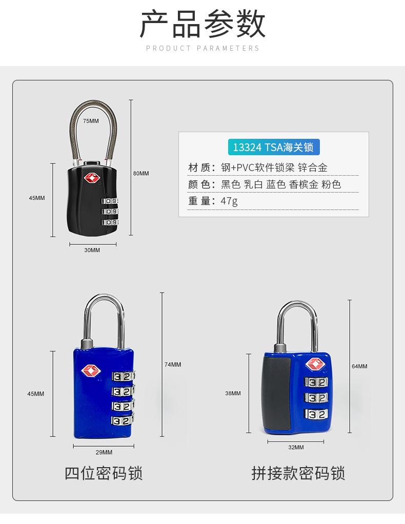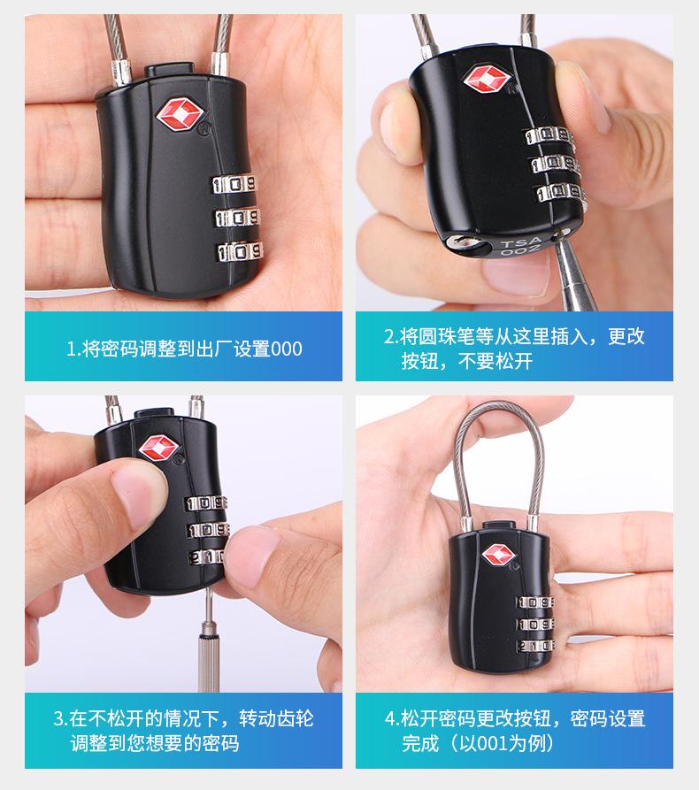 Candado con contraseña TSA para mochila, equipaje, mochila, alambre, aleación de aluminio, tienda de fábrica