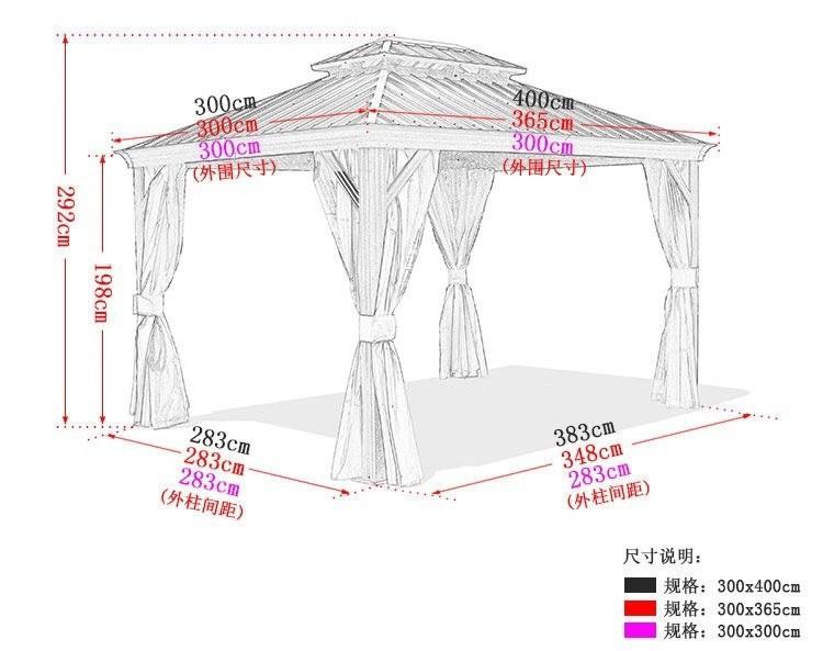3*3 m Gold double top, 3*4 M gold double top, 3*4 M idle Cloud Pavilion, 3*4 m Santorini Luxury Curved Shed, 3...