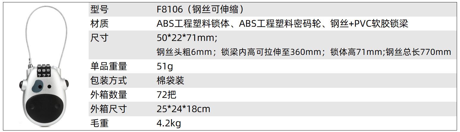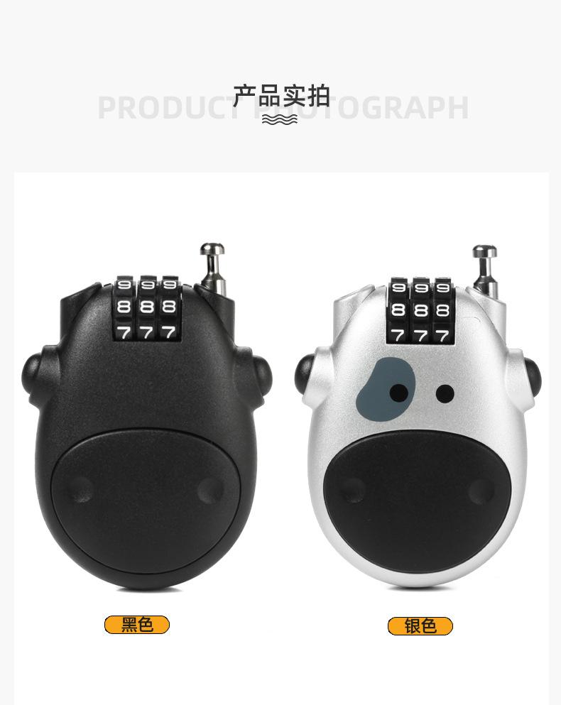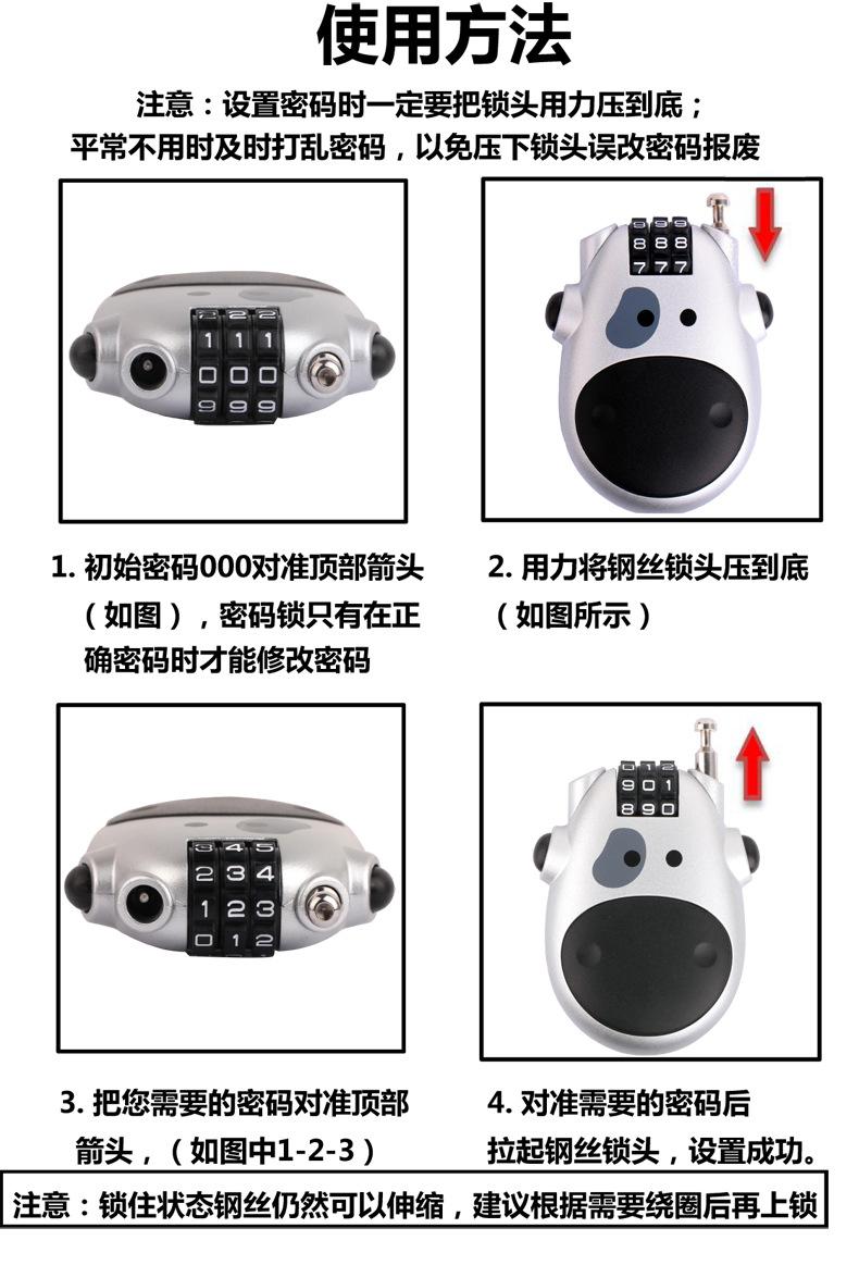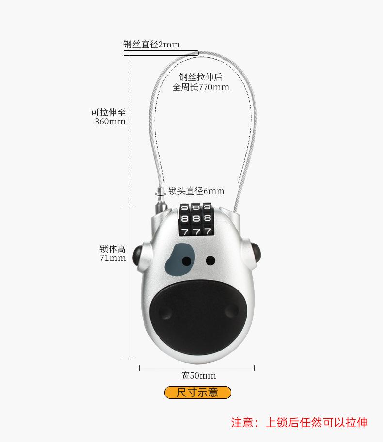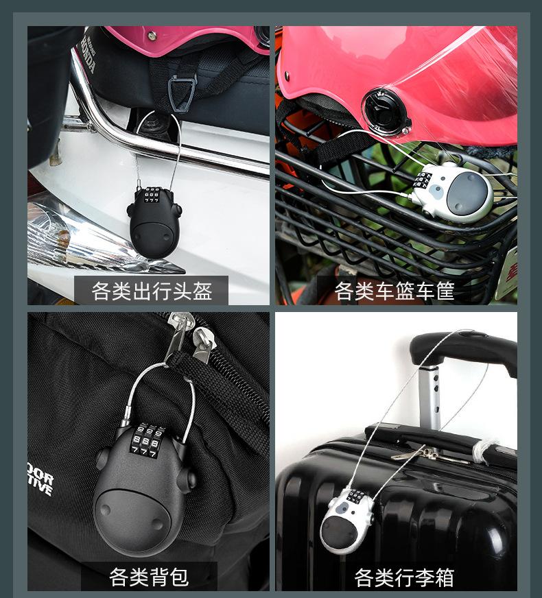 Yifeng Vaca de Dibujos Animados Cable de Acero Retráctil con Cierre de Código Maleta Coche Ropa Trineo Casco de Motocicleta
