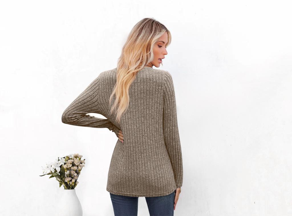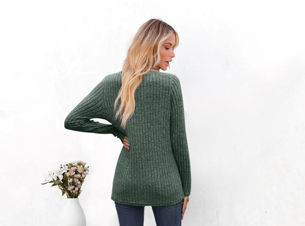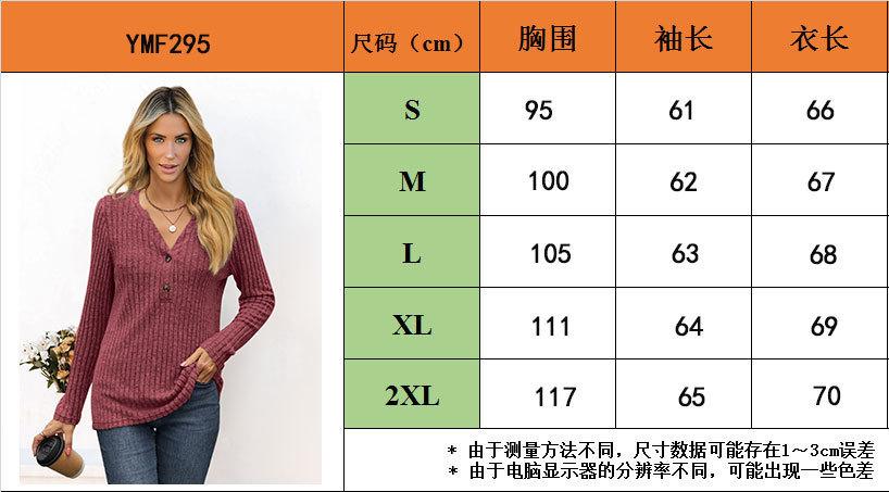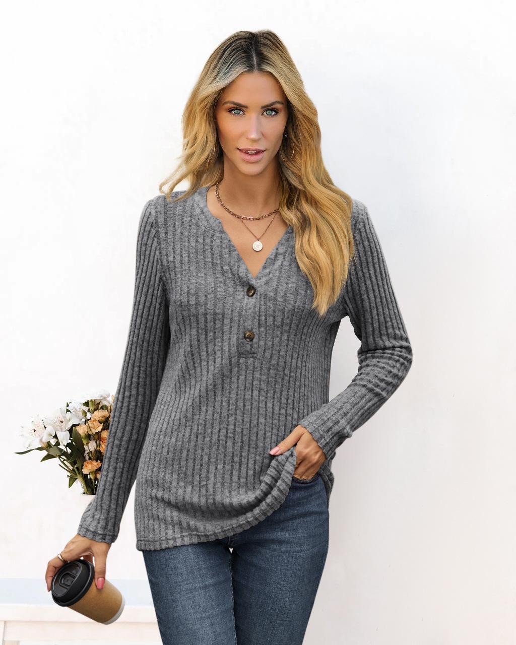 Amazon 2023, comercio exterior transfronterizo europeo y americano, otoño e invierno, nueva camiseta de manga larga holgada con cuello en V y botones de color sólido para mujer