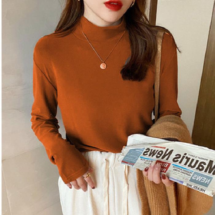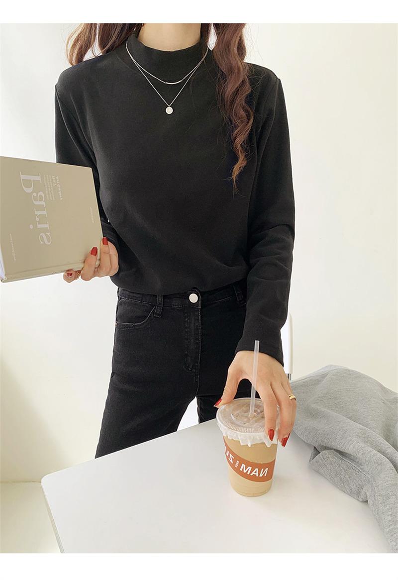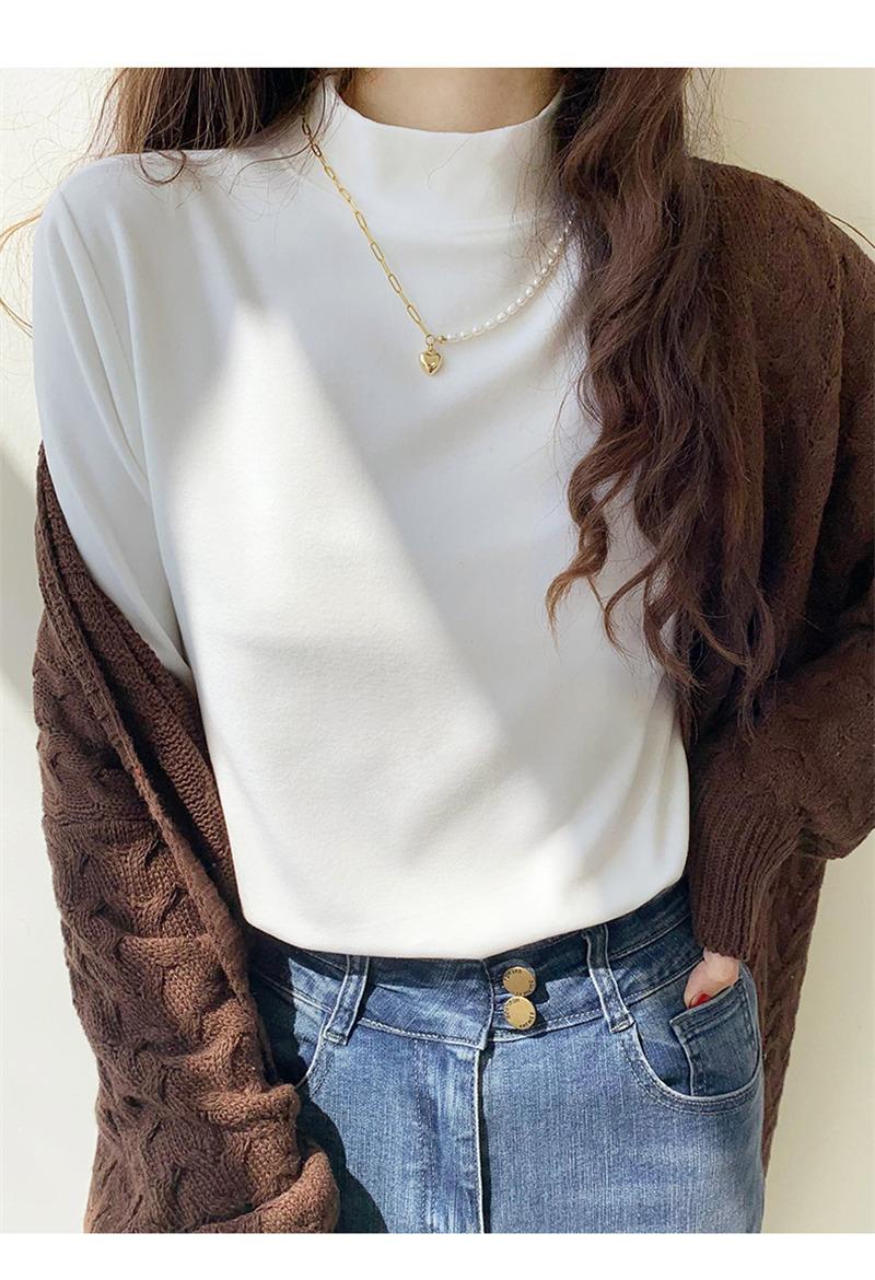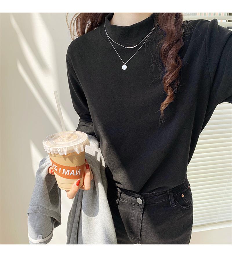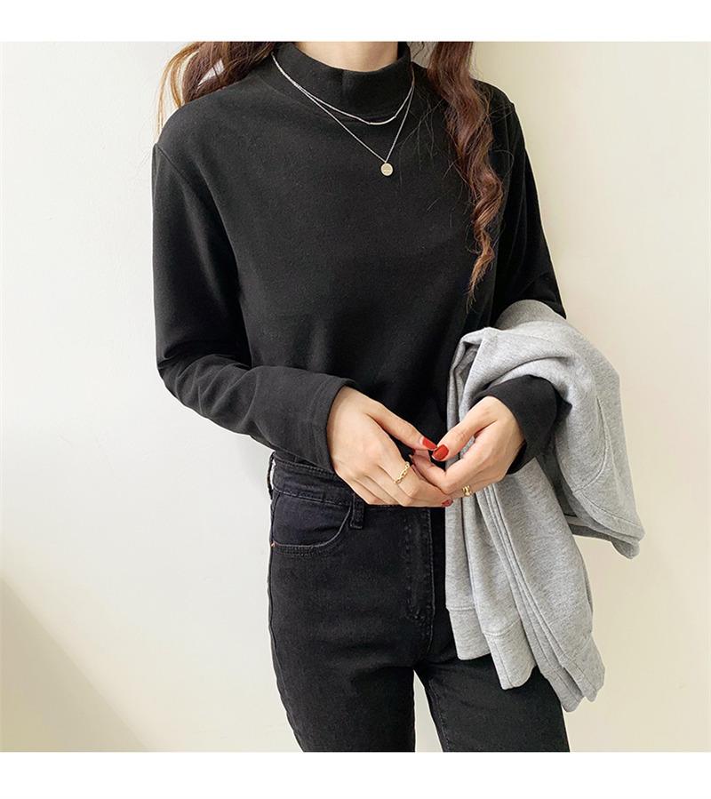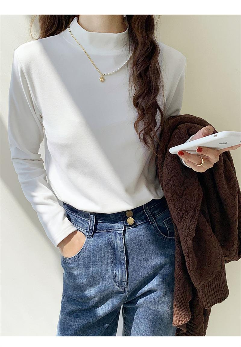Camiseta Básica de Terciopelo para Mujer Otoño e Invierno Estilo Coreano Ajustada Top de Estudiante Cálida Camiseta de Manga Larga con Cuello Medio Alto para Niña