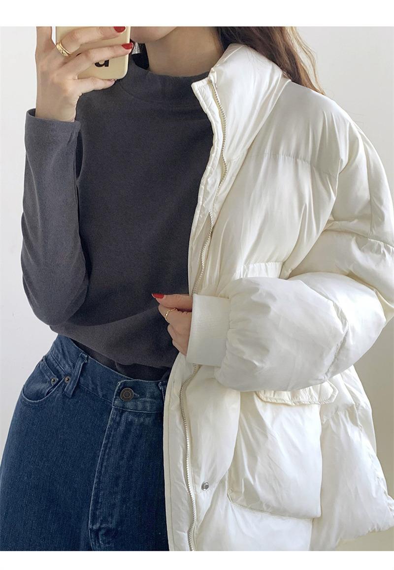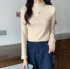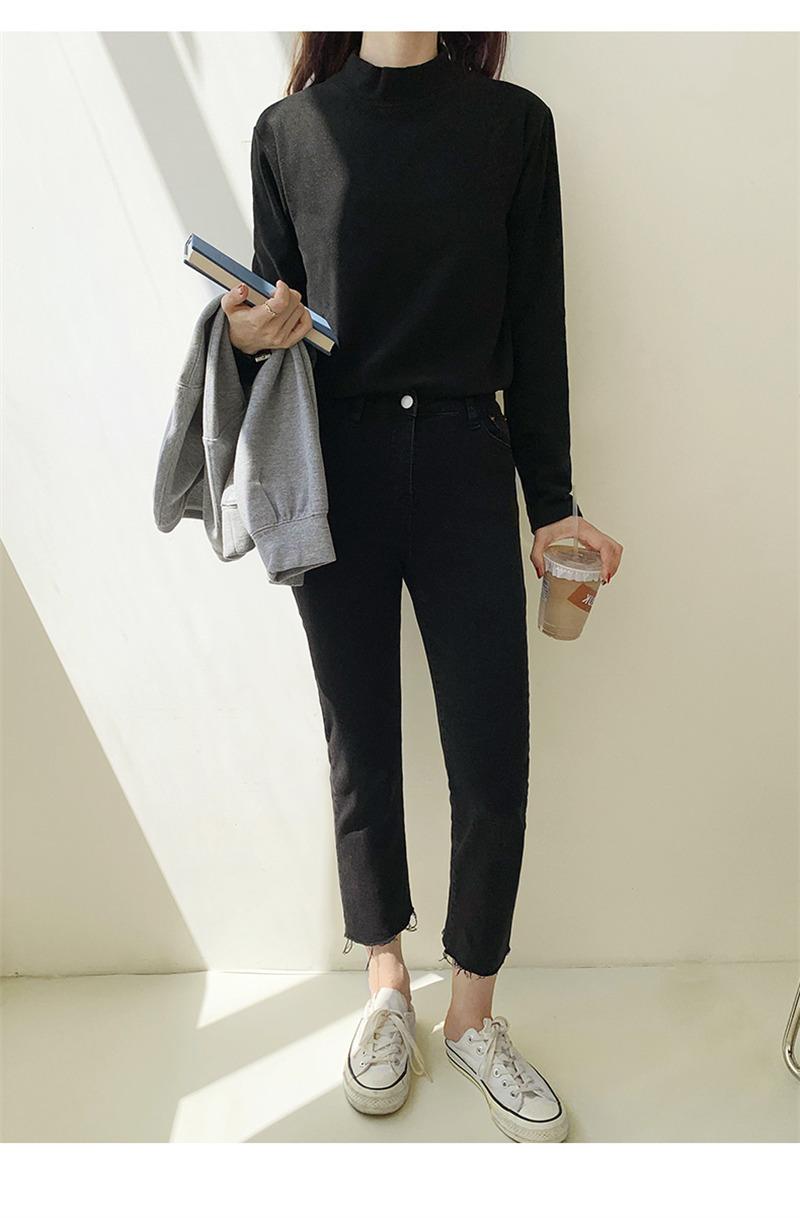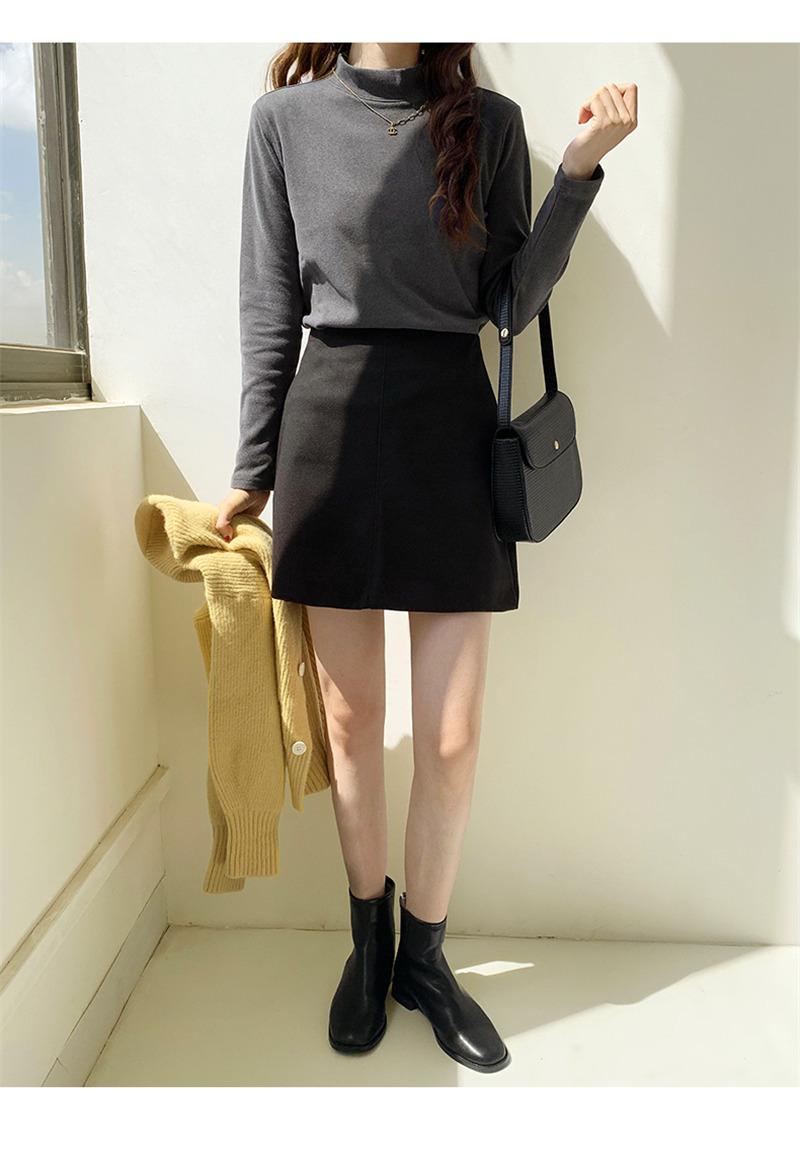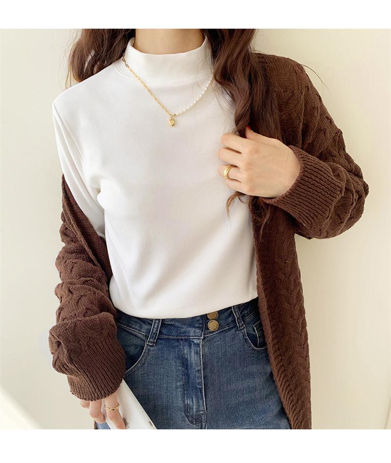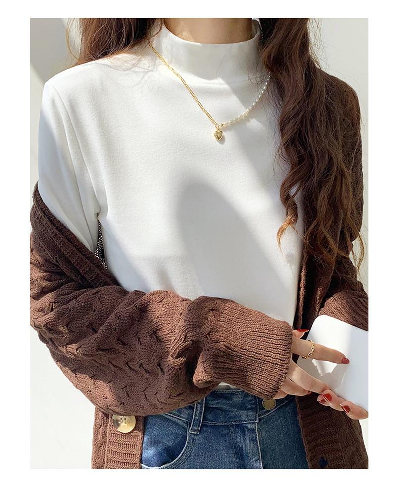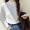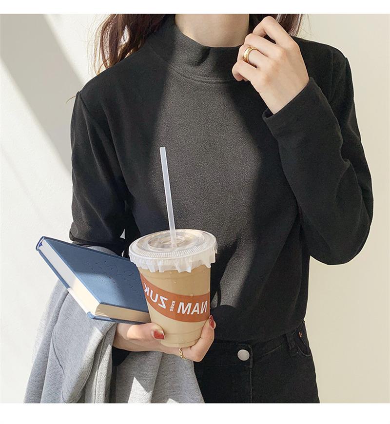 Camiseta Básica de Terciopelo para Mujer Otoño e Invierno Estilo Coreano Ajustada Top de Estudiante Cálida Camiseta de Manga Larga con Cuello Medio Alto para Niña